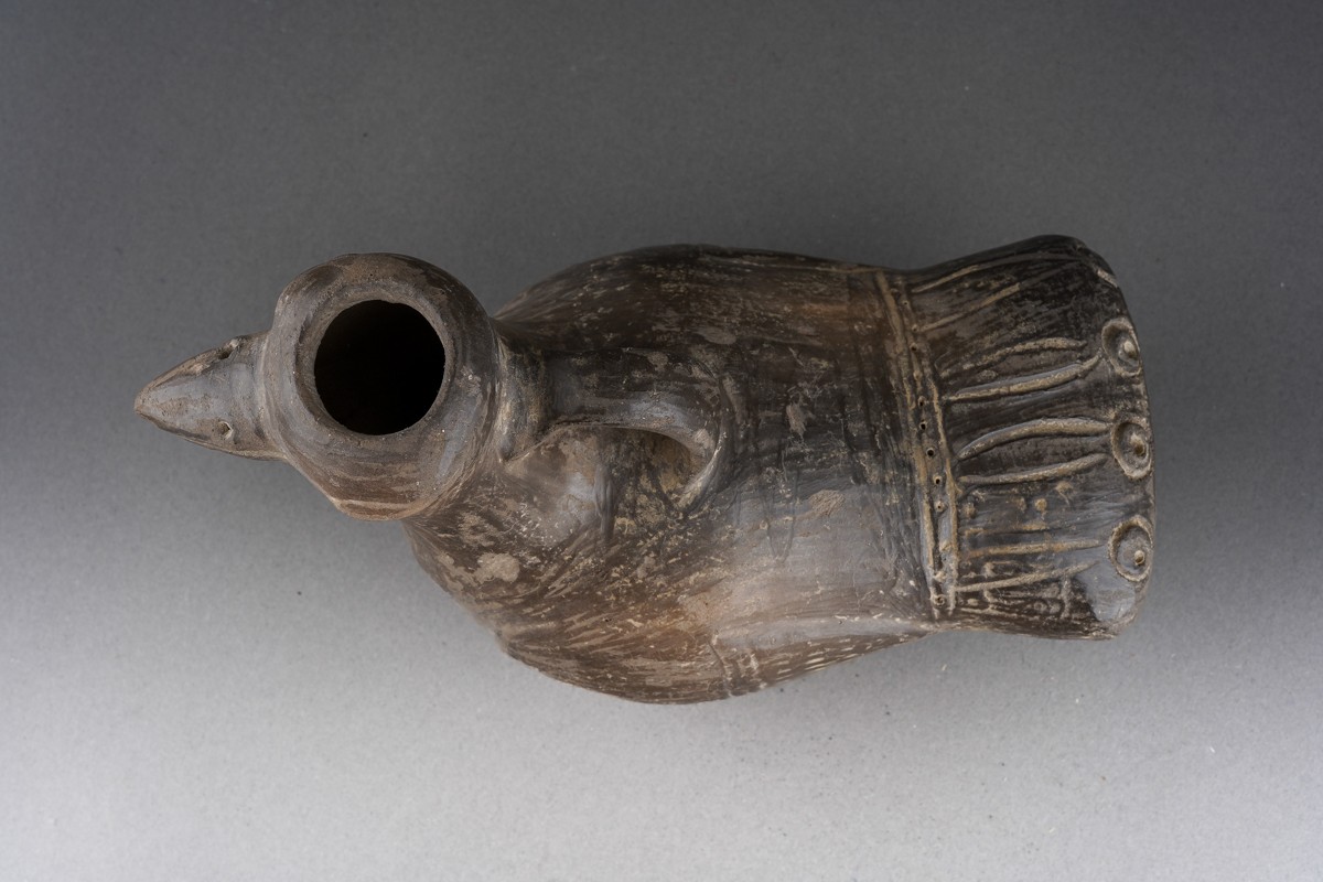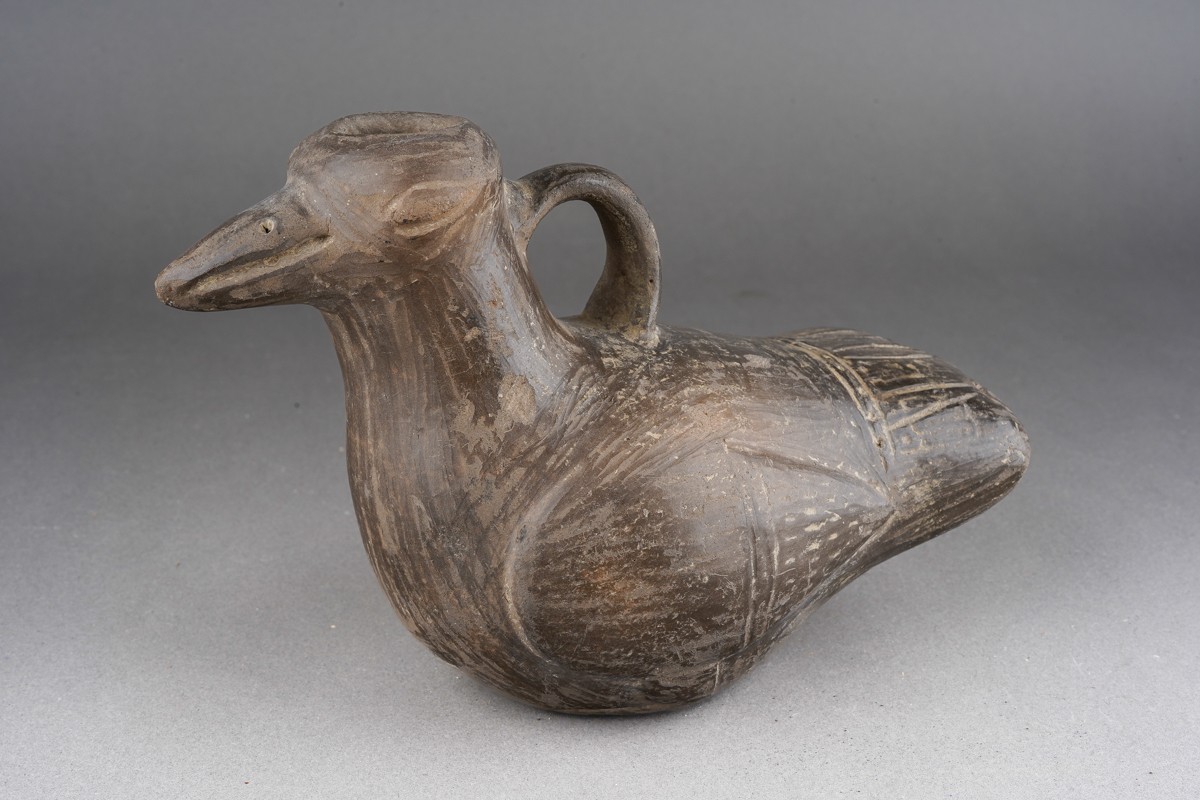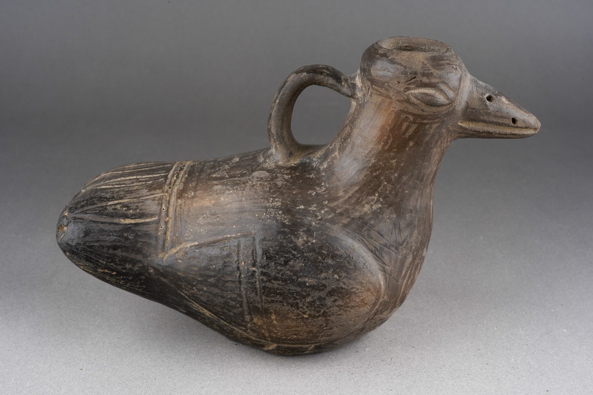 Pre Columbian chimu, Peruvian pottery bird vessel , approx. 11 cm tall and 16 cm long