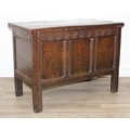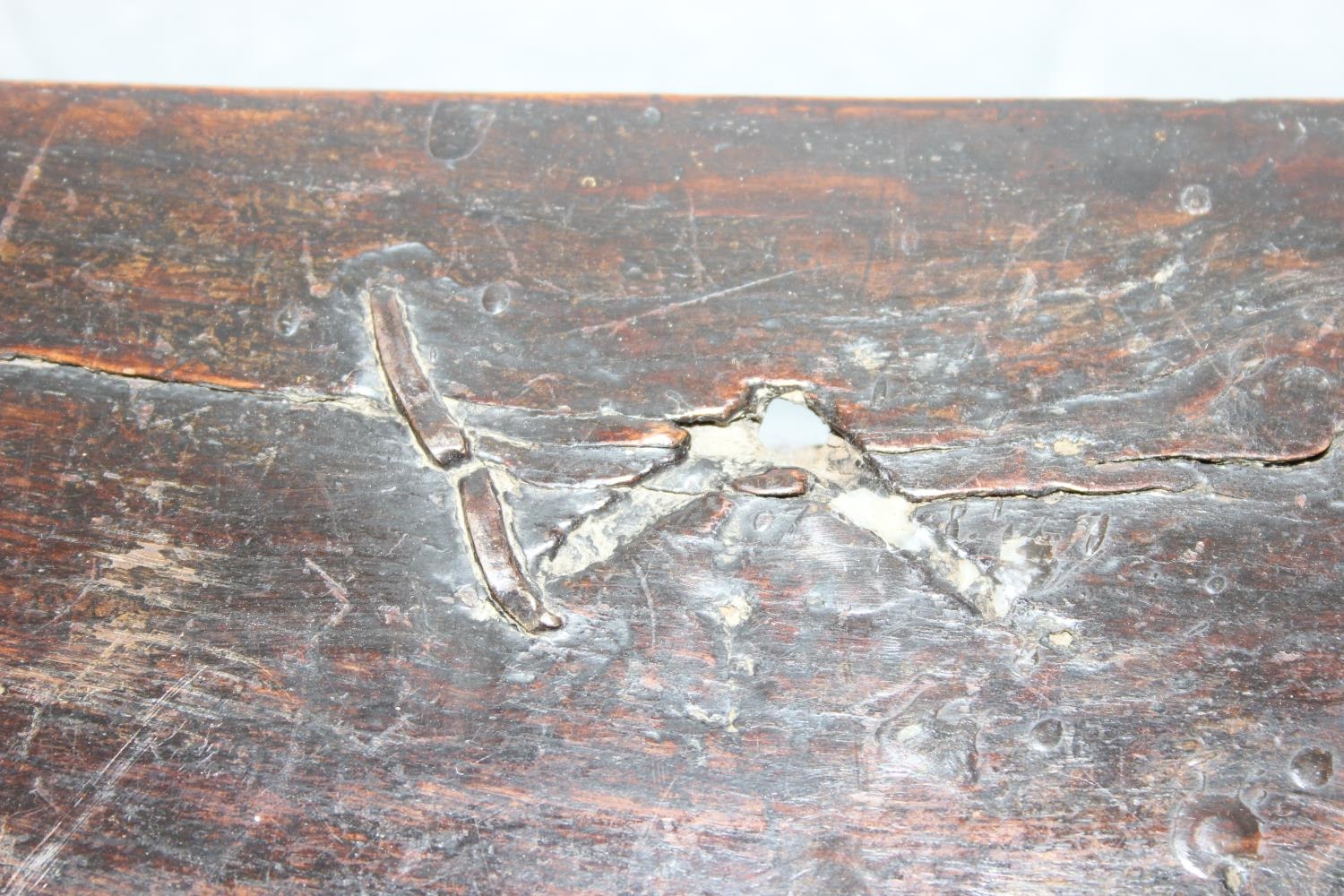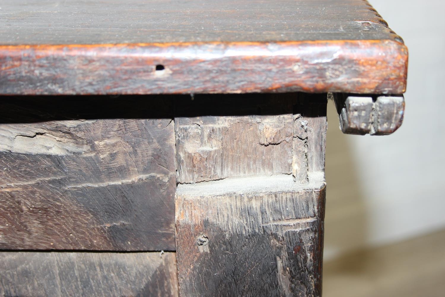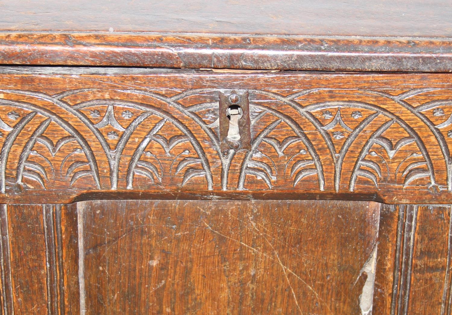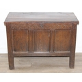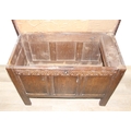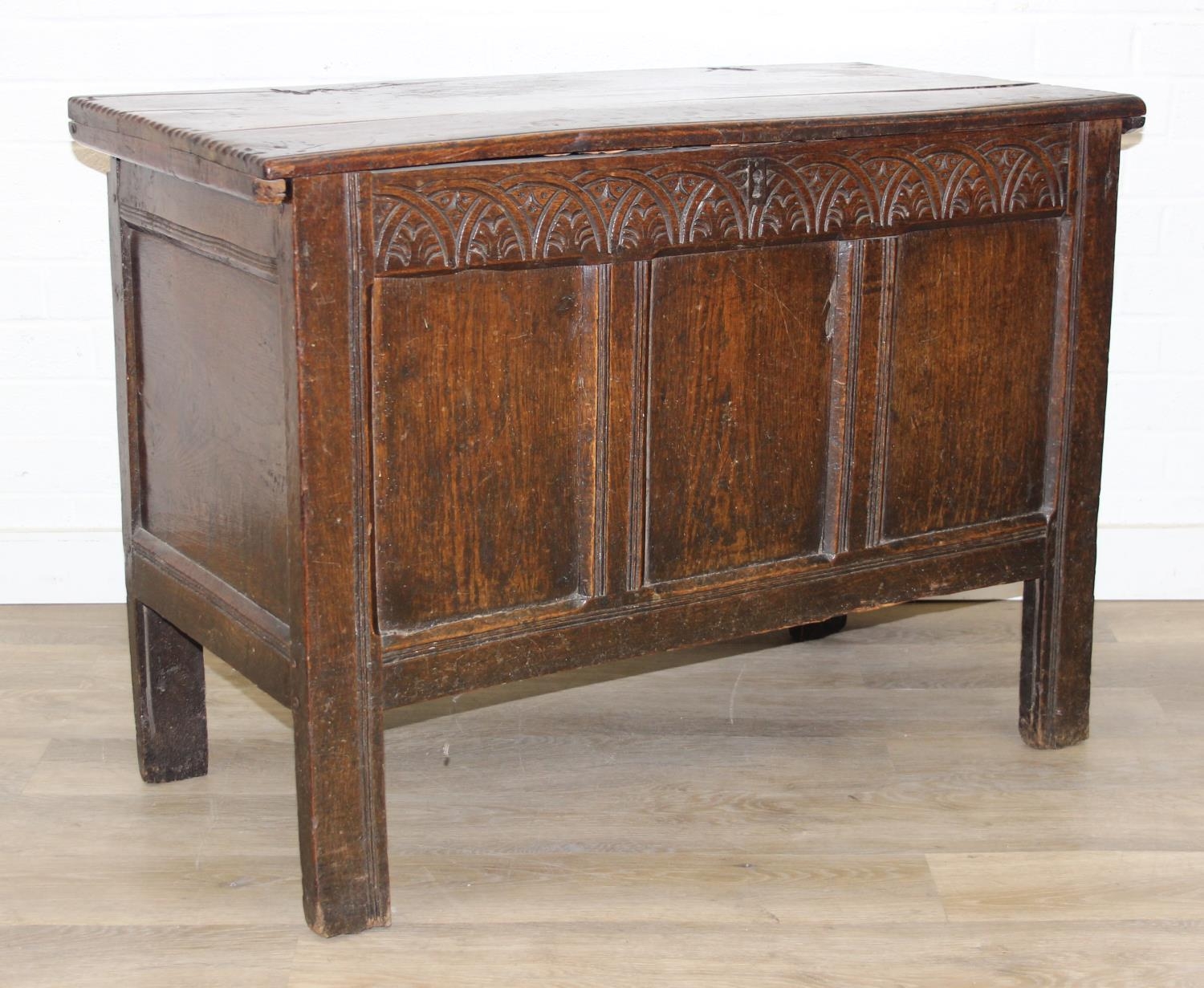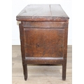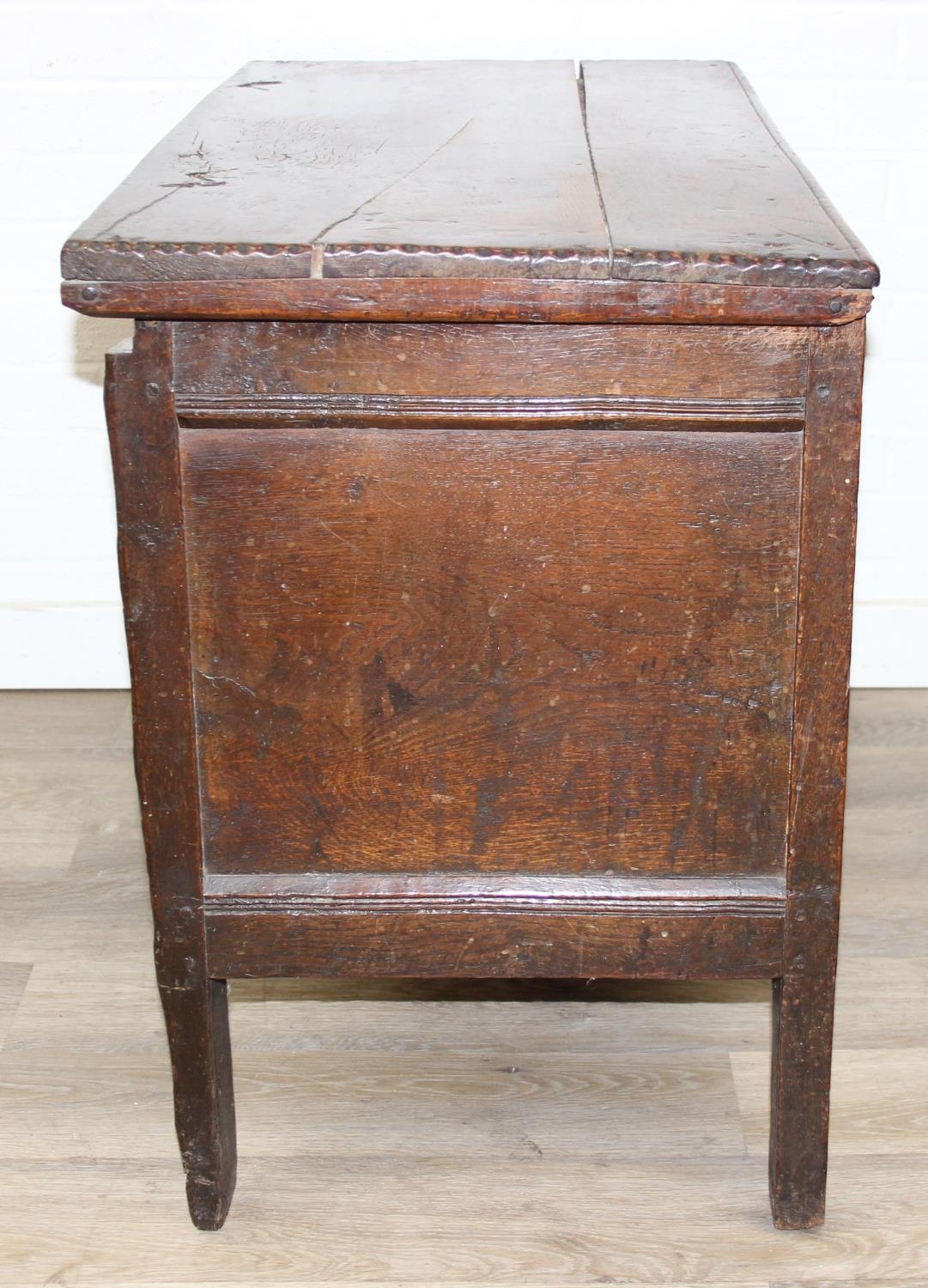 An antique oak coffer with carved details and candle box to interior, likely 18th century, unusual small proportions, 98cm x 49cm x 70cm
