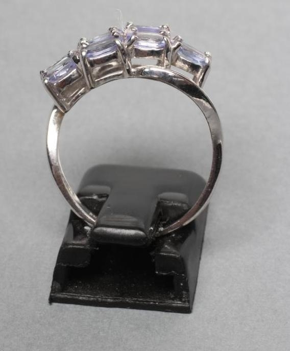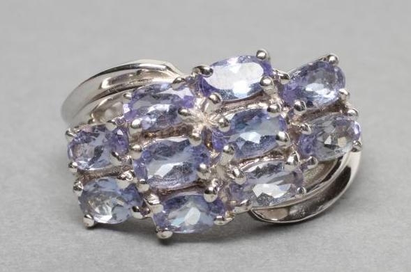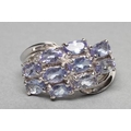 A TANZANITE DRESS RING, the ten oval facet cut pale stones point set to a 9ct white gold reeded crossover shank, size O (Est. plus 21% premium inc. VAT)