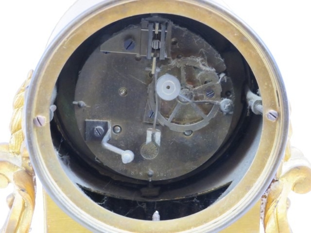Condition report: Some age related wear. Decorative mounts, backplate, bell and pendulum missing to clock as illustrated.