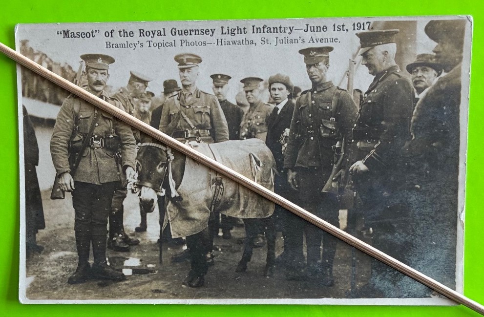 Real photographic postcard by Thomas Bramley Guernsey, Mascot of the Royal Guernsey Light Infantry - June 1st 1917.