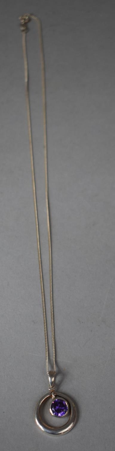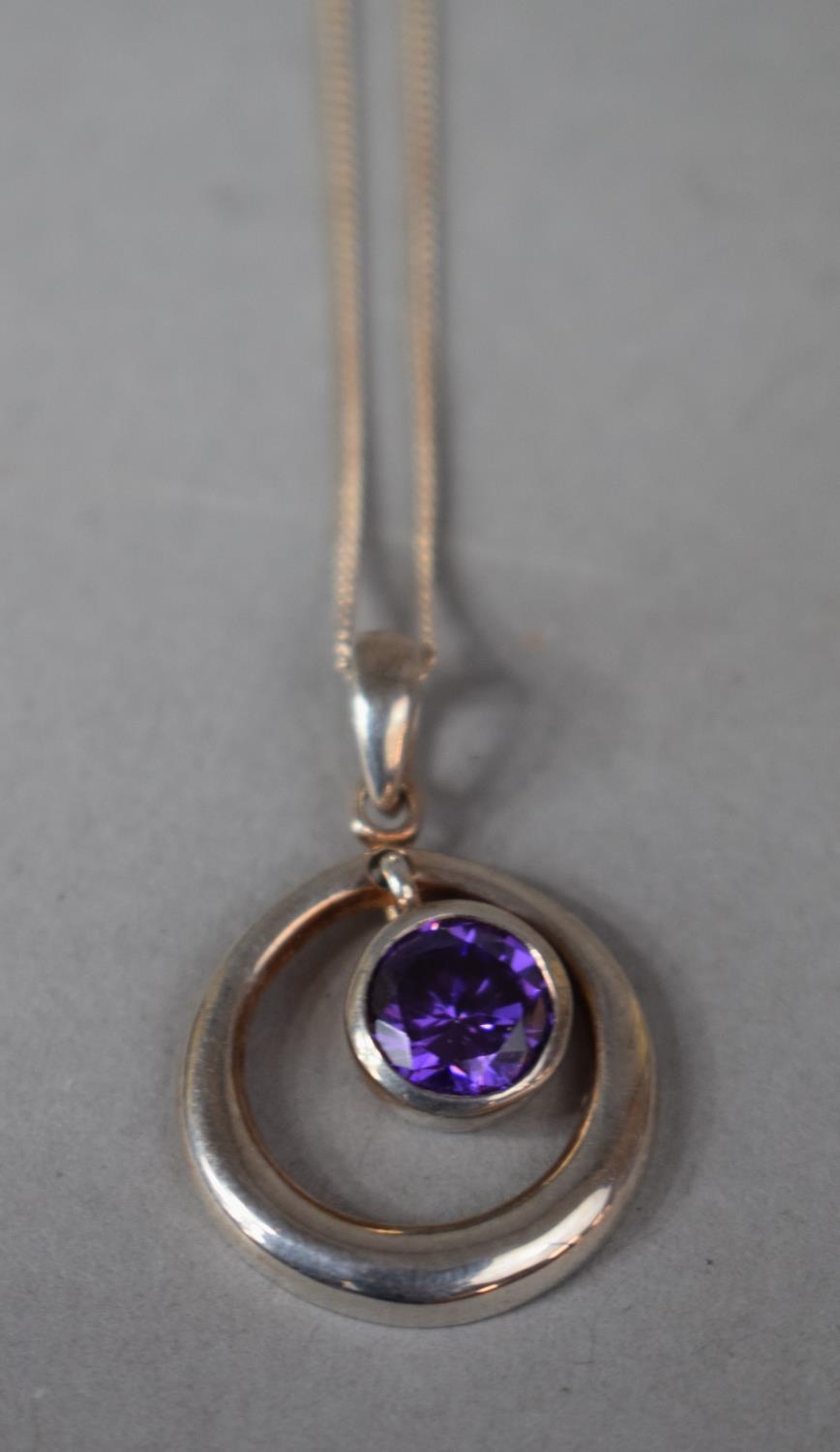 A Silver and Amethyst Pendant on 925 Silver Chain
