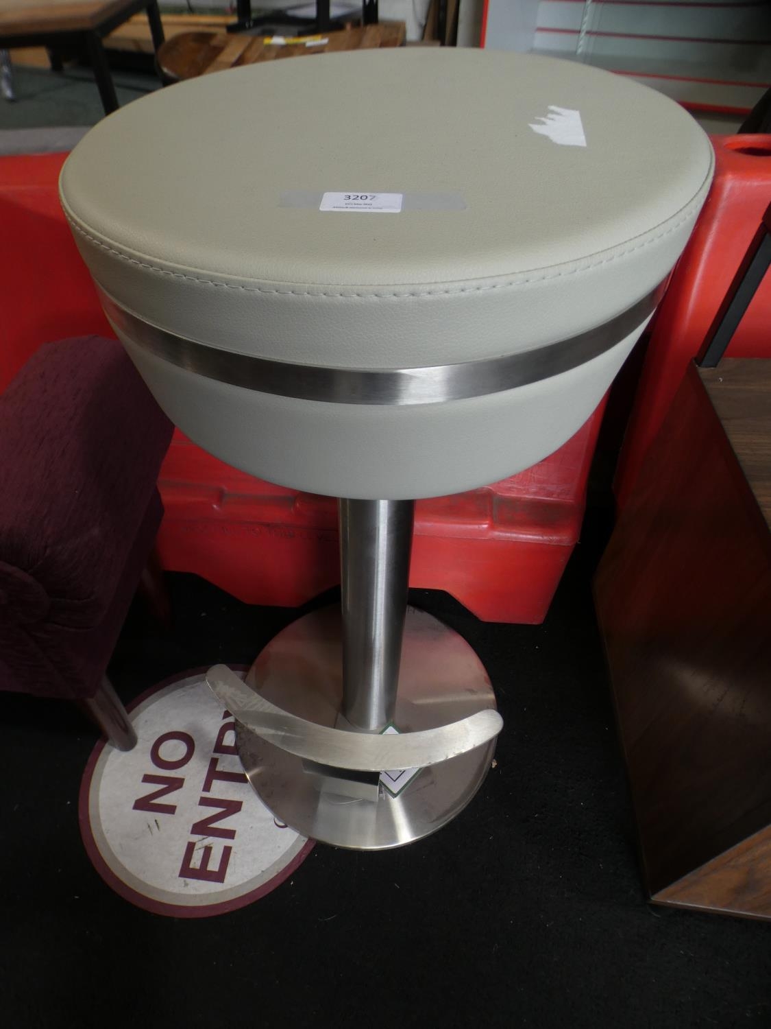 A grey upholstered and metal barstool with footrest * This lot is subject to VAT