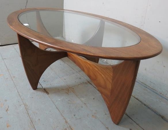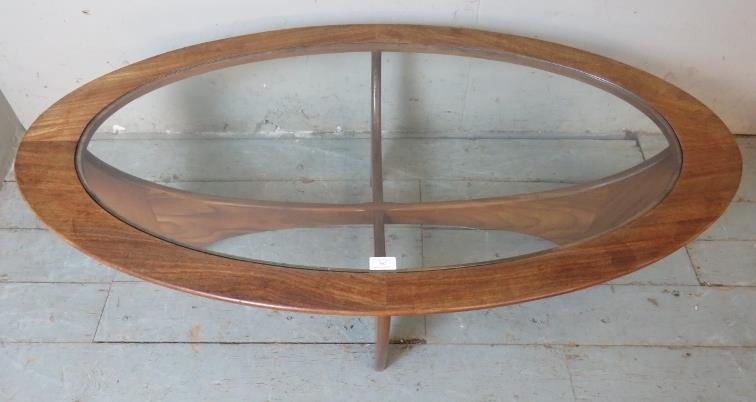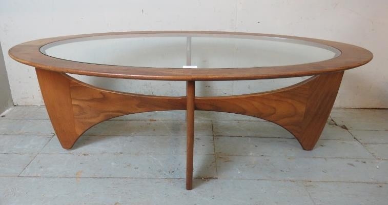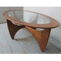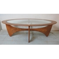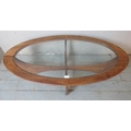 A mid century teak Astro oval coffee table by G Plan with glass inset.