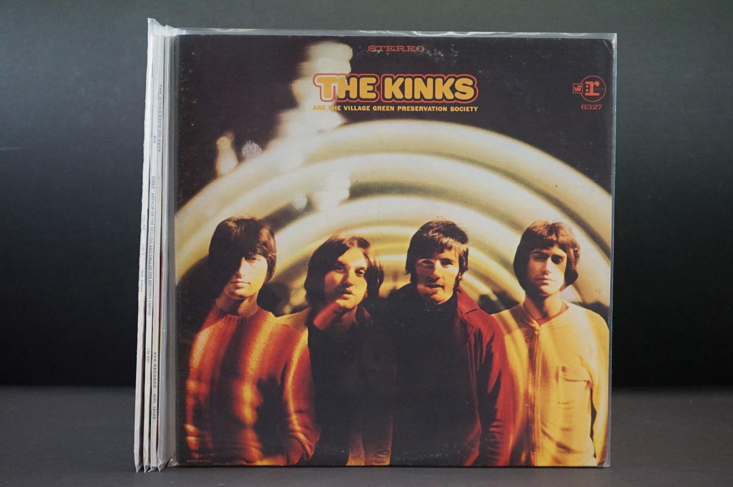 Vinyl - 5 The Kinks LPs to include Something Else By The Kinks (Pye Records – NPL 18193 pink labels, incorrect reissue sleeve) Vg+/Vg, Face To Face (foreign press ZL 342) Vg+/Vg, Arthur (LM1027) Vg/Vg, Lola (HMA 201) Vg+/Vg+, The Kinks Are The Village Green Preservation Society (RS 6327) Vg/Vg+