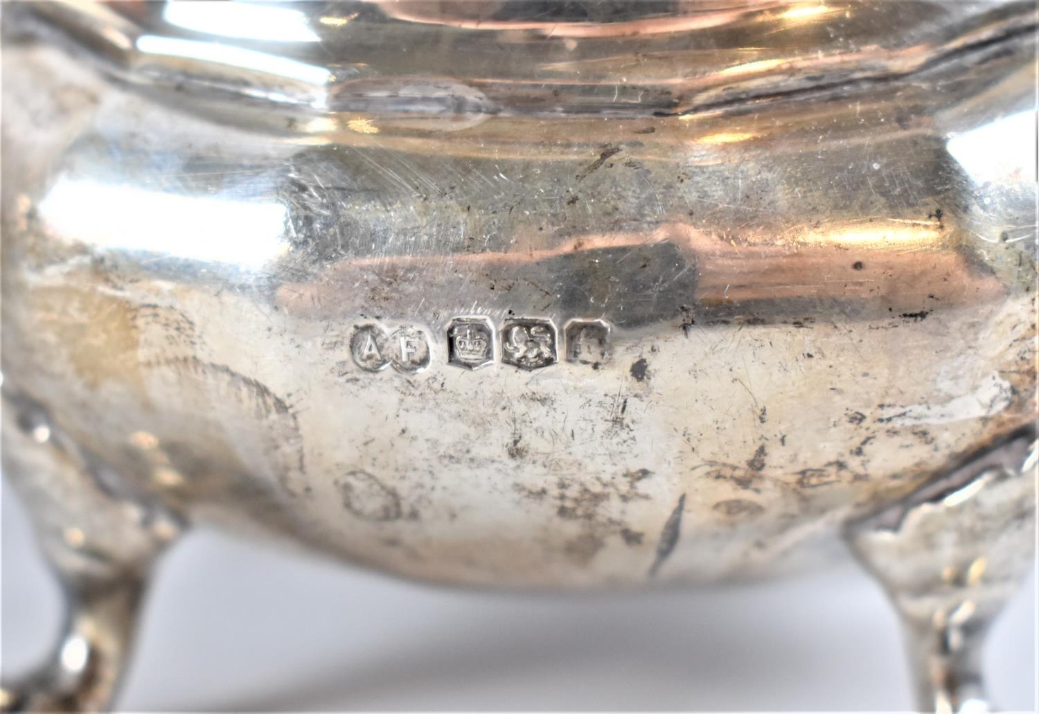 A Hallmarked Silver Tea Service, Birmingham 1930 approx, Light Compression to Single Claw Foot on Jug and Sugar Bowl, 972g