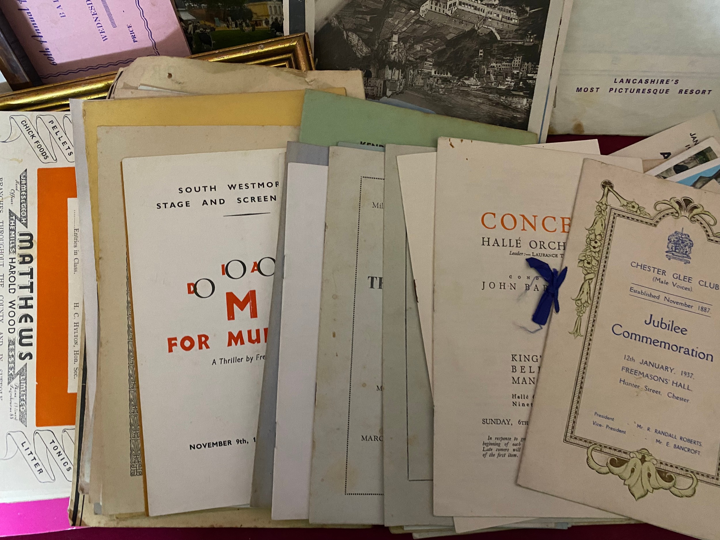 Large collection of ephemera including photo's, letters and other paperwork, theatre programmes and postcards.