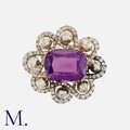 An Antique Amethyst And Diamond Brooch in yellow gold and si...