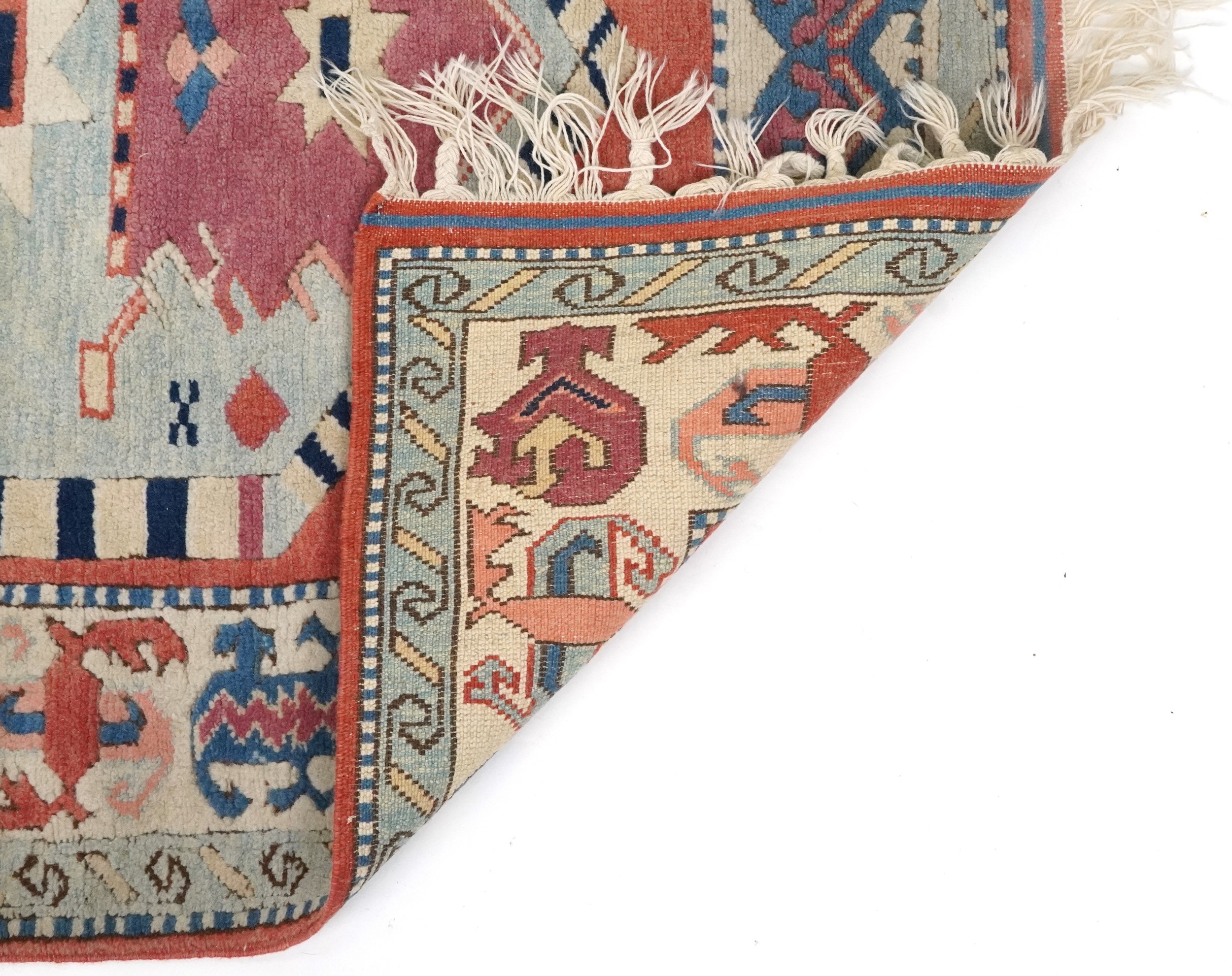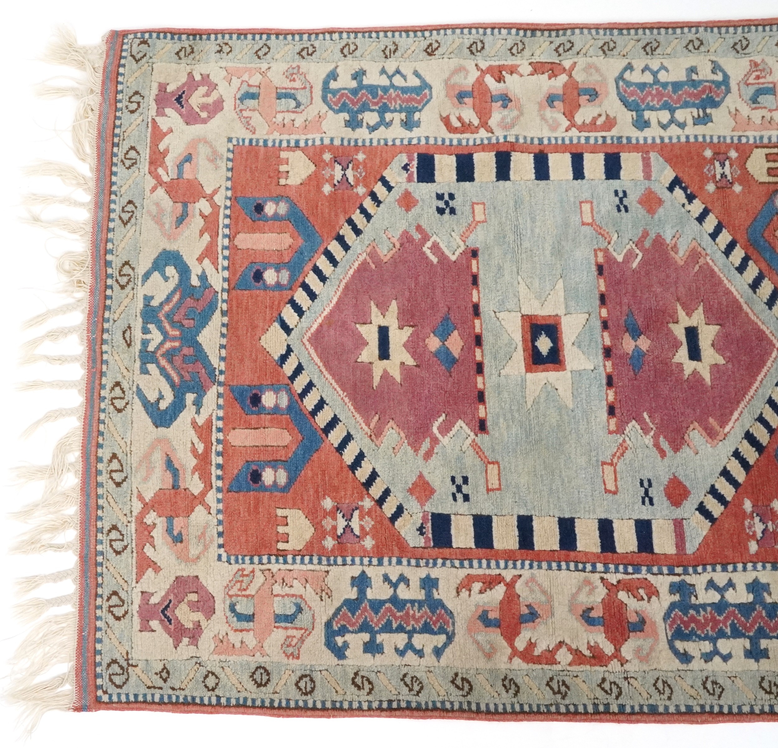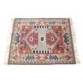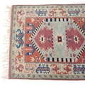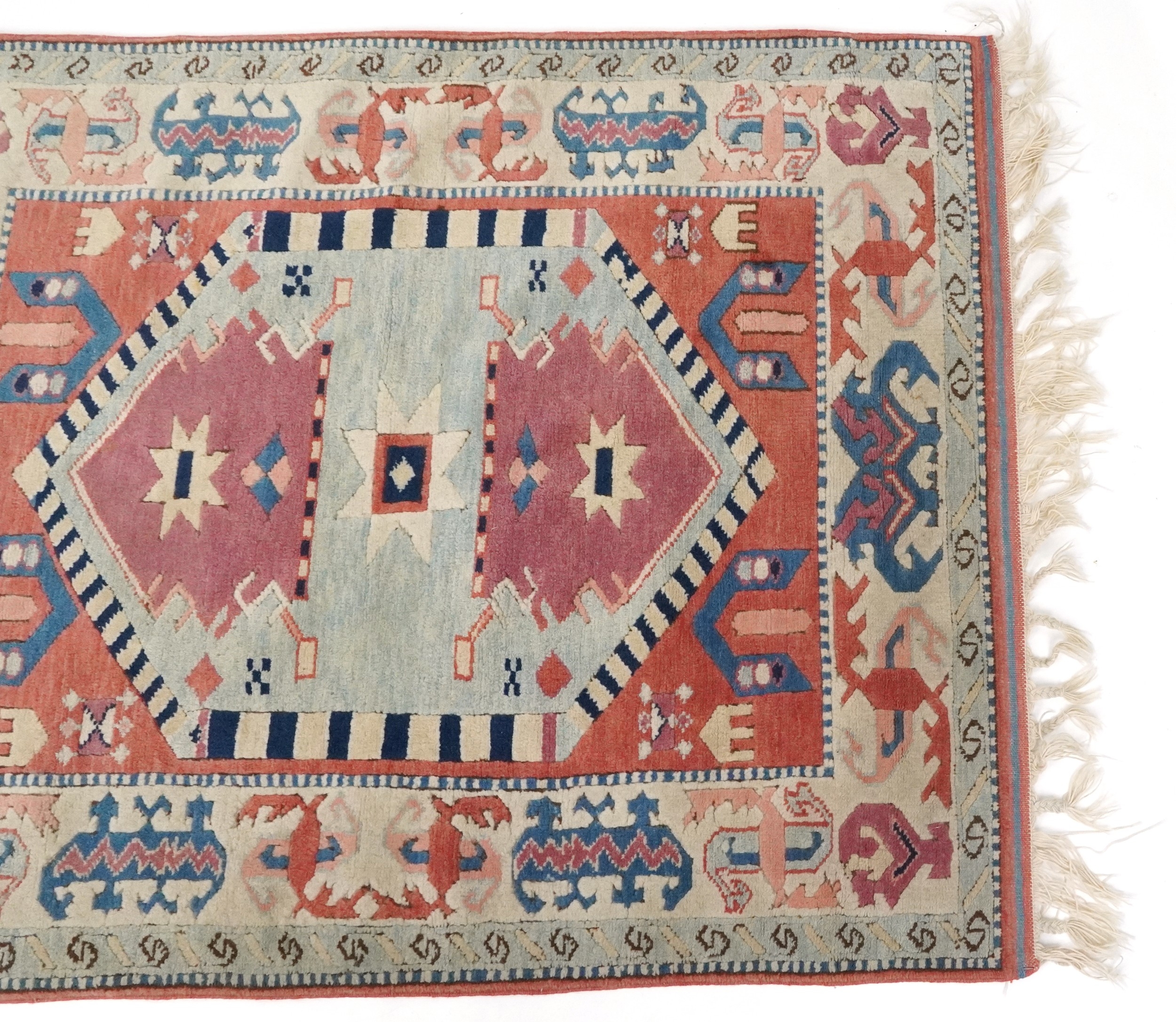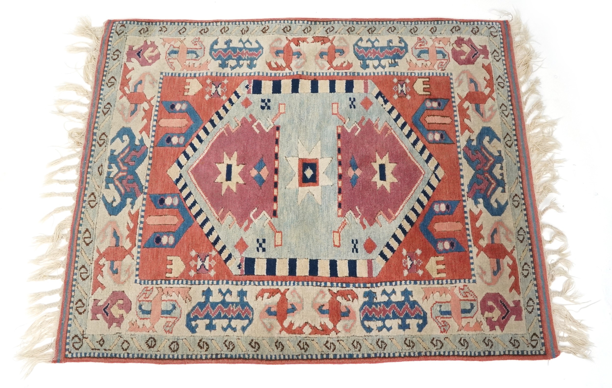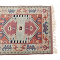 A Turkish rug, 20th century, the pink field with stylized central medallion within a complementary border, 158cm x 127cm.