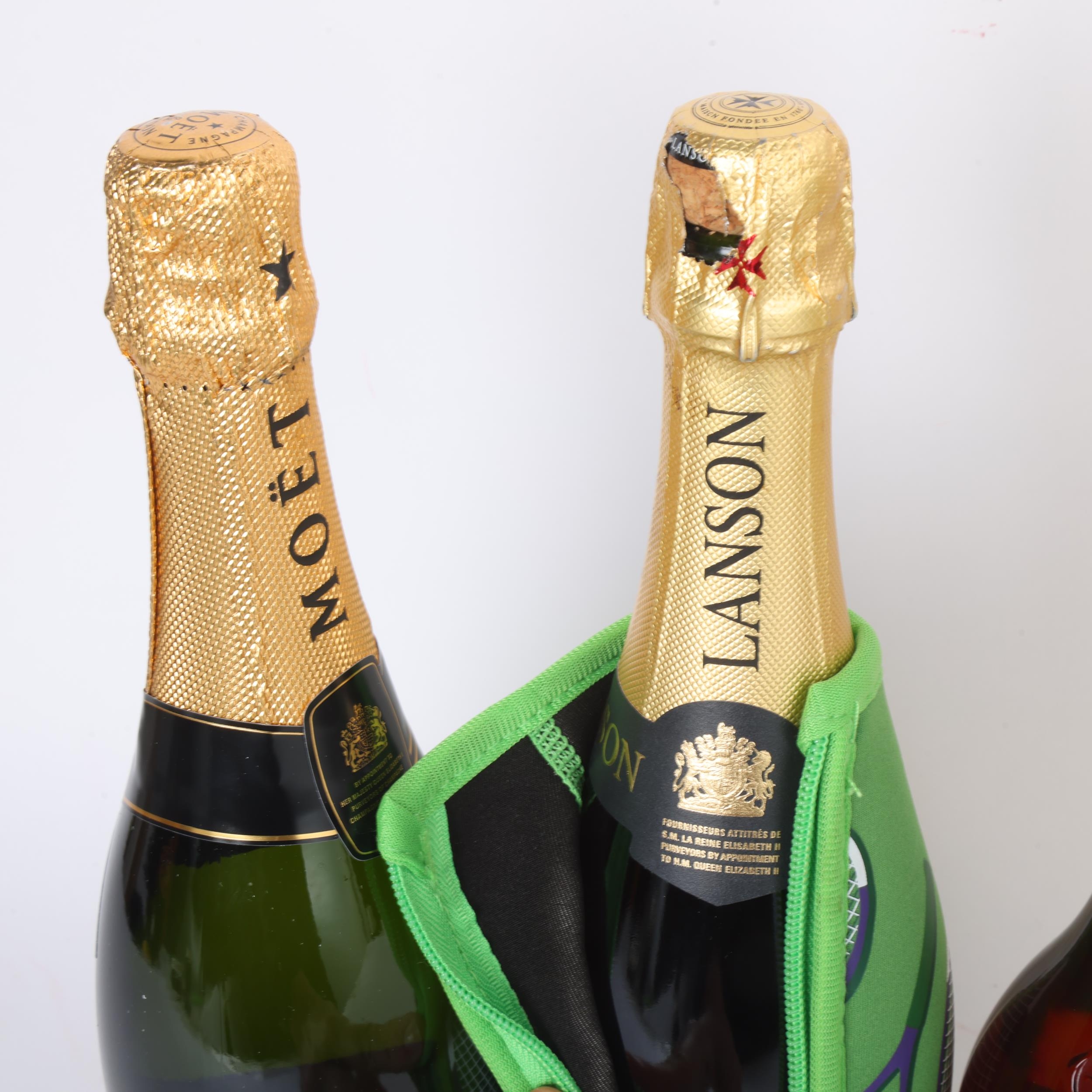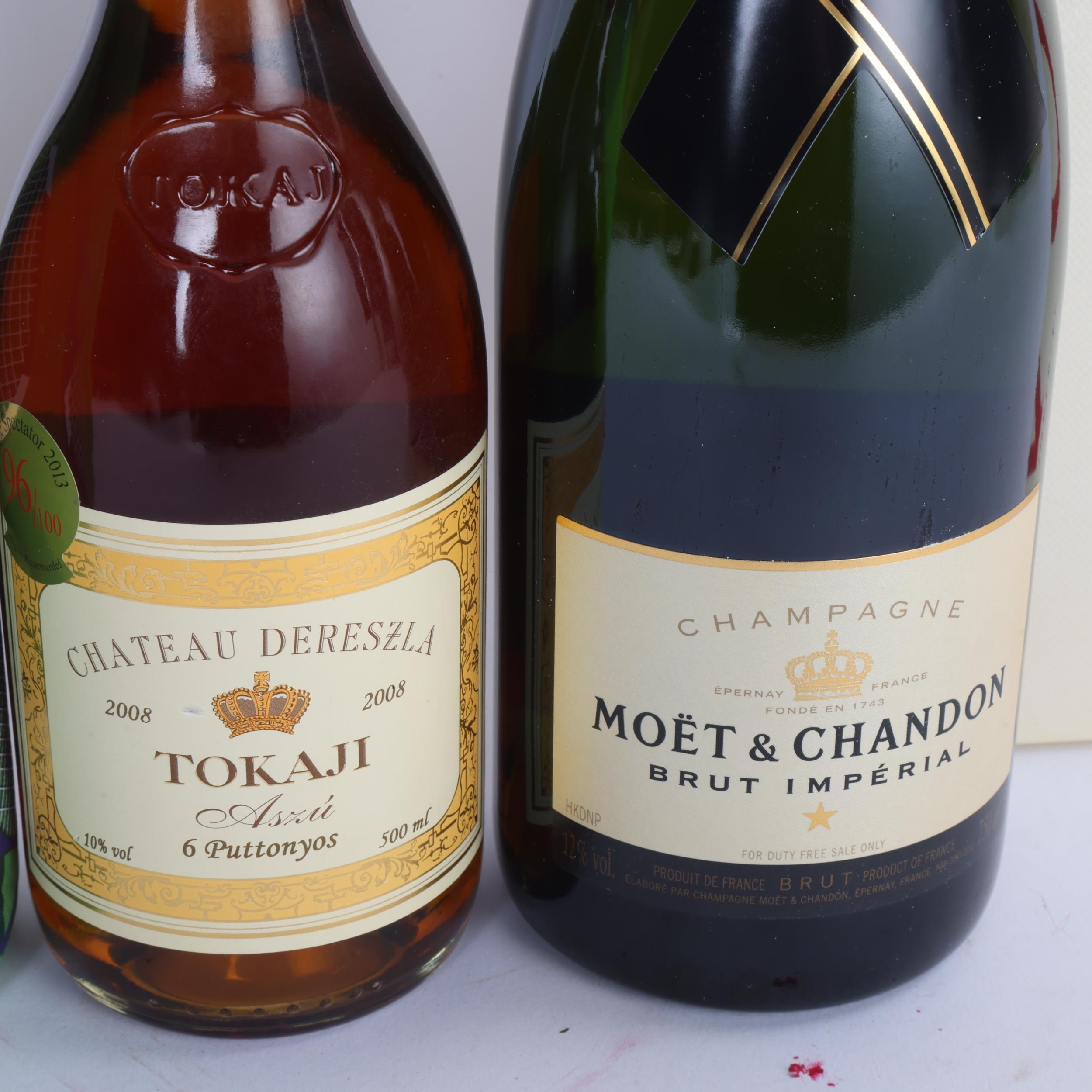 2 bottles of non vintage Champagne, Moet & Chandon Brut Imperial in presentation box 750ml, Lanson Blac k Label Brut in Wimbledon wine cooler sleeve 750ml, together with a bottle of Tokaji 2008 Chateau Dereszla 6 Puttonyos 500ml (3)