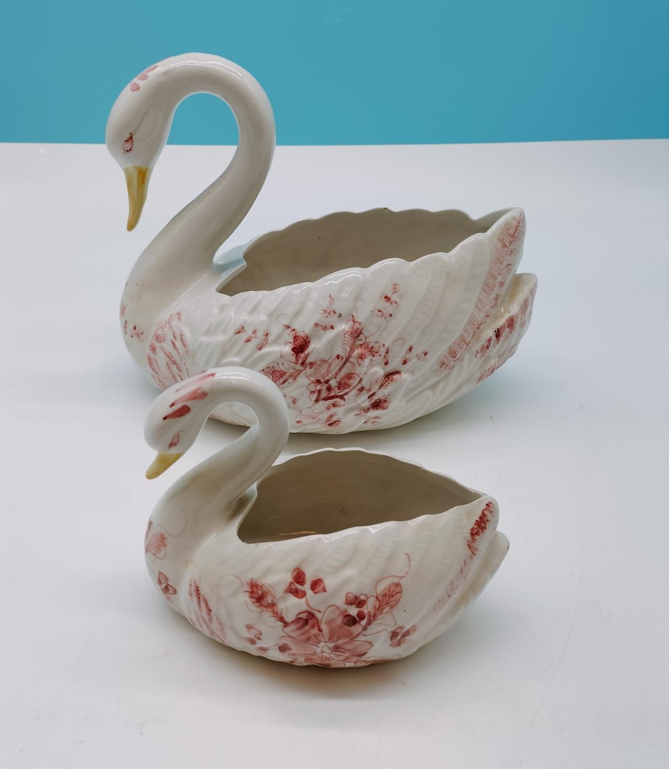 Ceramic Swan Figures (2). Made in Portugal. 22cm High x 27cm.