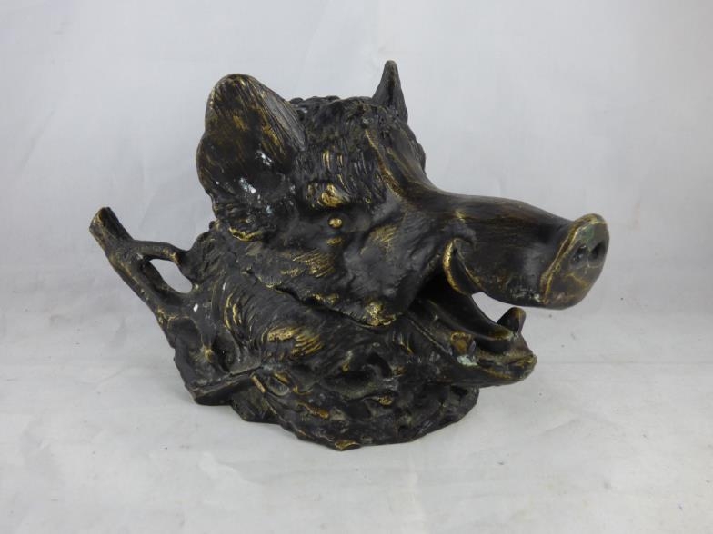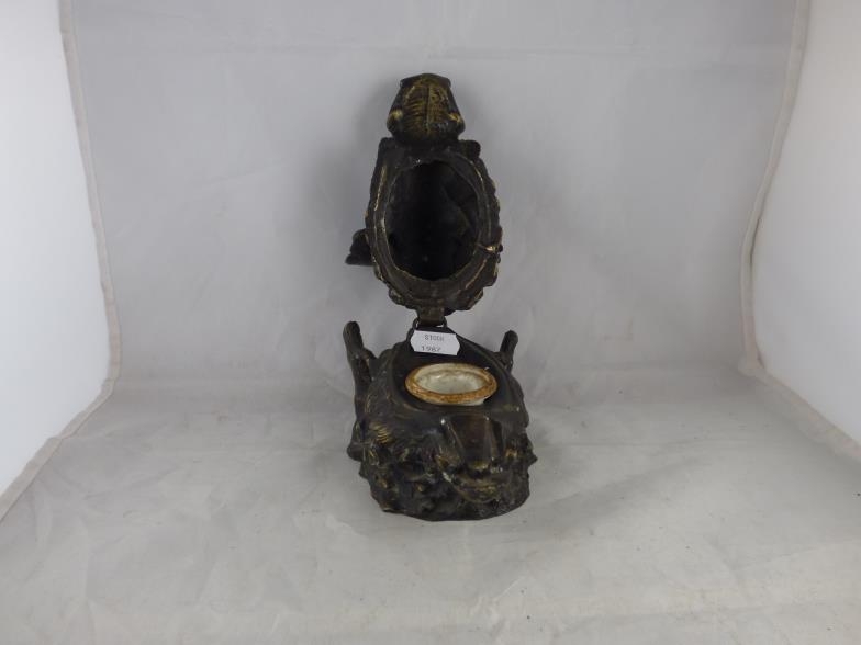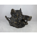 Vintage bronze inkwell depicting a wild boar and signed by Barrie