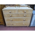 A XIX Century Pine Chest of Drawers, with ¾ gallery two short, three long drawers, on bun feet.