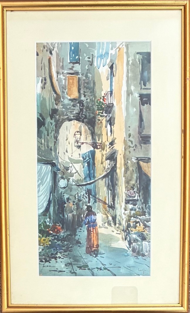 English School, 20th century, Old Town, Genoa, watercolour, indistinctly signed, 33 x 16cm.