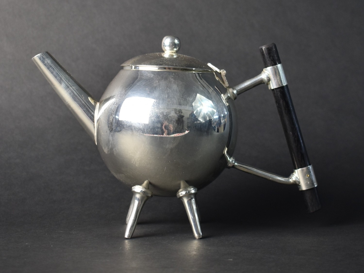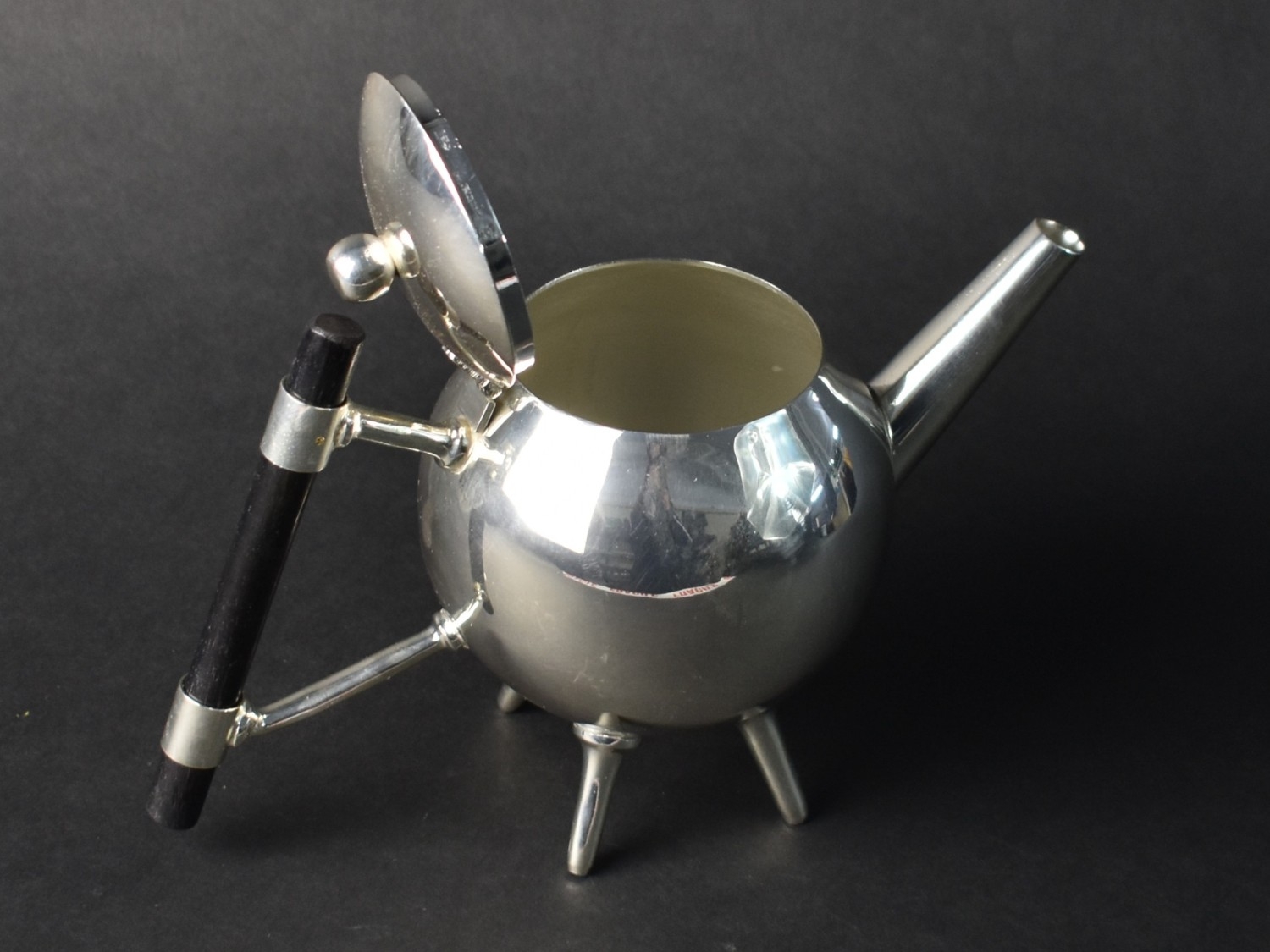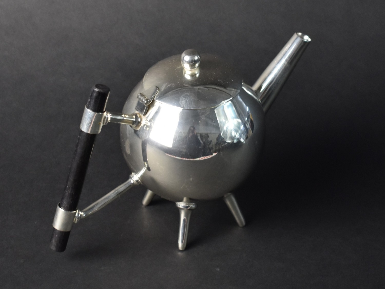 A Reproduction Silver Plated Christopher Dresser Style Teapot with Ebonised Handle, 13cms High