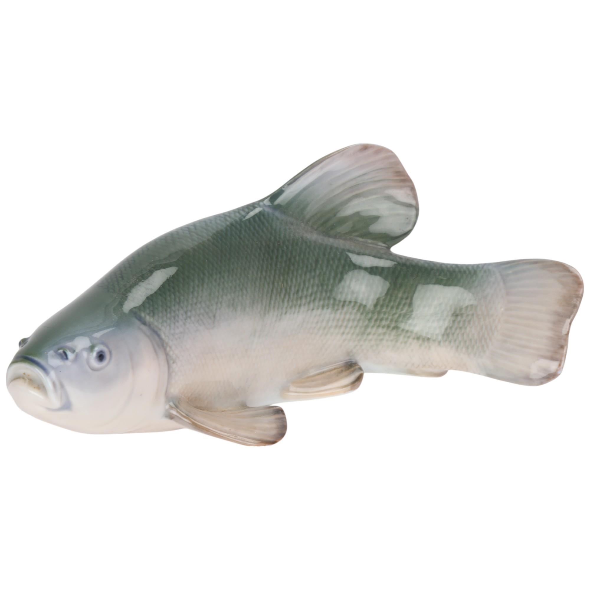 A Royal Copenhagen ceramic Tench figure, makers marks to base, numbered 372, length 18cm