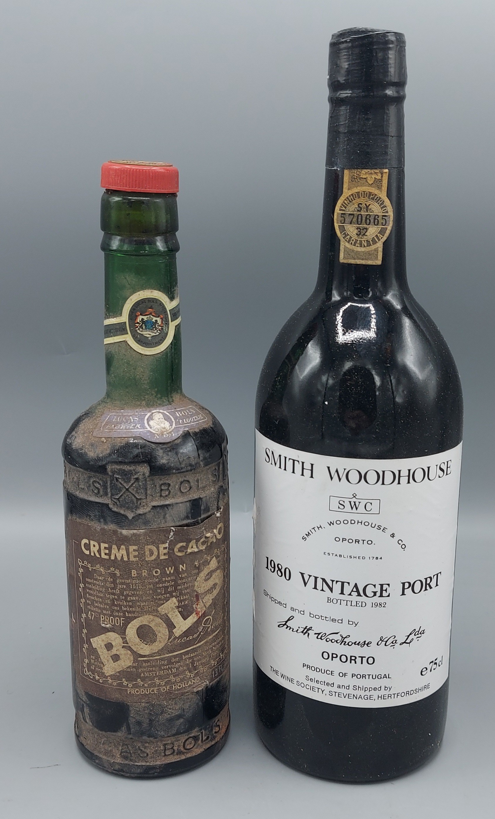 One bottle Smith Woodhouse Vintage Port dated 1980 together with one bottle Bols Creme de Cacao