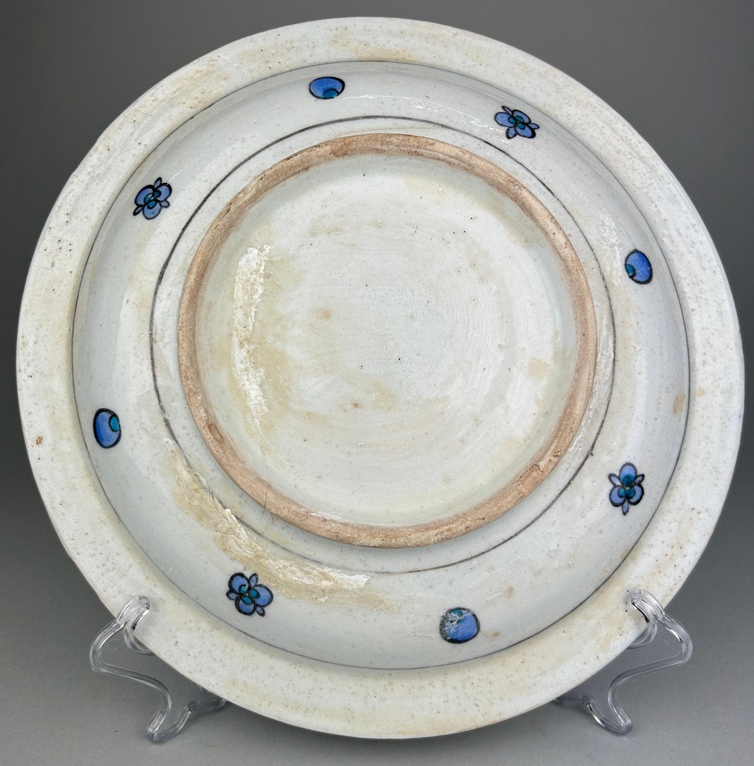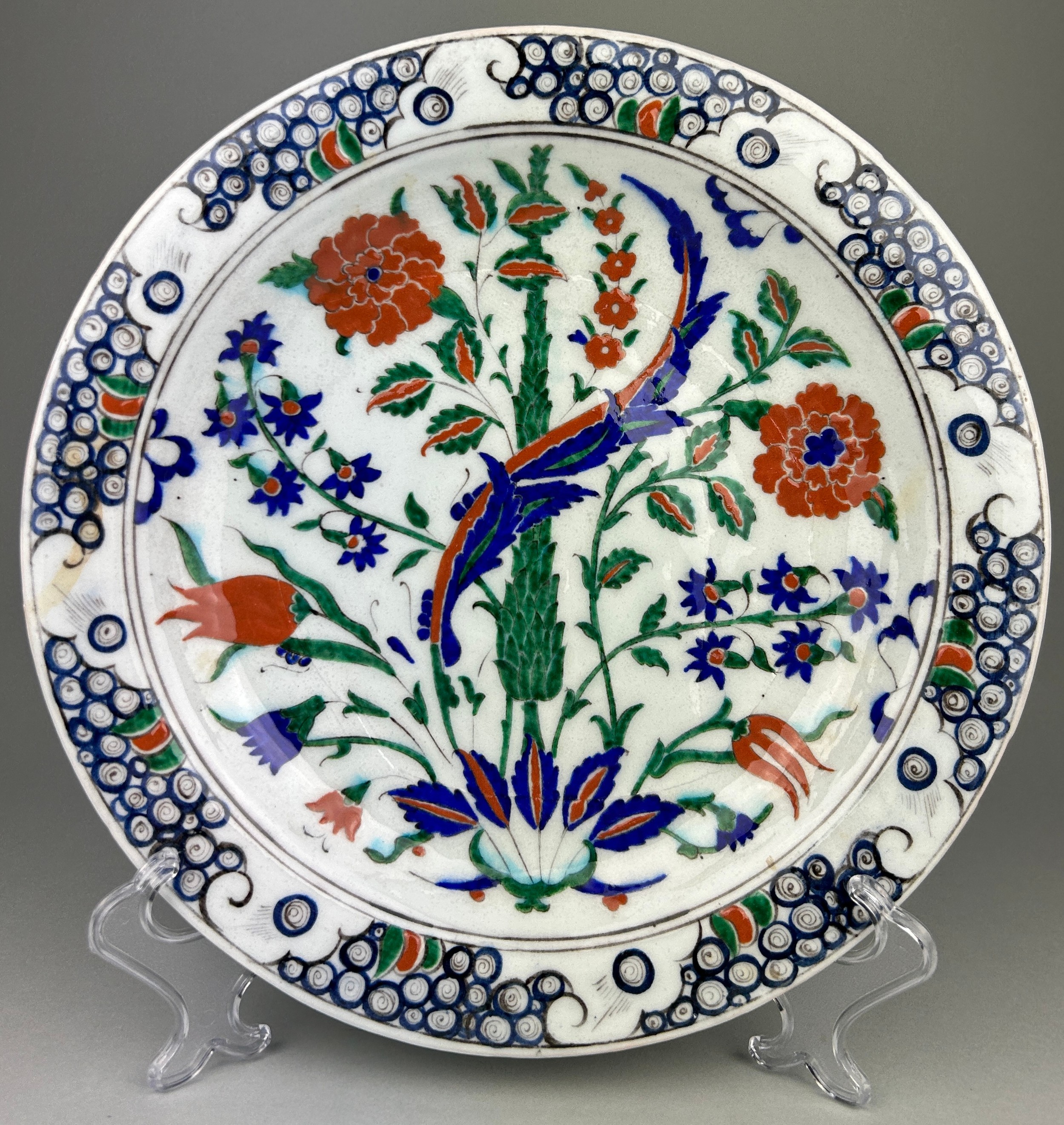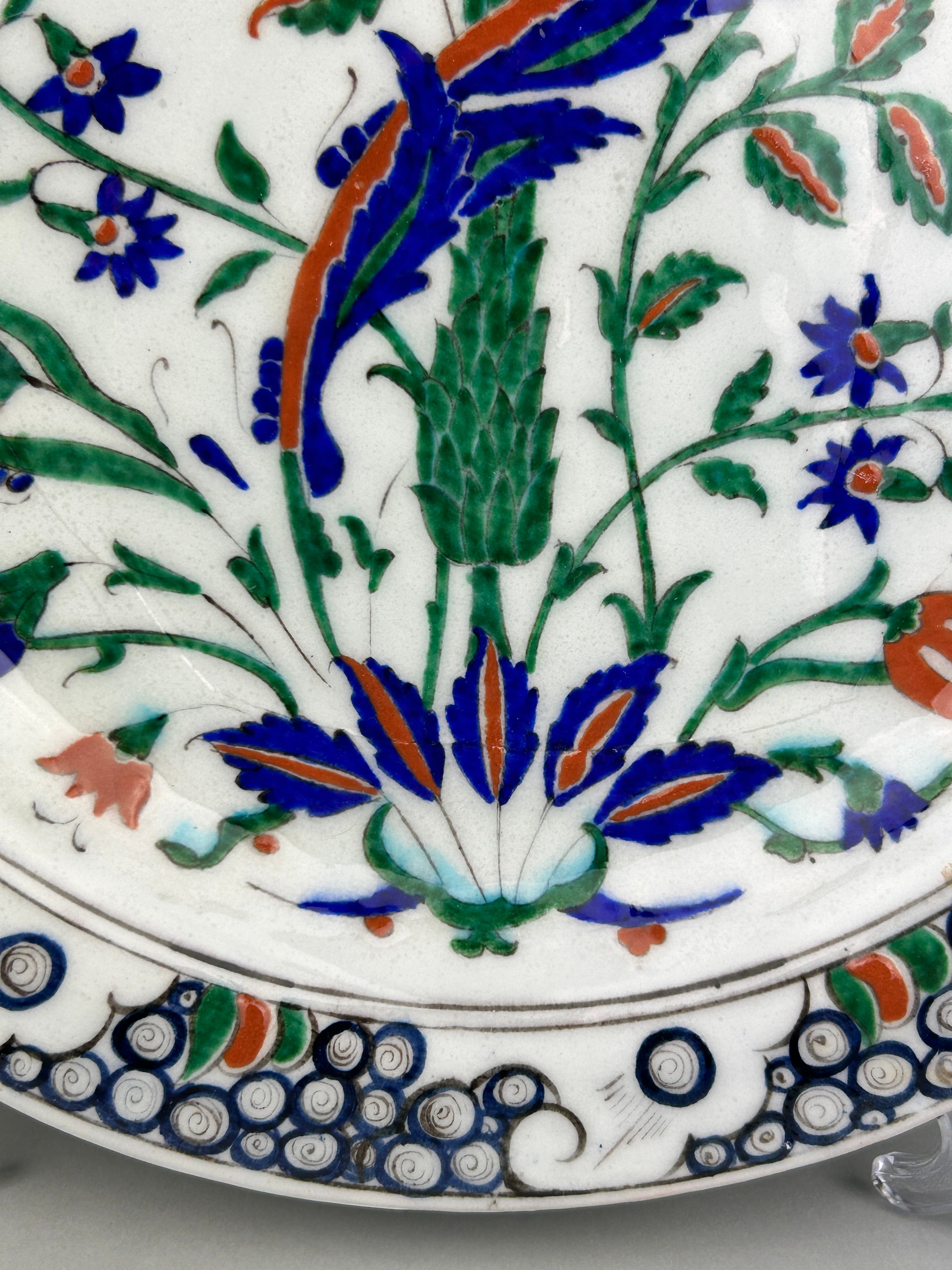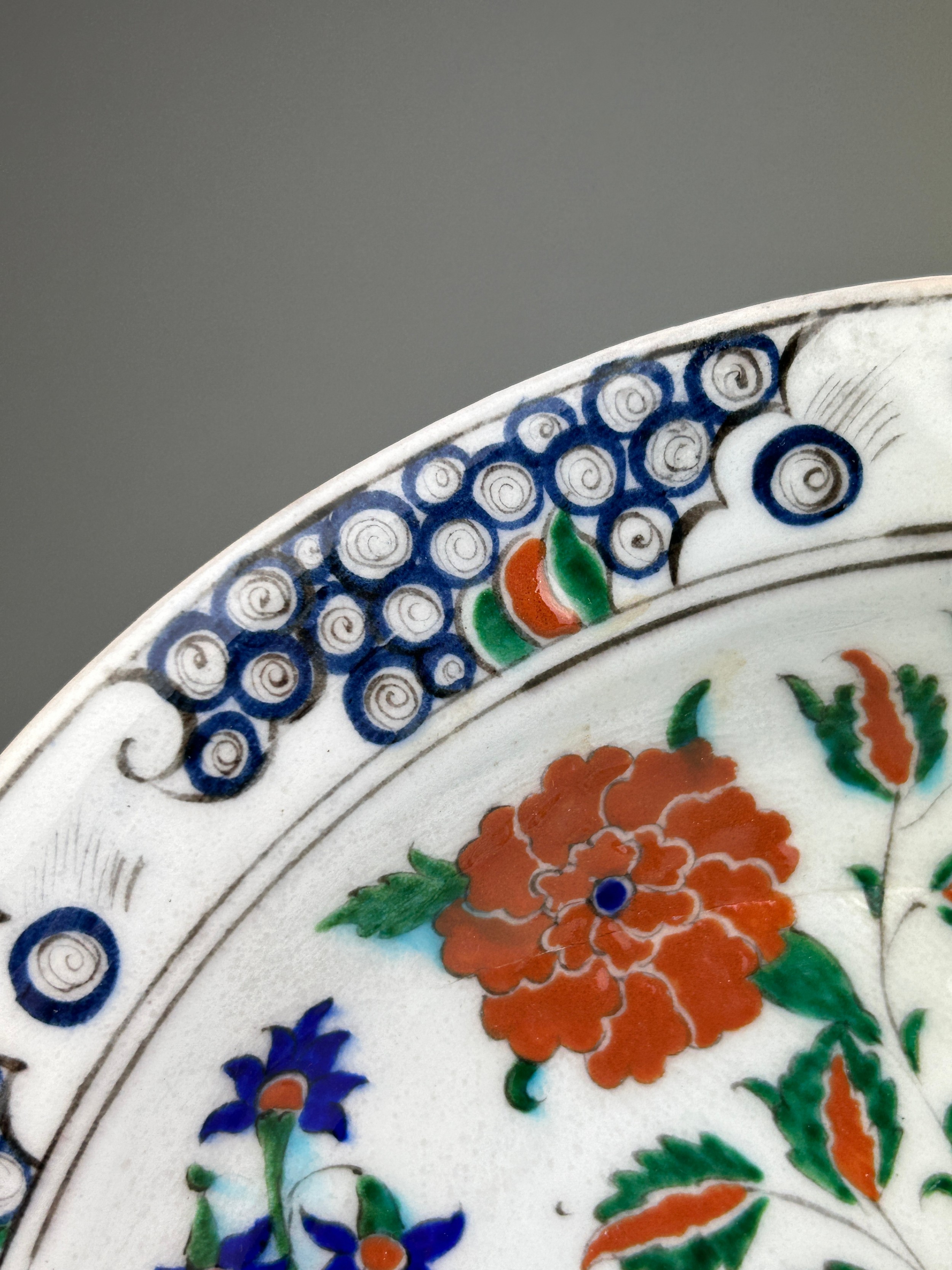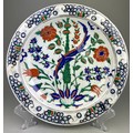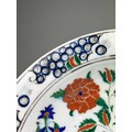 AN IZNIK GLAZED PLATE PAINTED WITH FLOWERS, 31.5 x 31.5cm