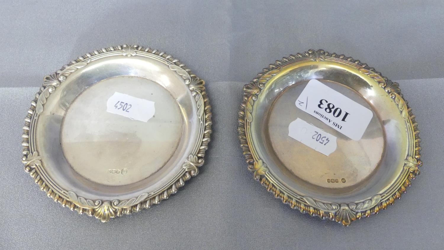 Pair of Small Circular Sheffield Silver Pin Dishes, 2.2oz Troy.