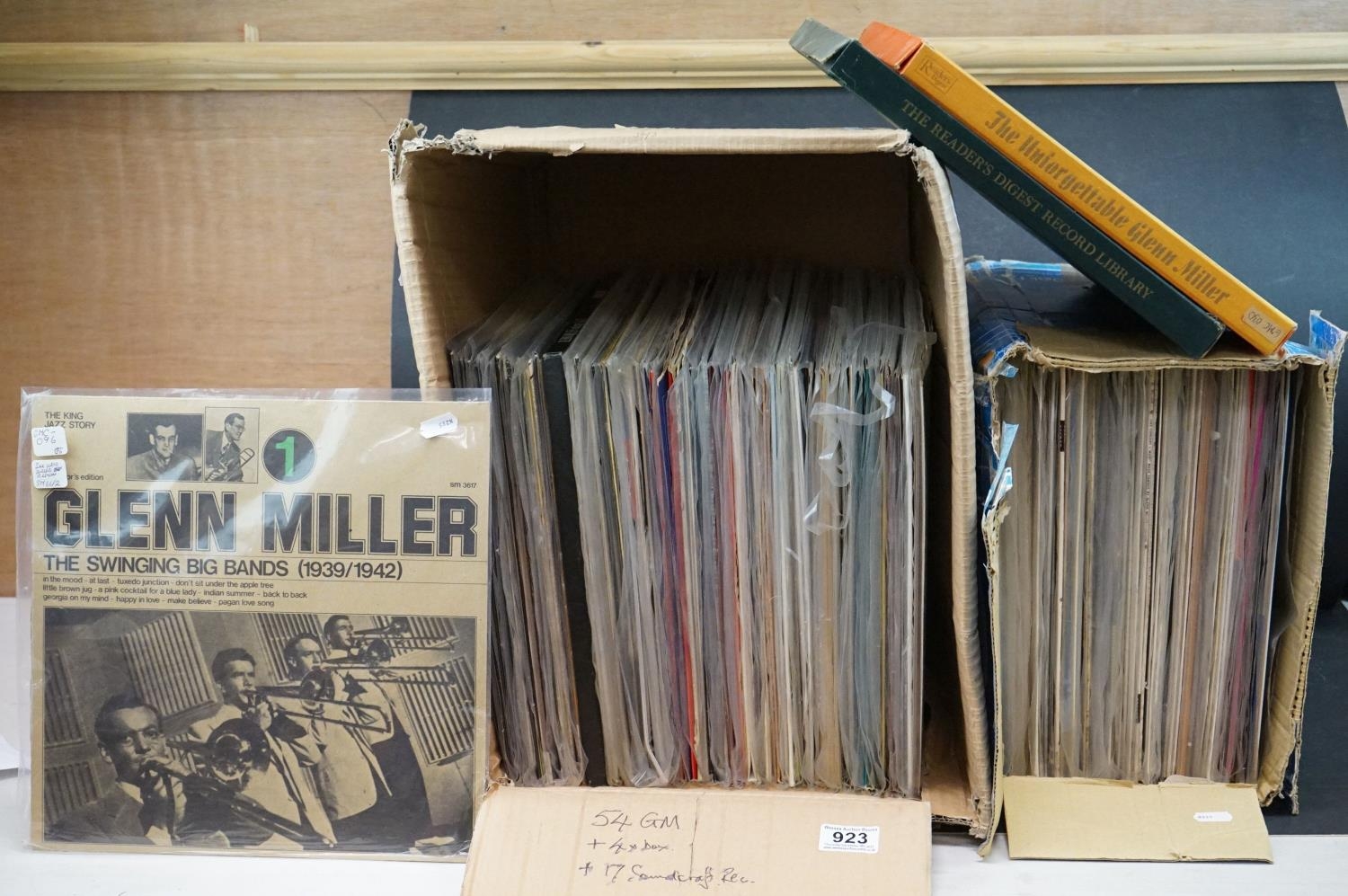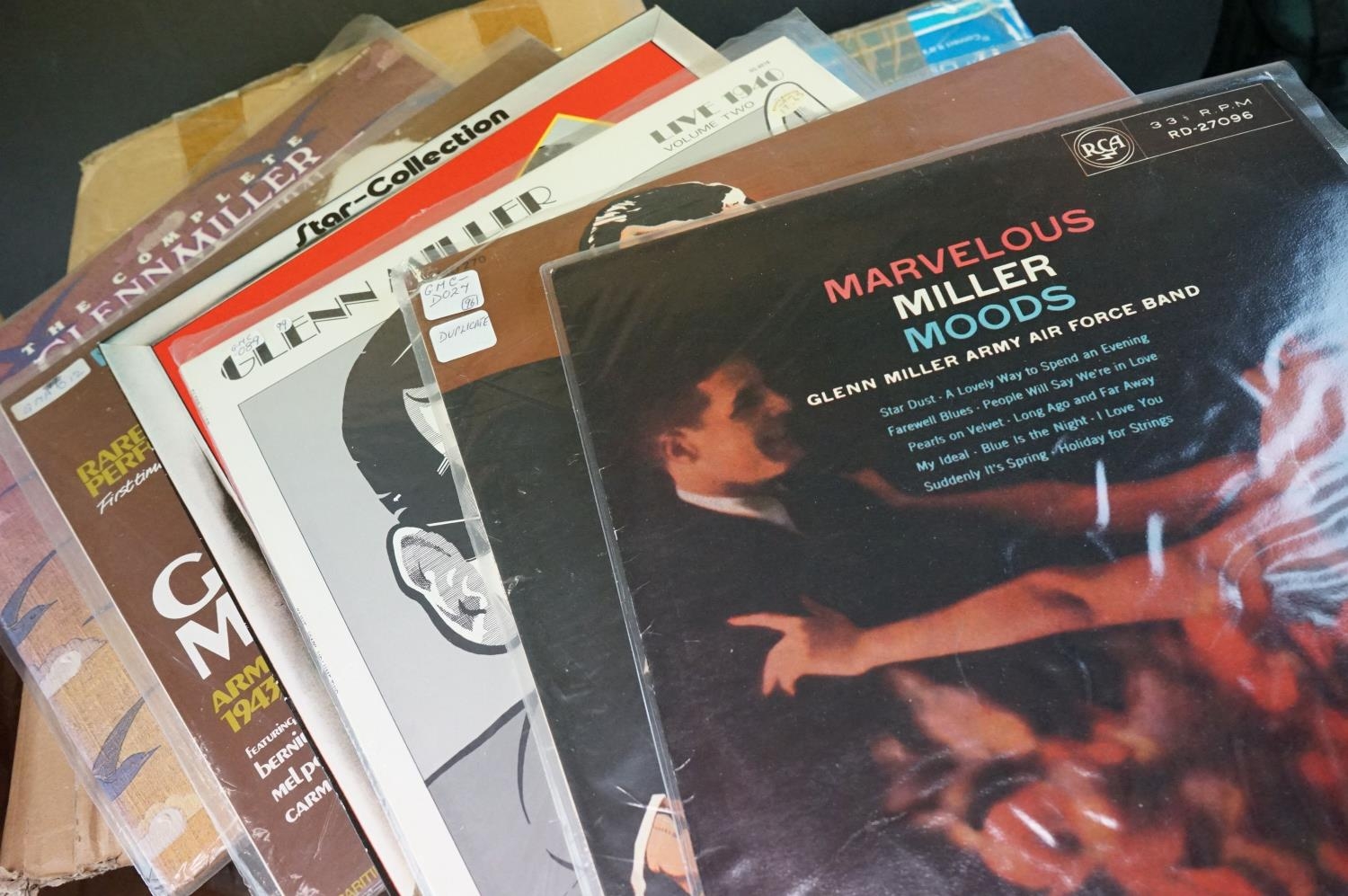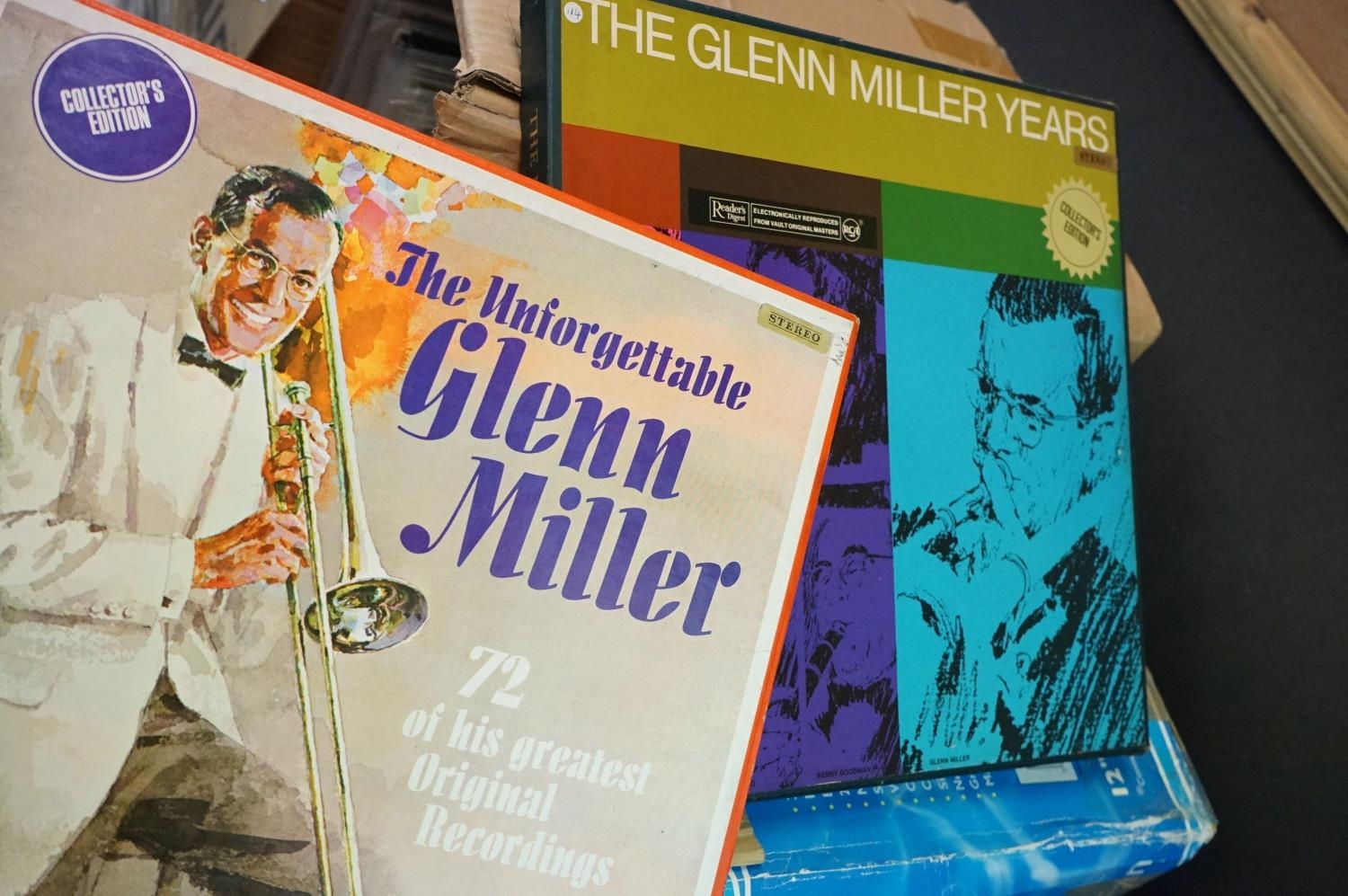 Vinyl - Glenn Miller and his Orchestra and related, approx. 120 swing LPs & box sets, to include Live at The Glen Island Casino 1939, At The Steel Pier in 1941, My Friend Glenn, film scores, UK, USA, Italian pressings etc, vinyl at least vg+ overall (2 boxes)