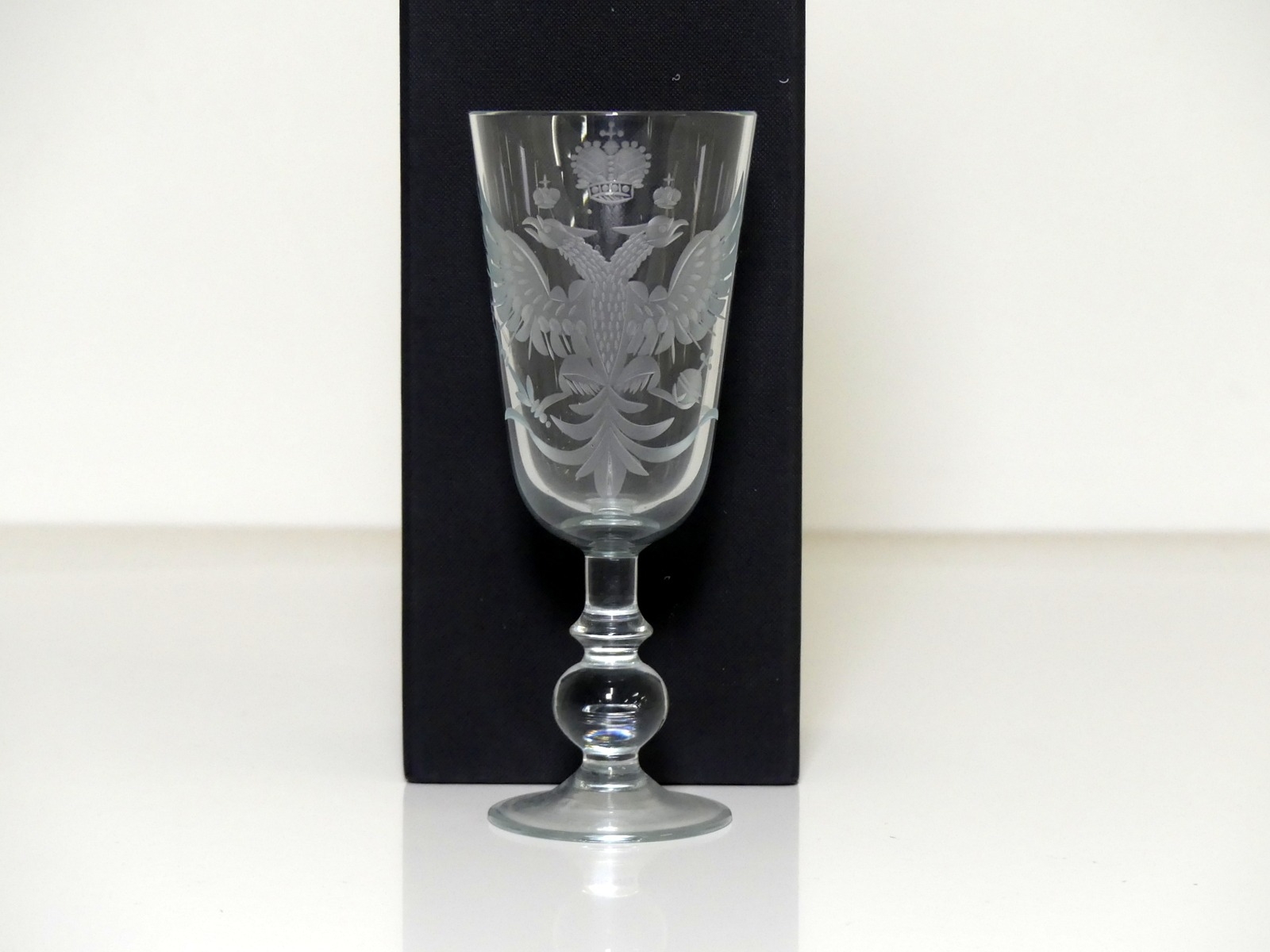 A Finely Engraved Stem Glass, Heraldic Motif and Knopped stem