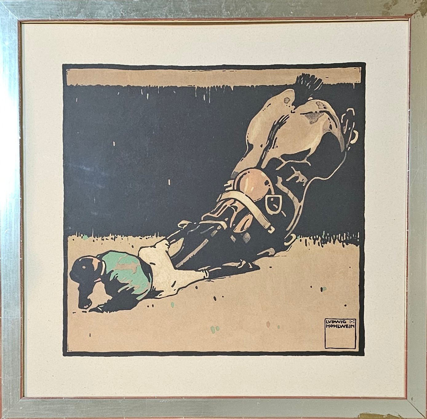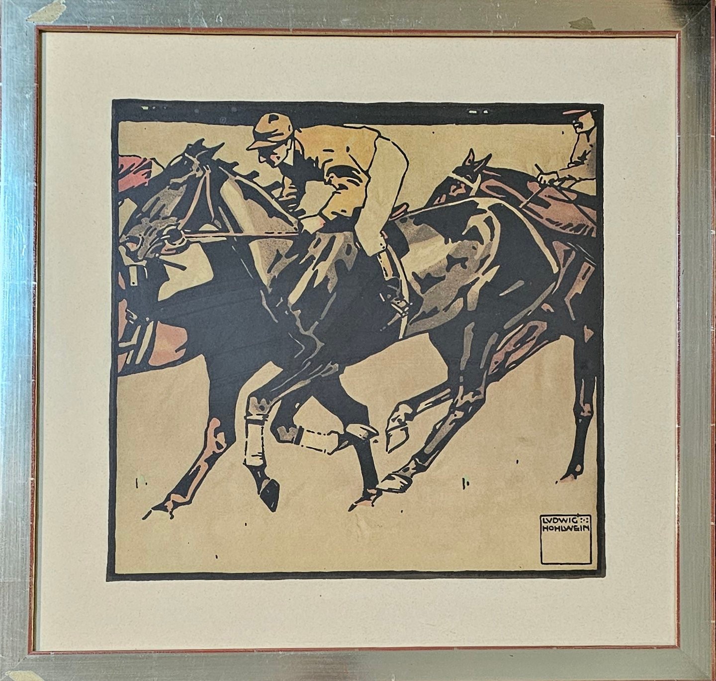 LUDWIG HOHLWEIN, 1874 - 1949, A PAIR OF EARLY 20TH CENTURY ‘HORSE RACING’ LITHOGRAPH PRINTS
