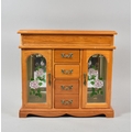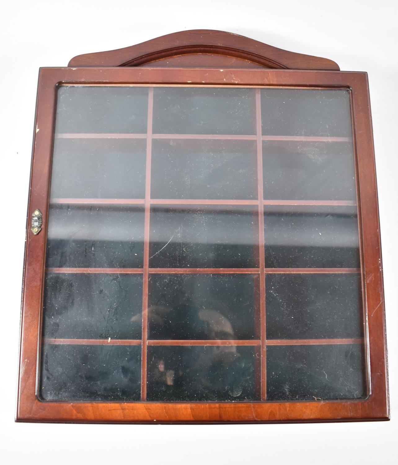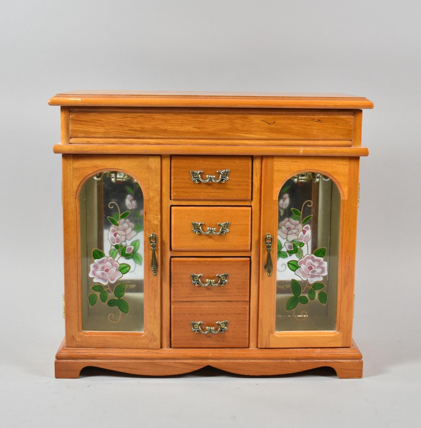 A Modern Jewellery Cabinet with Two Glazed Compartments and Four Centre Drawers Together with a Mahogany Wall Hanging Sectional Display, Handle AF