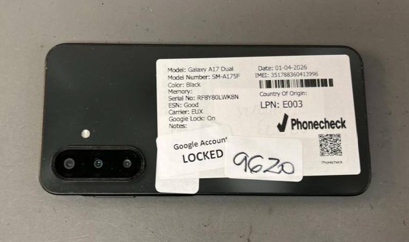 SAMSUNG GALAXY A17 DUAL/ SM-A175F/ BLACK/ GOOGLE LOCKED/ IMEI: 351788360413996- SCREEN DAMAGED