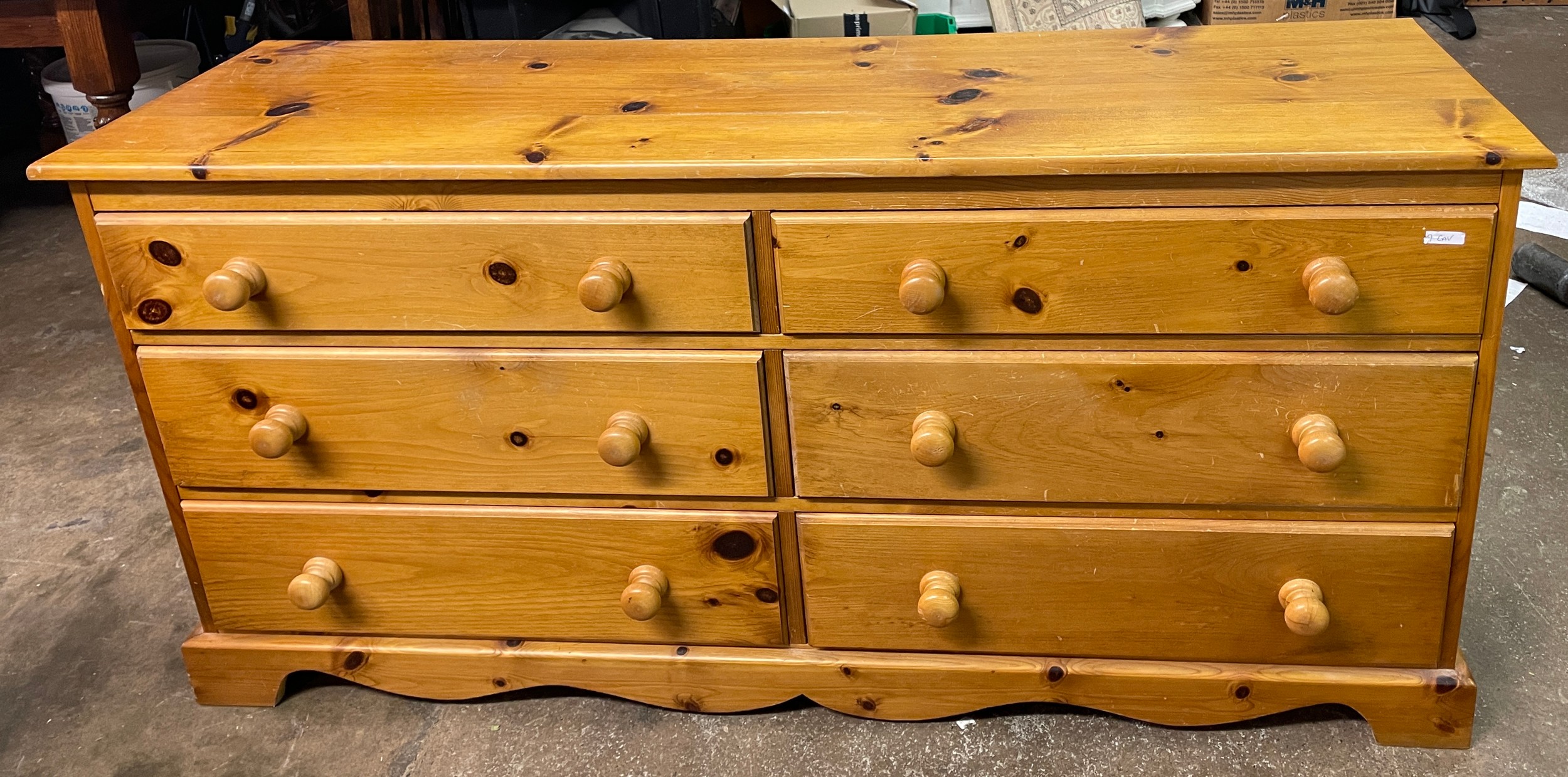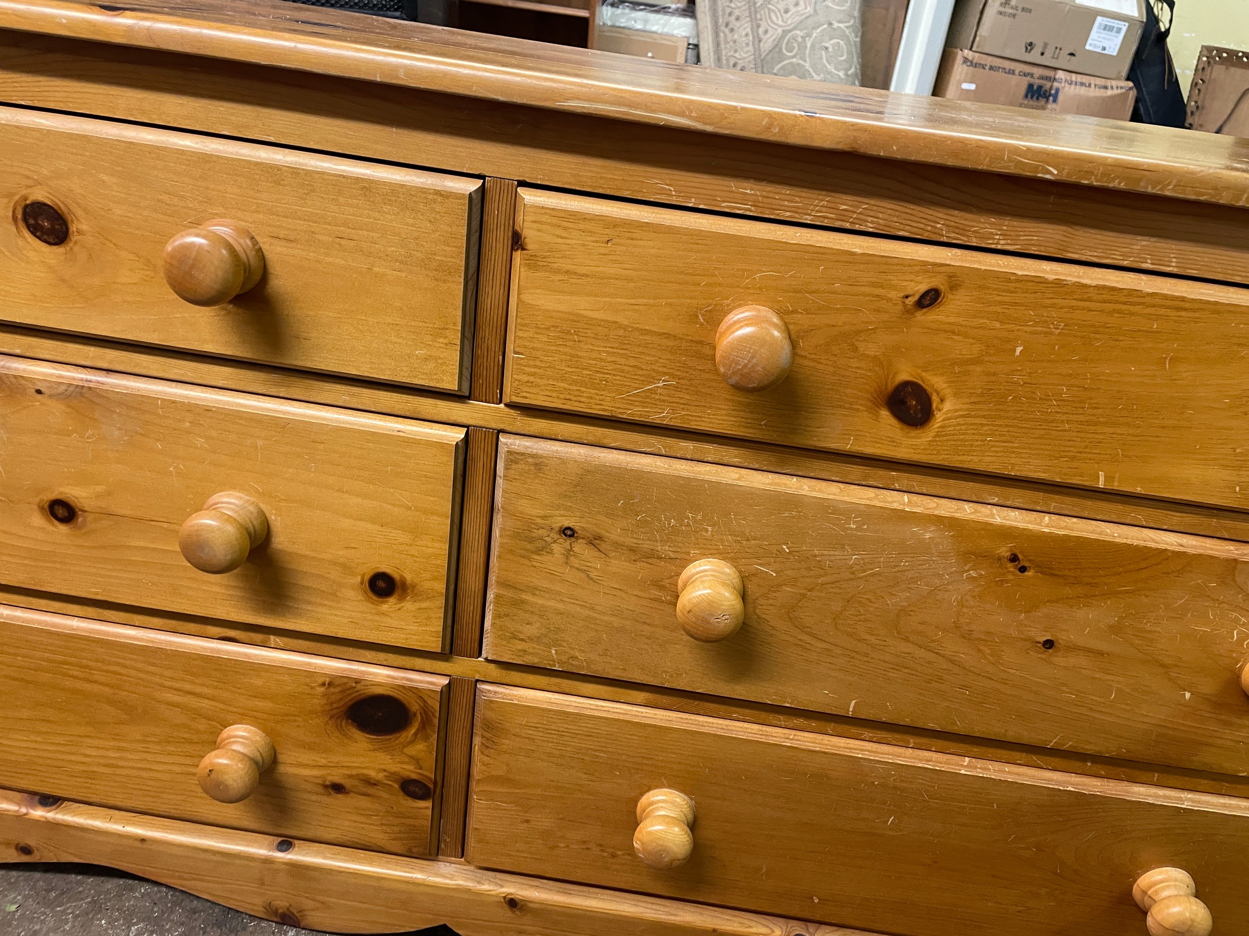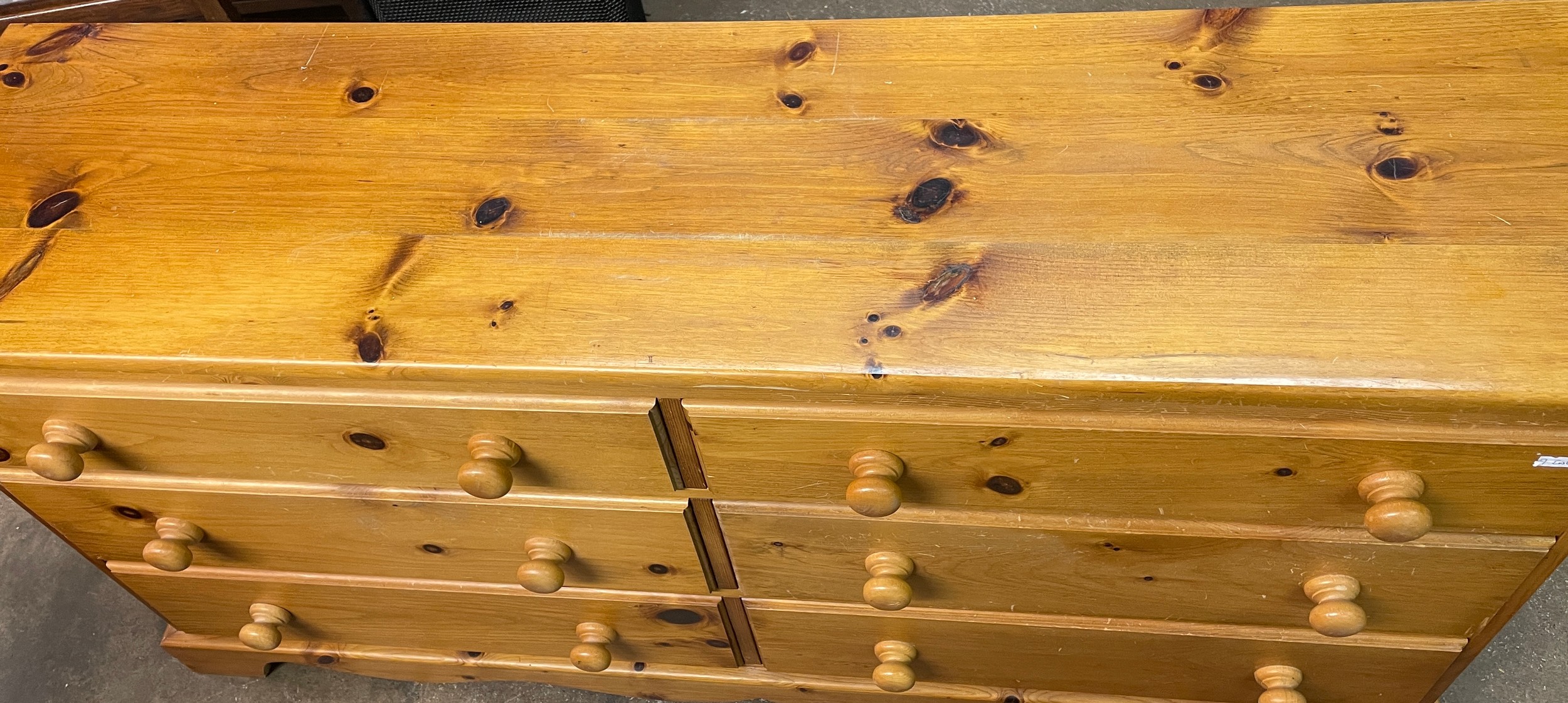 PINE SIX DRAWER DRESSING CHEST WITH MIRROR