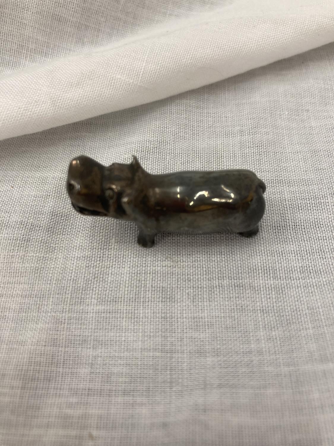 A MARKED 925 SILVER HIPPO - LENGTH 4CM, HEIGHT 1.5CM