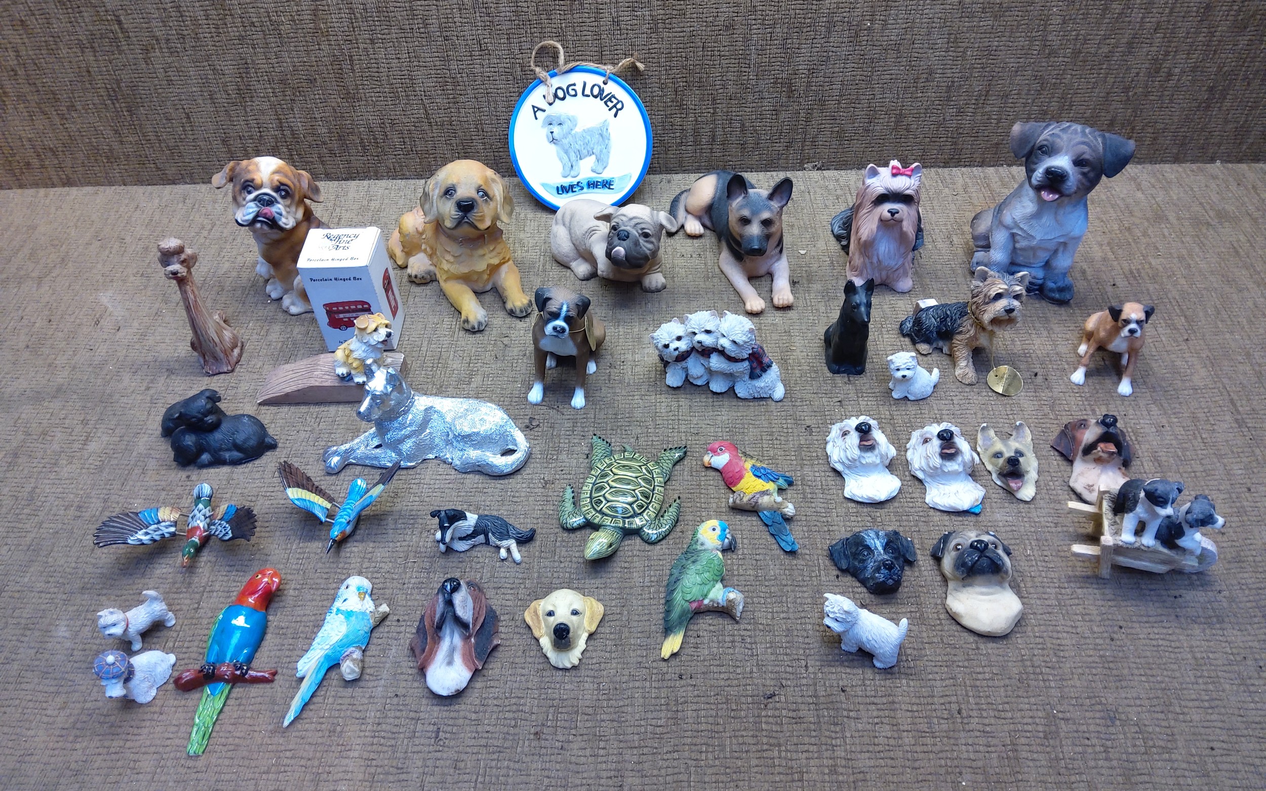 A collection of decorative dog statues.