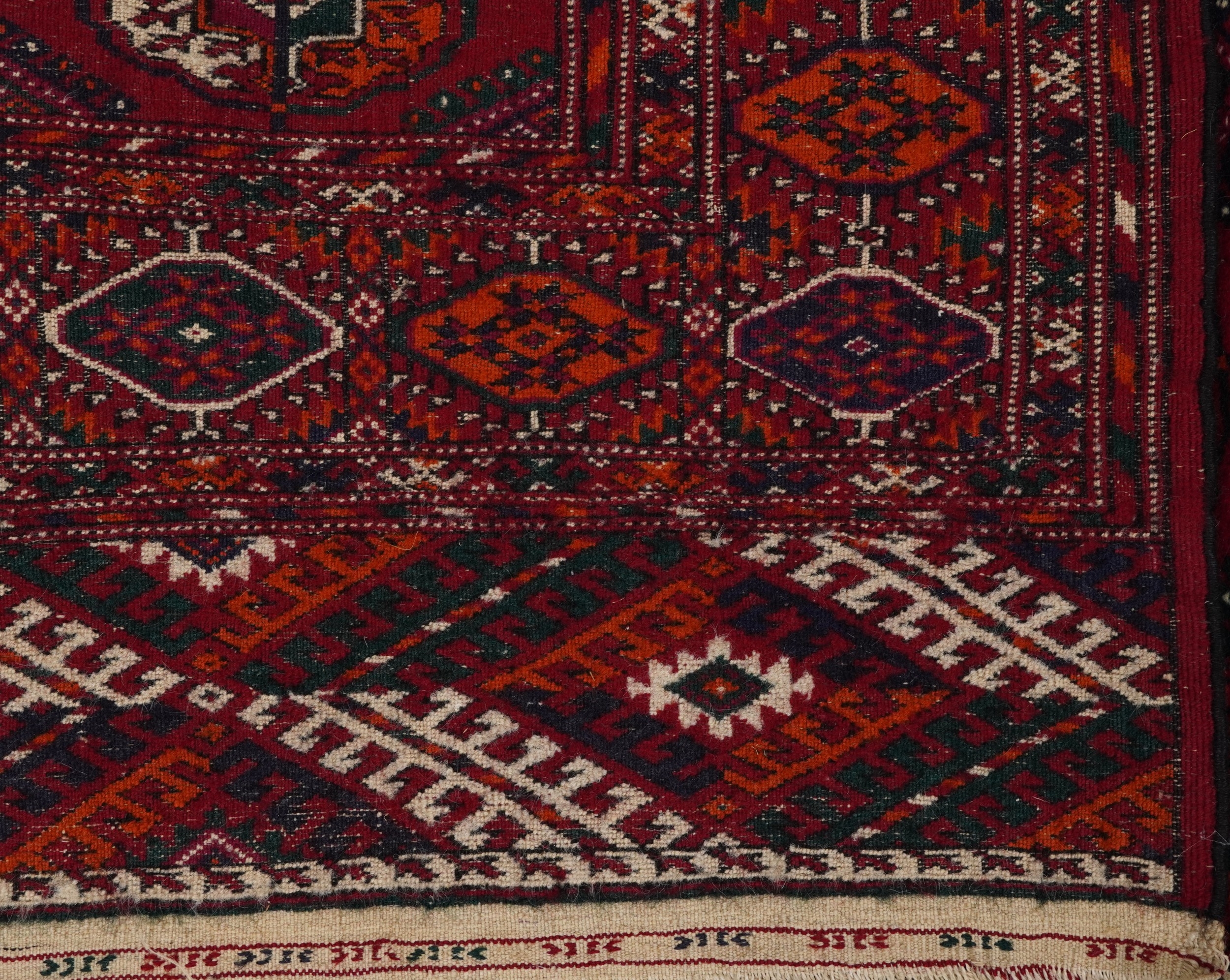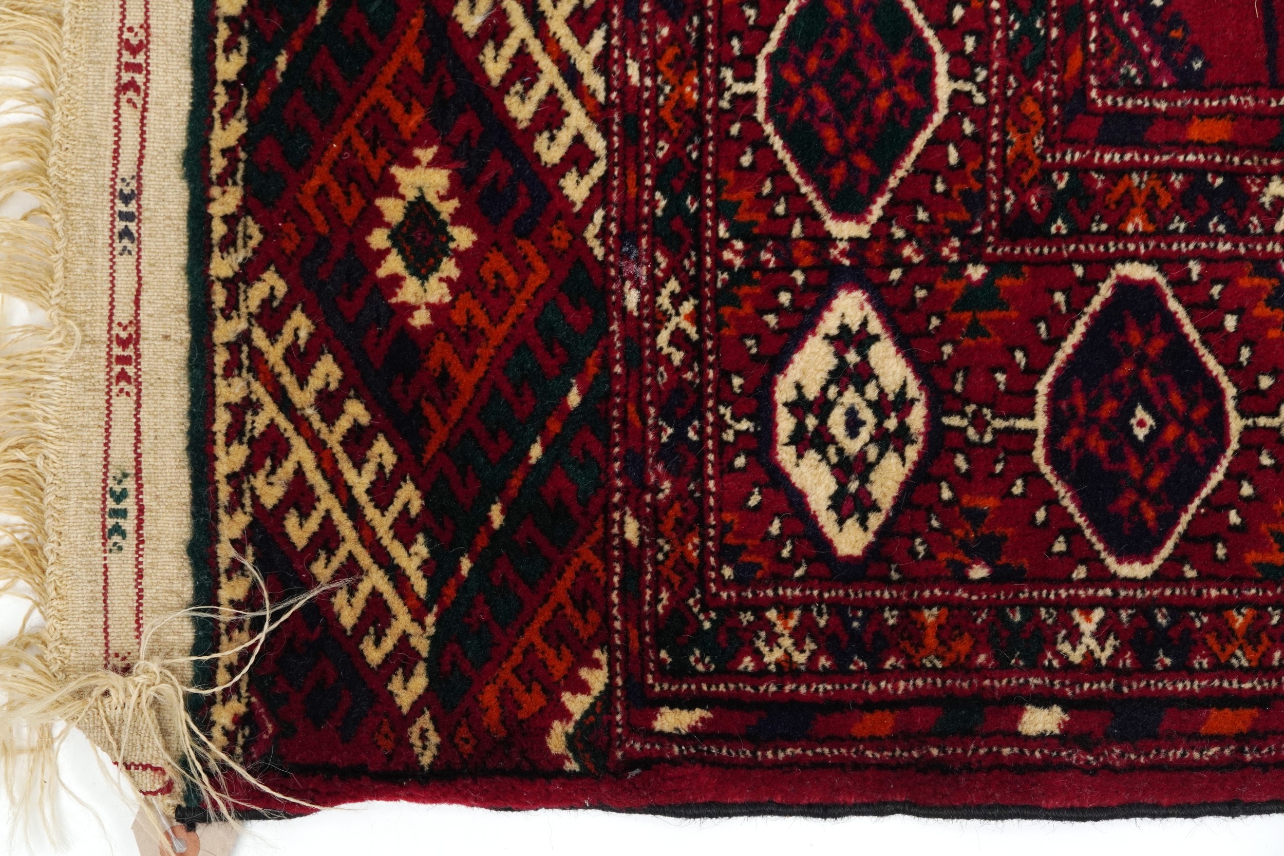 A Turkmen Tekke rug, late 20th century, the red field with three central rows of guls within a complementary border, 190cm x 112cm.