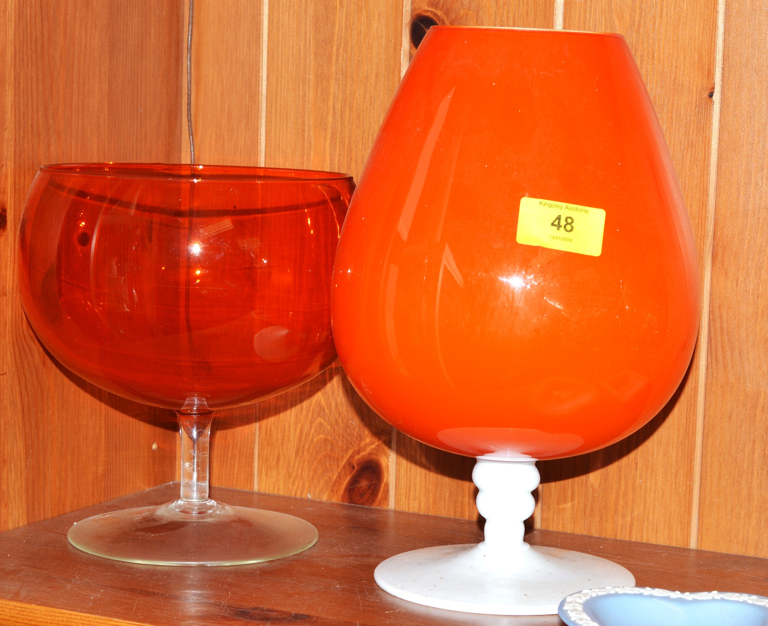 Two Vintage Over-Sized Glass Goblets in Orange