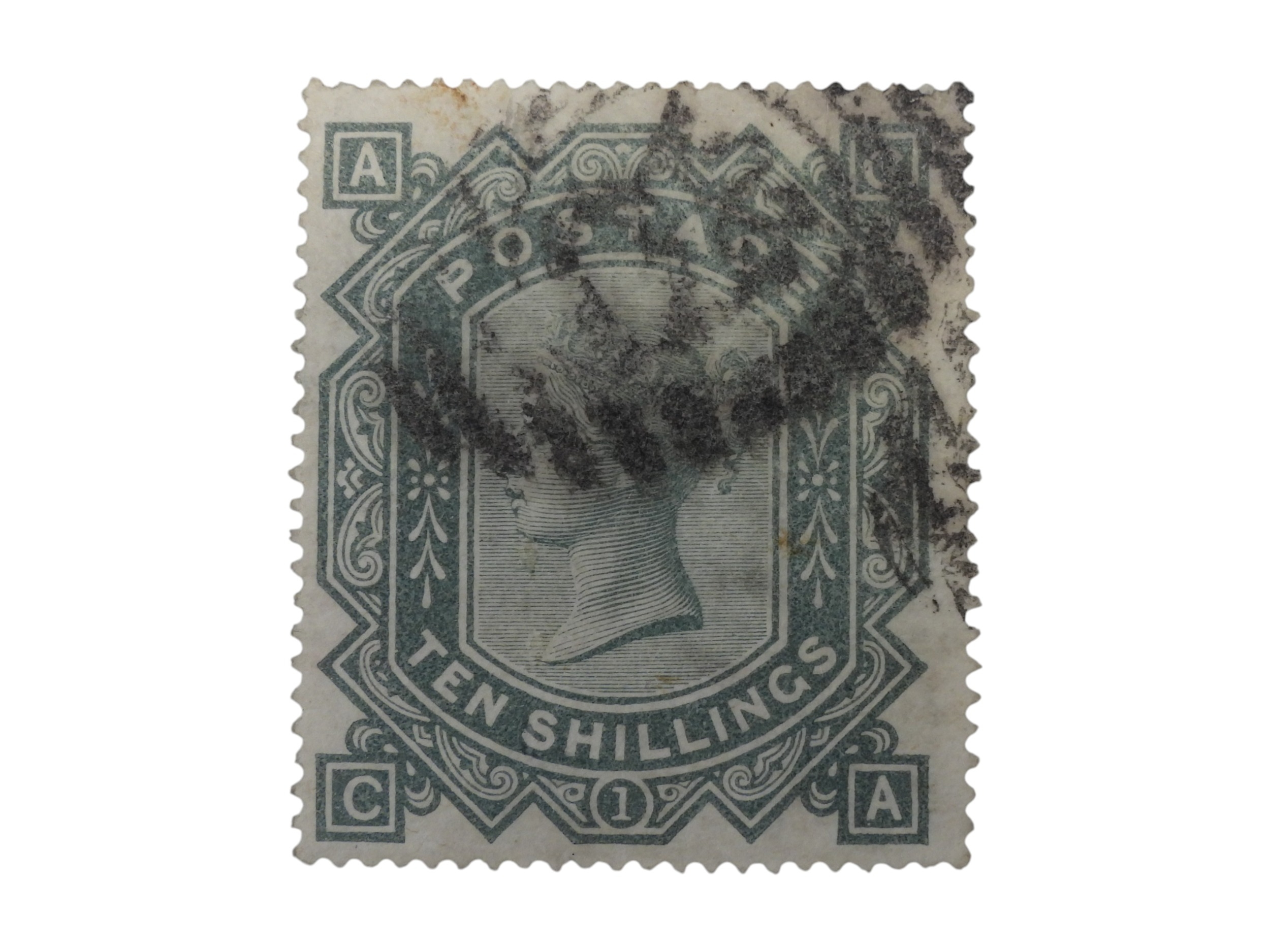 Great Britain 1878 10/- Greenish Gray With Maltese cross Watermark. Fine used Cat £2250