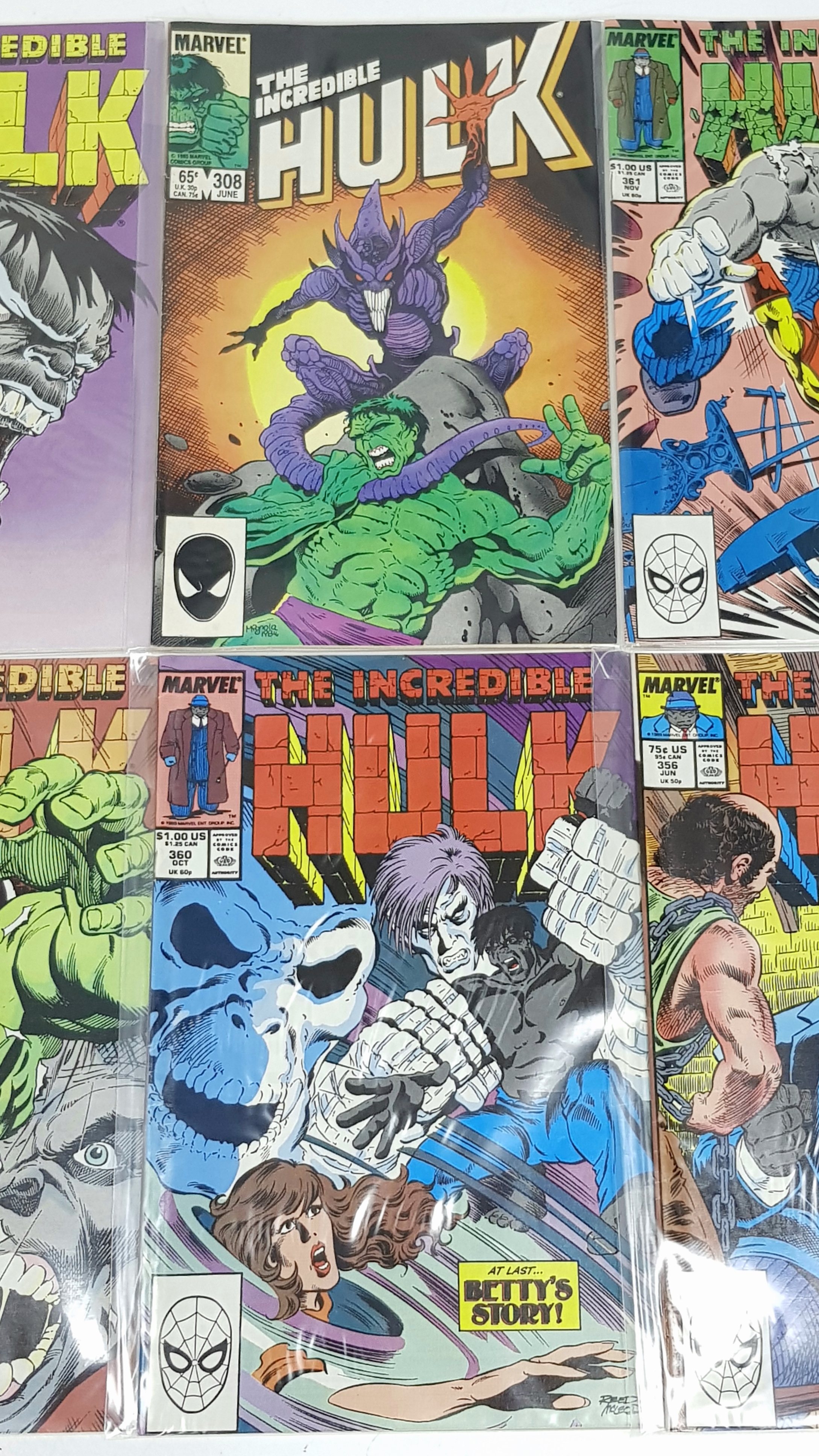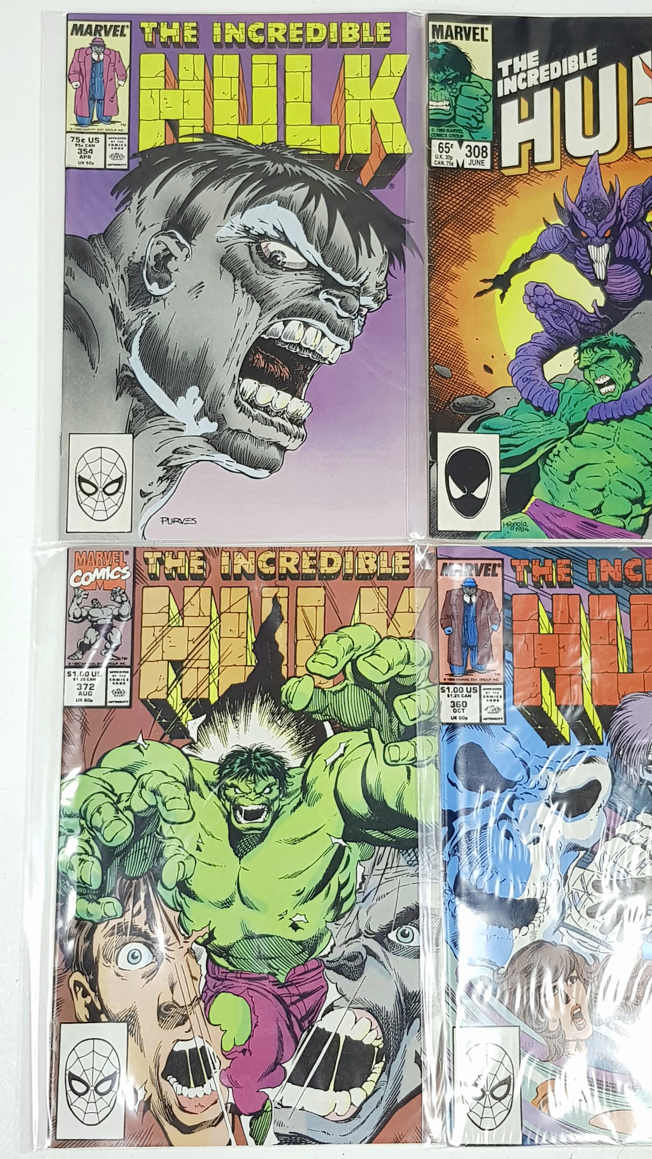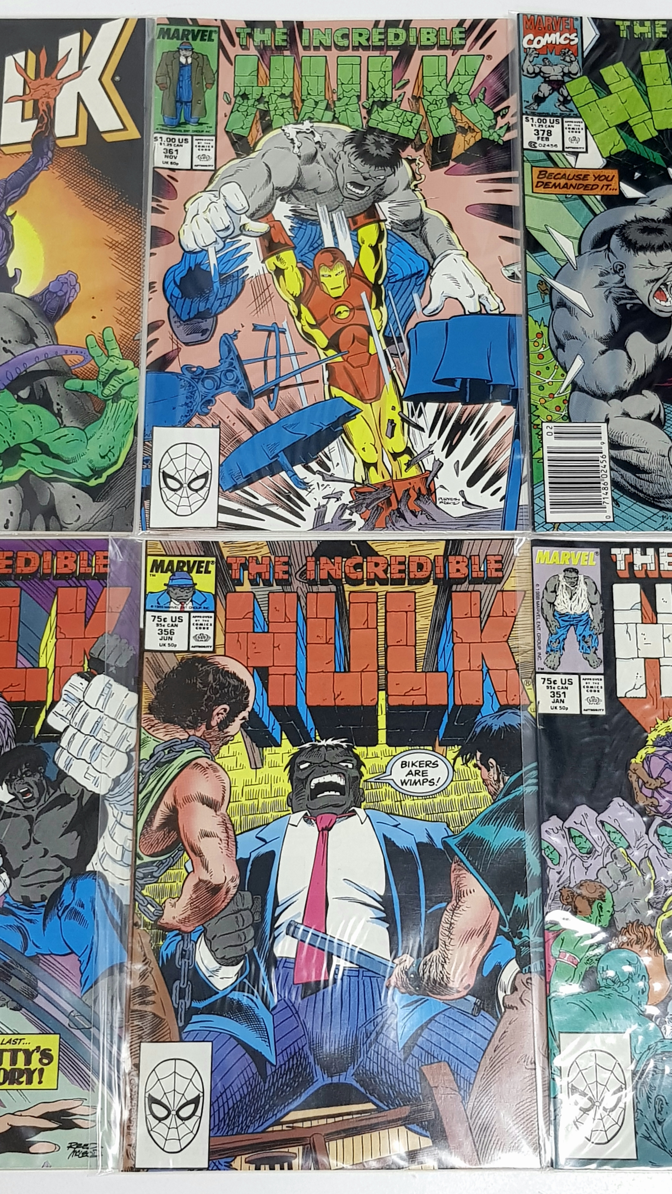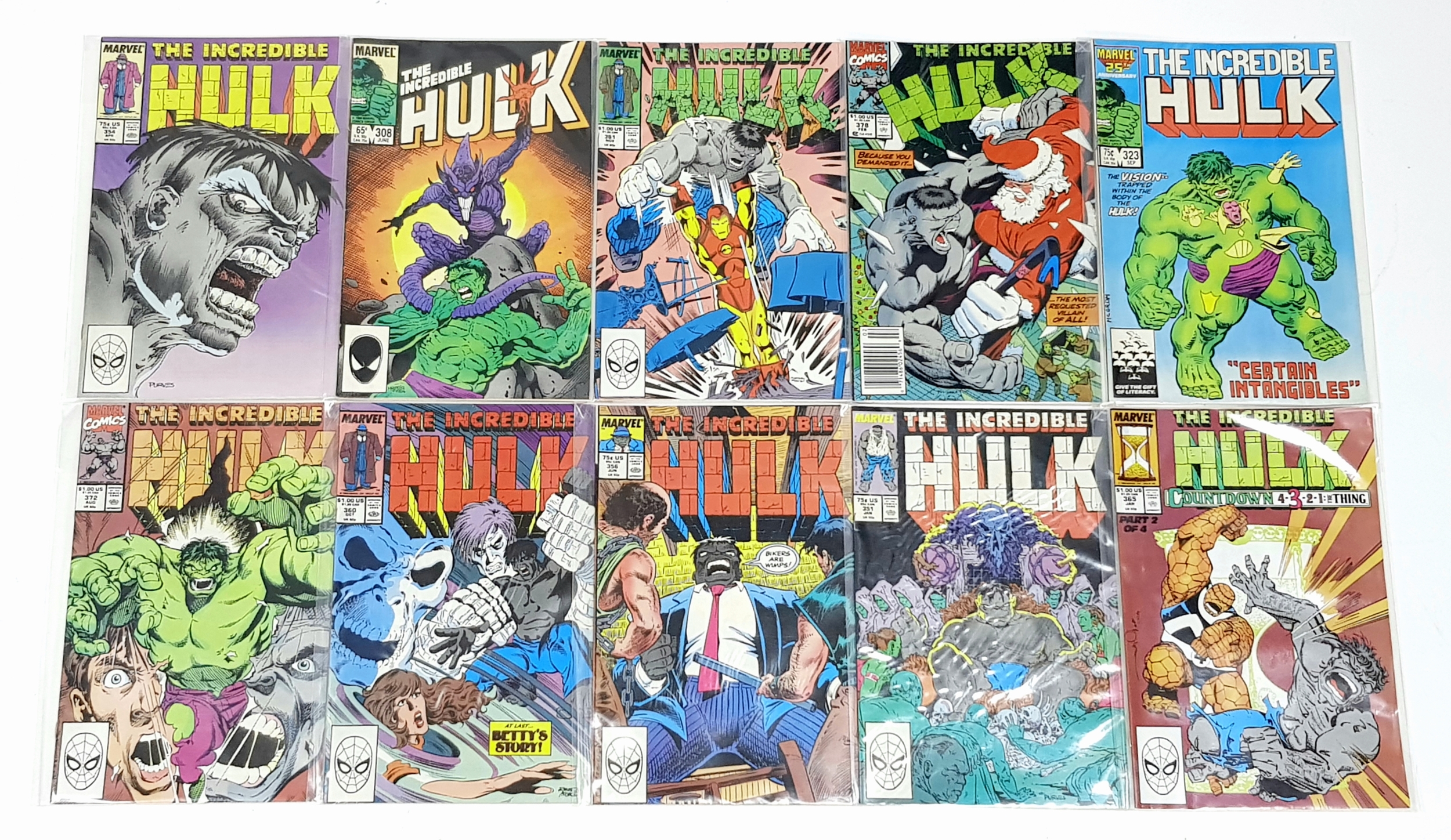 Ten Marvel Incredible Hulk Comics - Most Being in Very Fine to Very Fine Plus Grade. All individually wrapped in plastic. Please refer to photos for finer details.