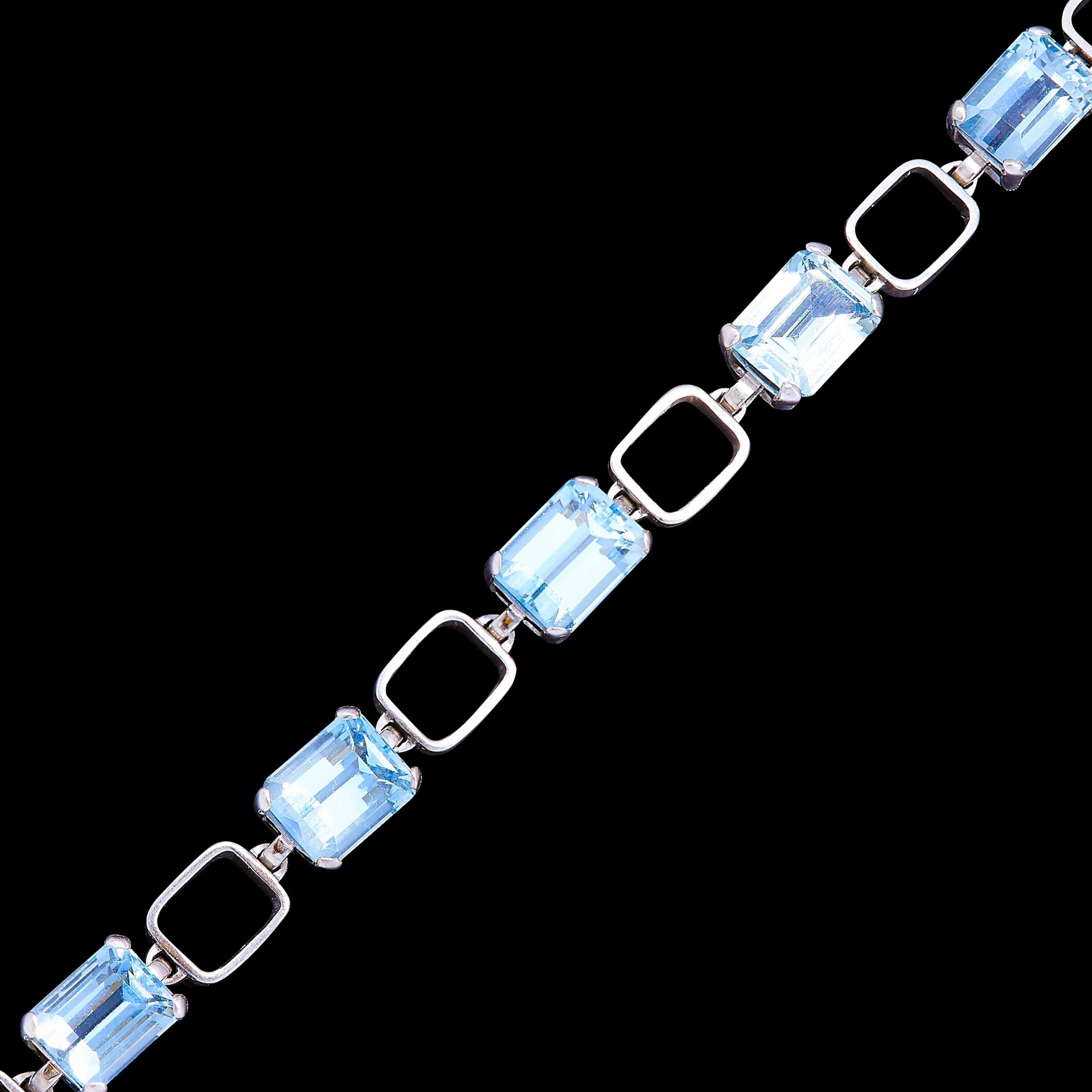 AQUAMARINE LINK BRACELET, in 18 ct. white gold. Set with 7 aquamarines totalling approx. 26.6 ct. L. 19.5 cm. 30.9 grams.
