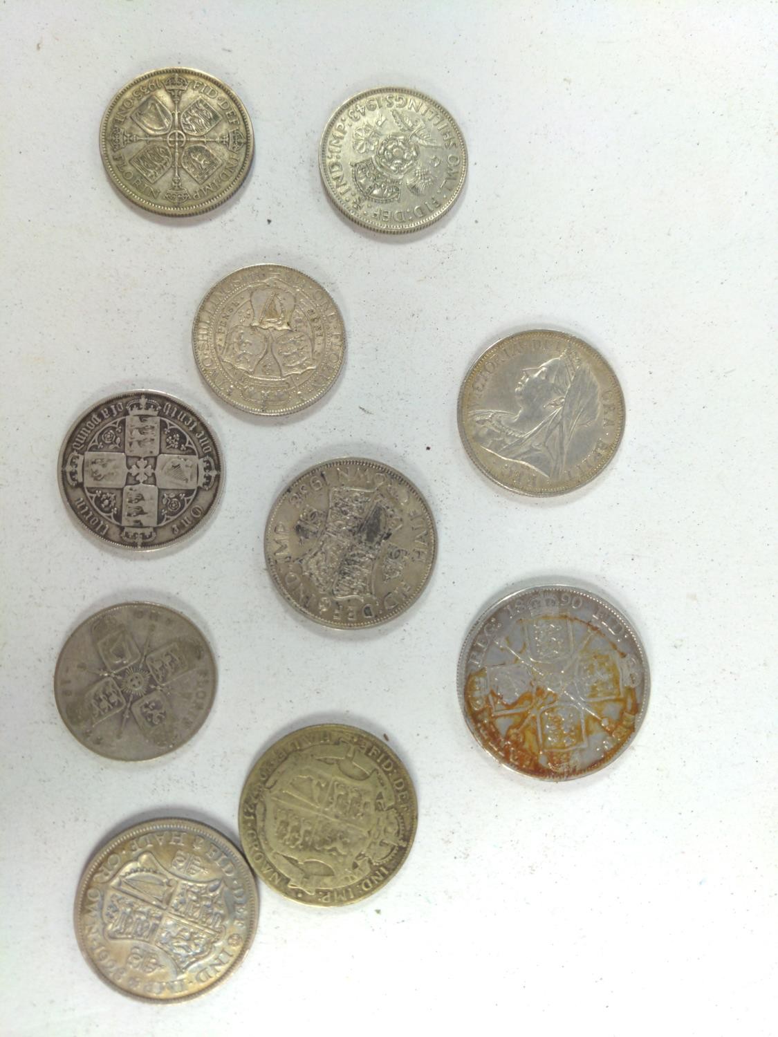 Tobacco tin containing Victorian and later silver coins, gross weight of coins 134 grams