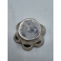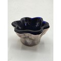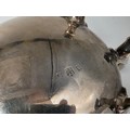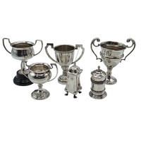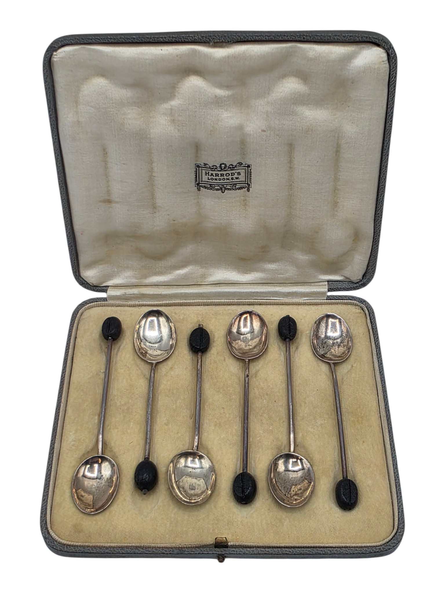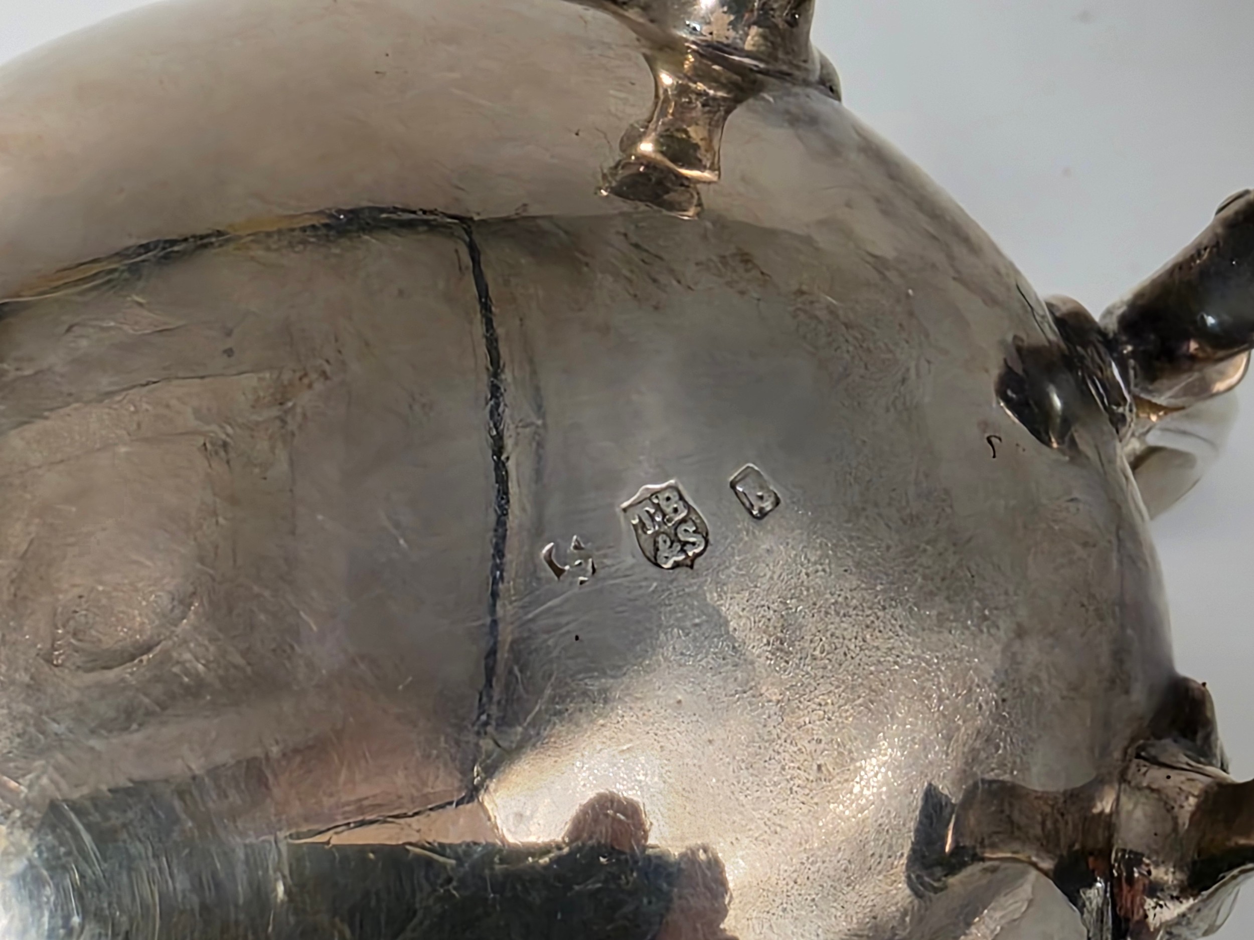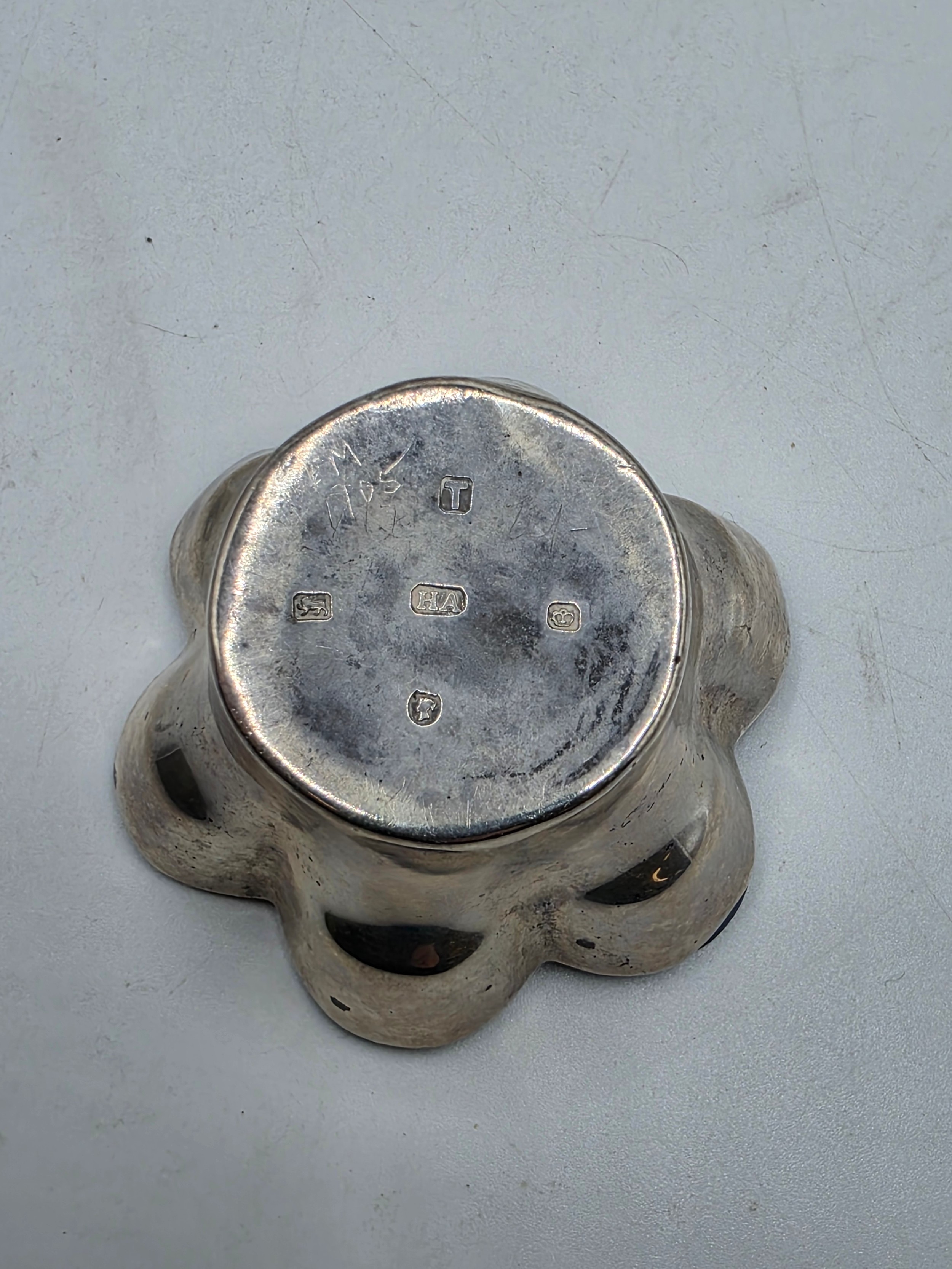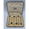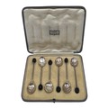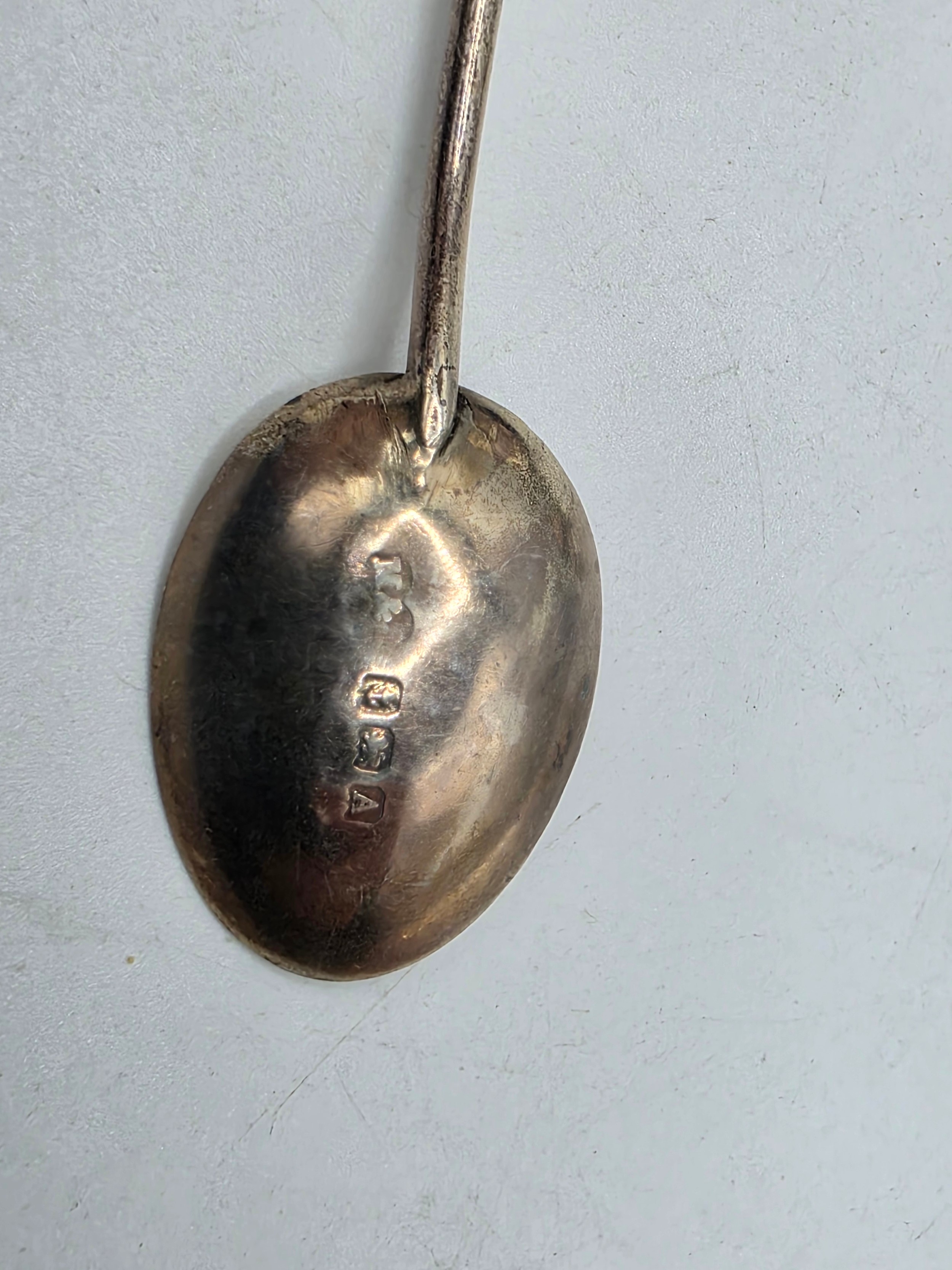 A boxed set of six sterling silver coffee spoons with finials, a pair of Victorian silver sugar tongs, silver salts with glass liner and a white metal sauce boat. Total hallmarked sterling items 66g.