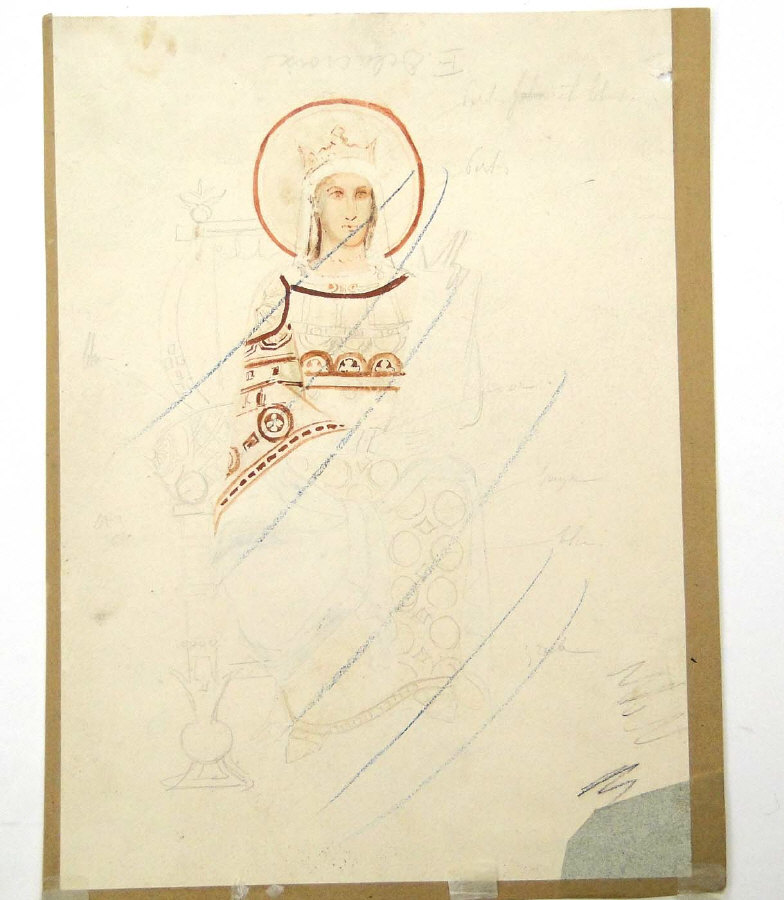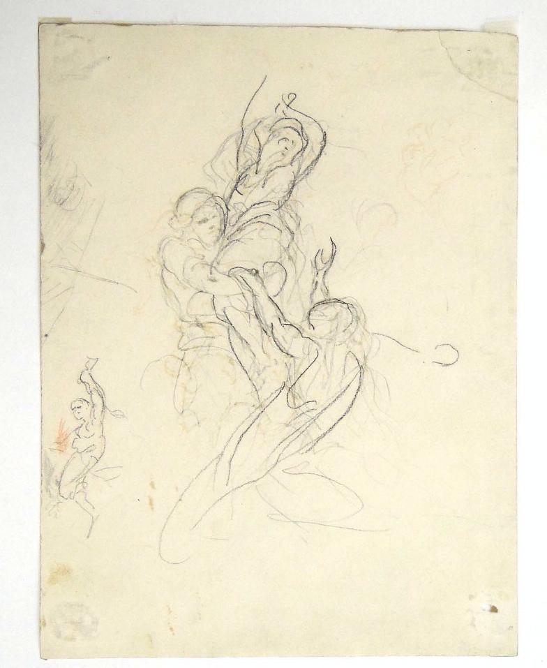 E. Delacroi? - Double sided ecclesiastical study in pen and ink, with watercolour highlights, titled to the mount and unframed, 28cm x 21cm