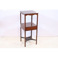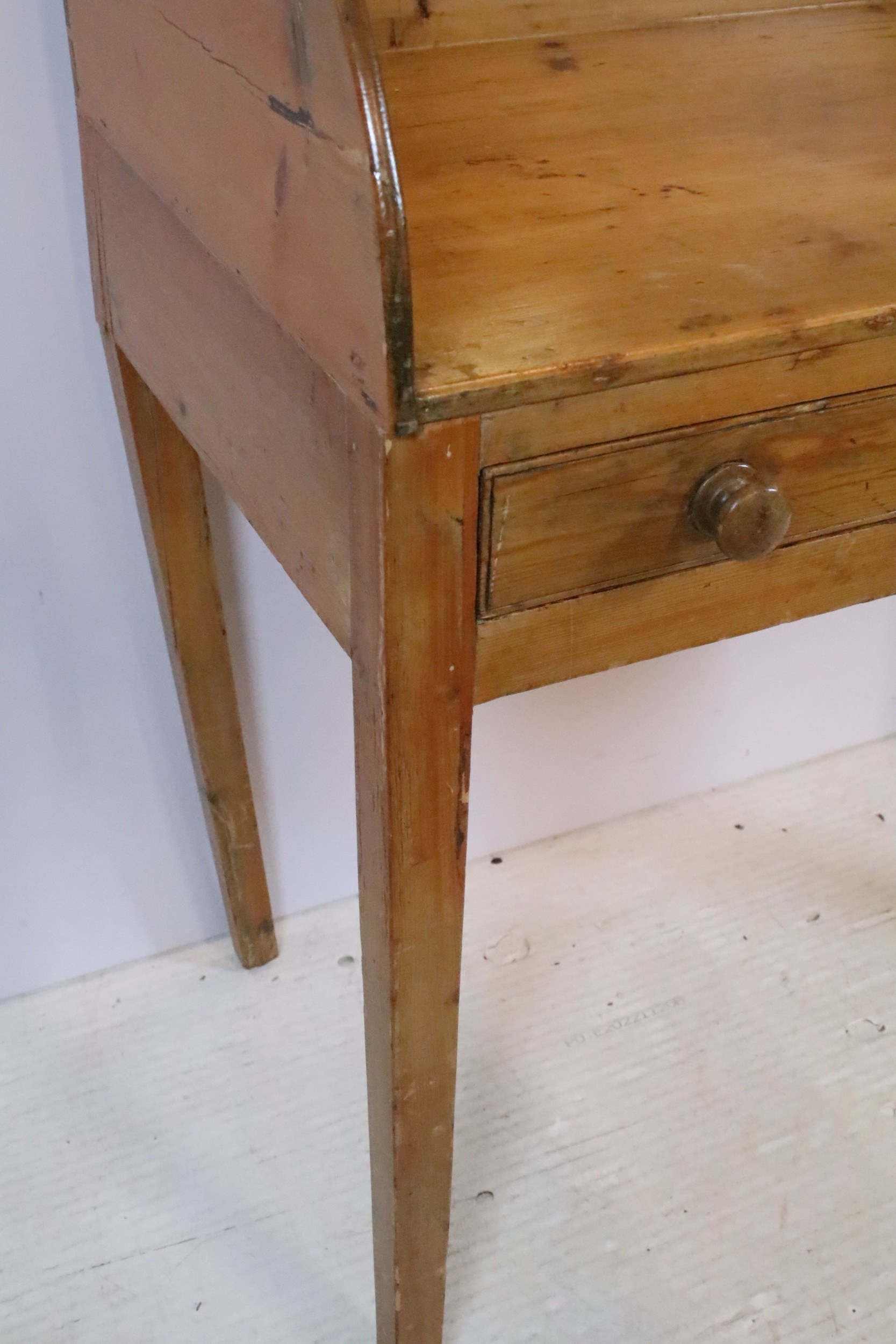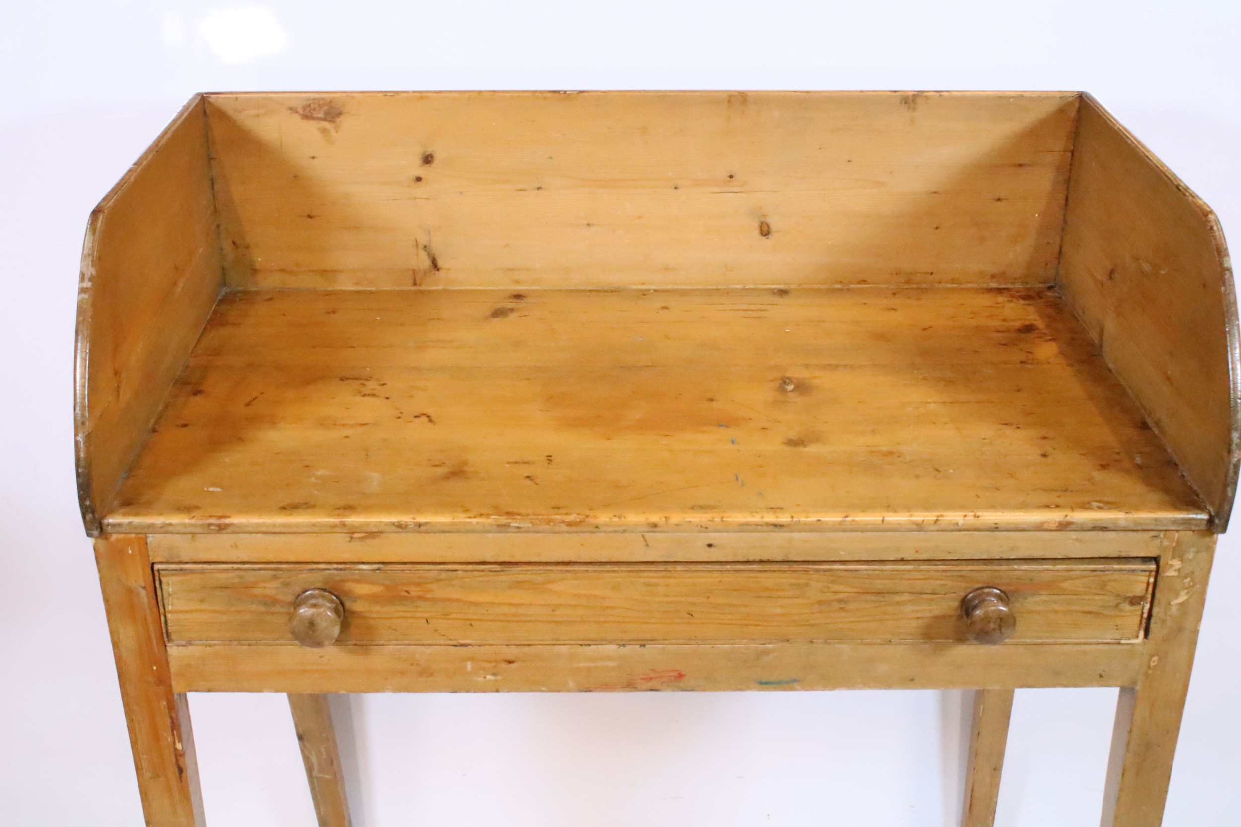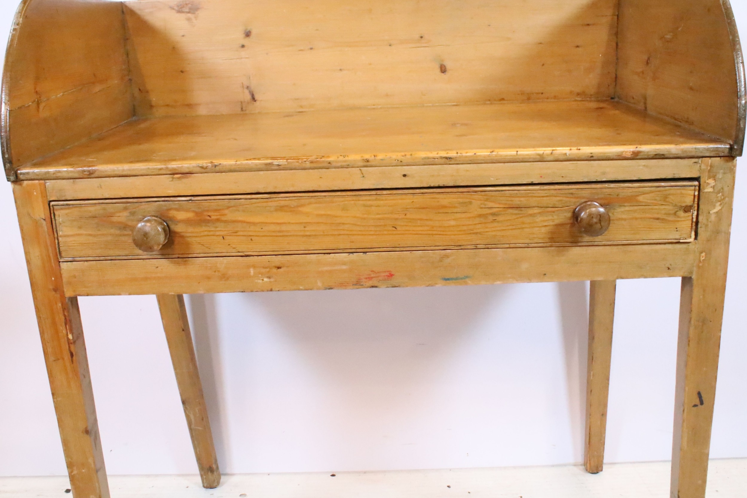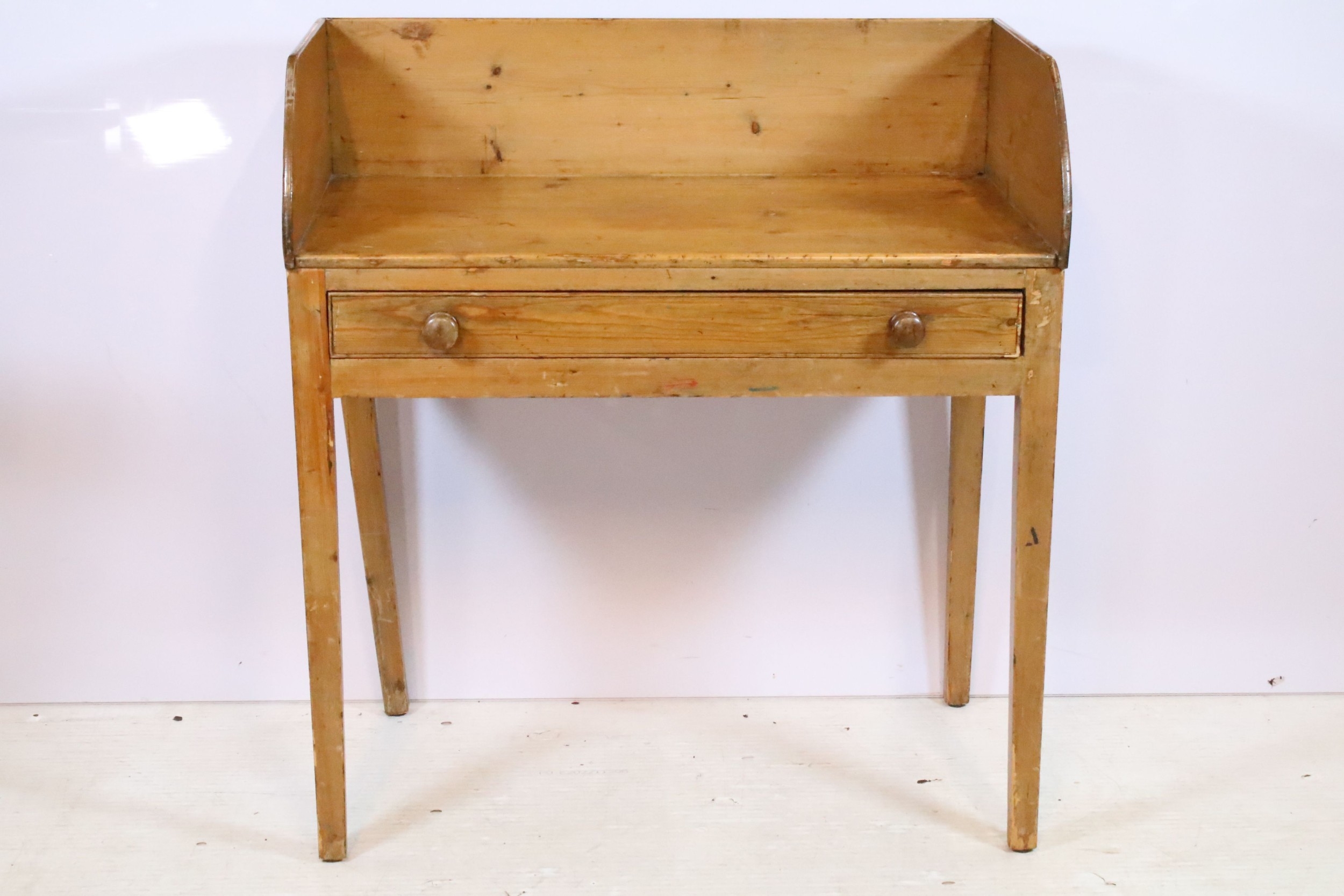 Victorian pine wash-stand, having three-quarter galleried back over two frieze drawers, raised on square tapering legs, one a/f, W 86cm x D 47cm x H 94cm