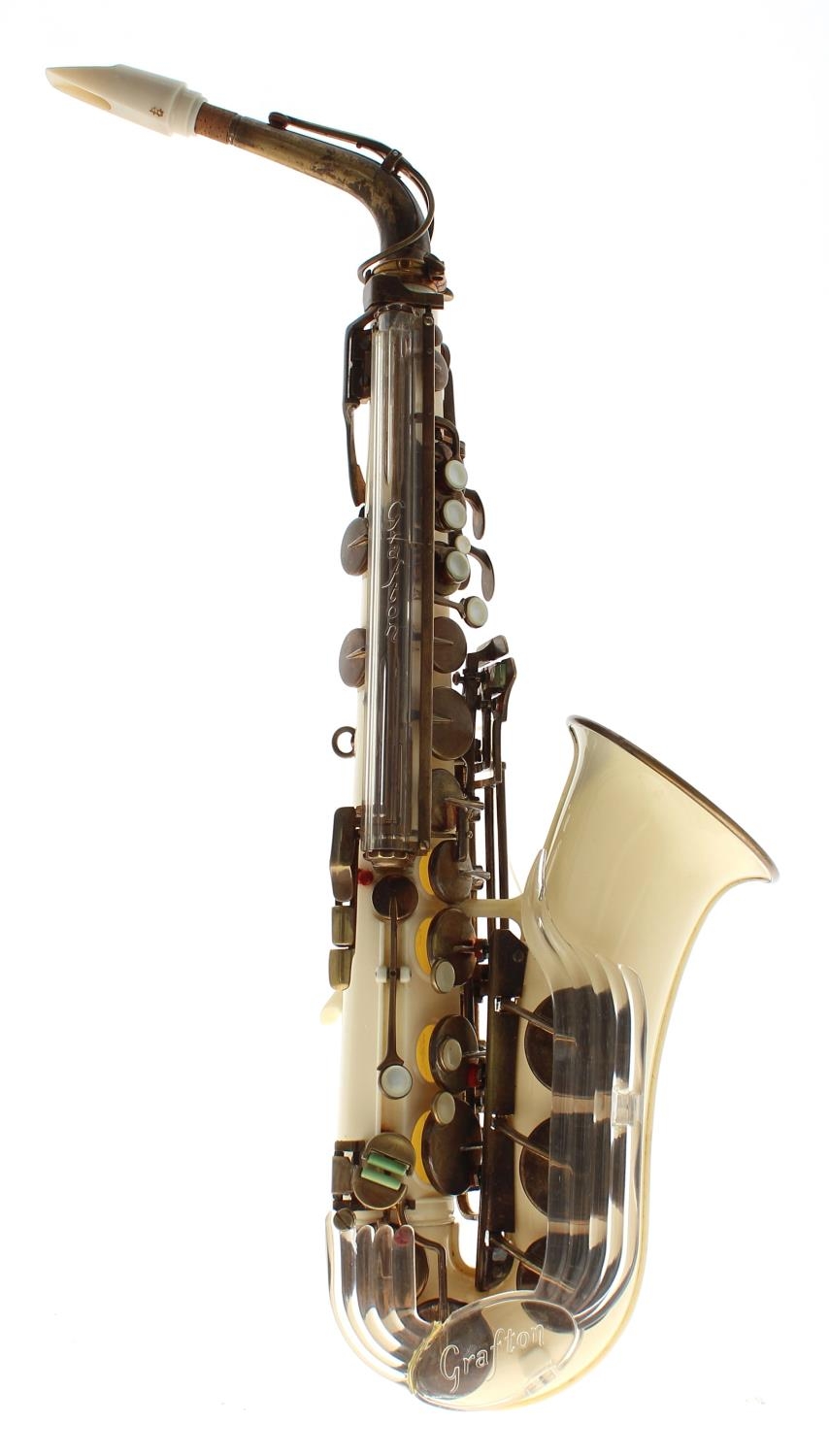 Good Grafton acrylic alto saxophone, inscribed on the keywork plastic guard John E. Dallas & Sons Ltd. Sole Distributors, ser. no. 10058, original Desman mouthpiece, crook, hard case