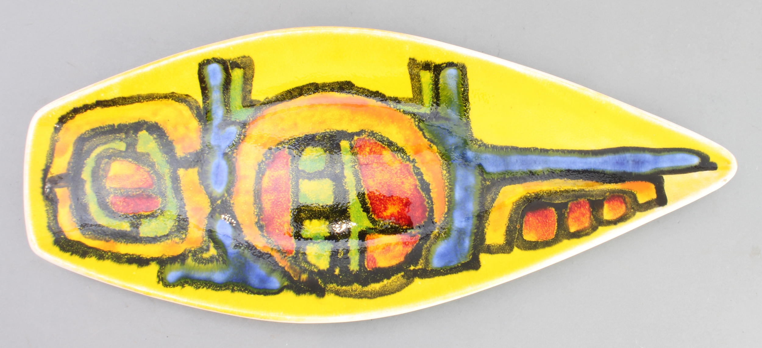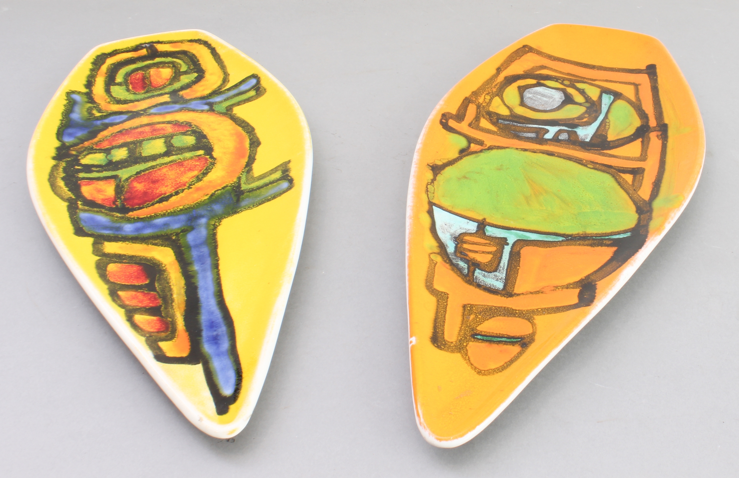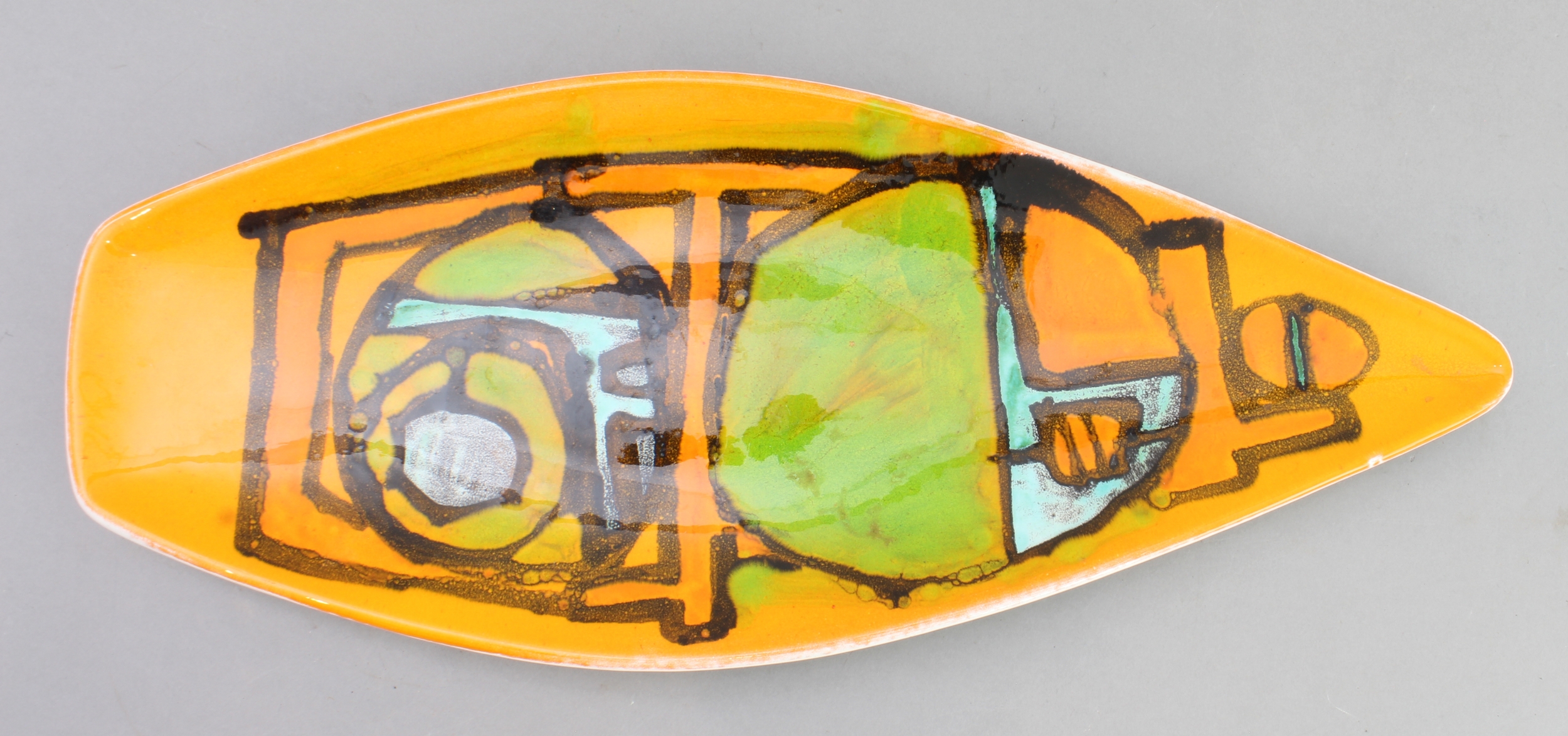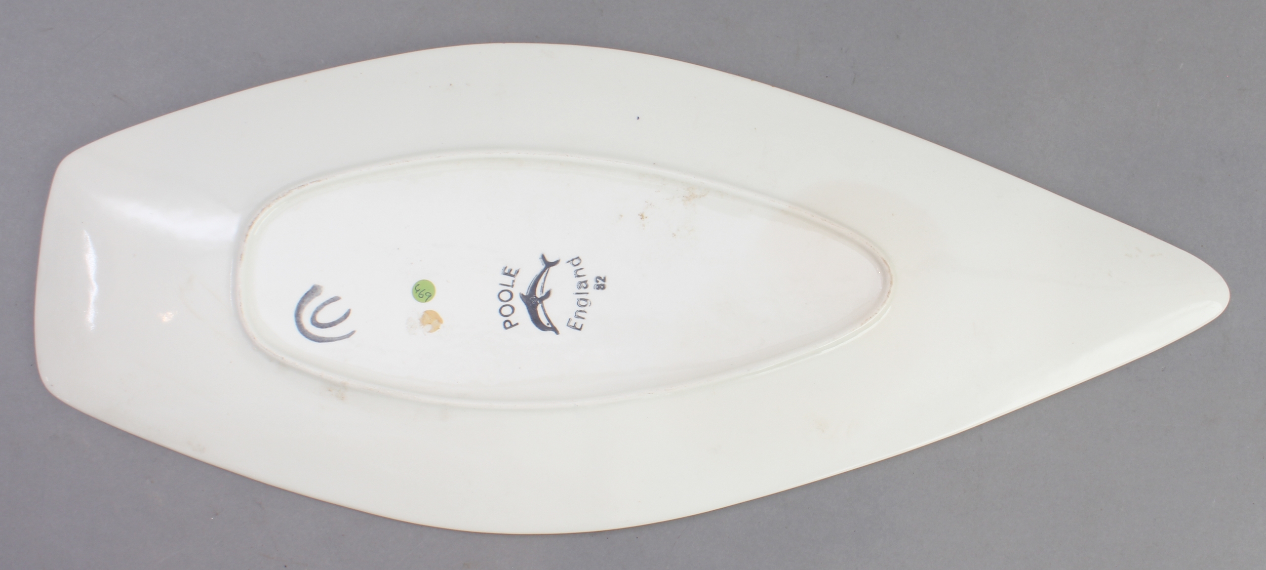 Two Poole Pottery spear dishes, both shape 82 and approx. 43 x 17.5 cm