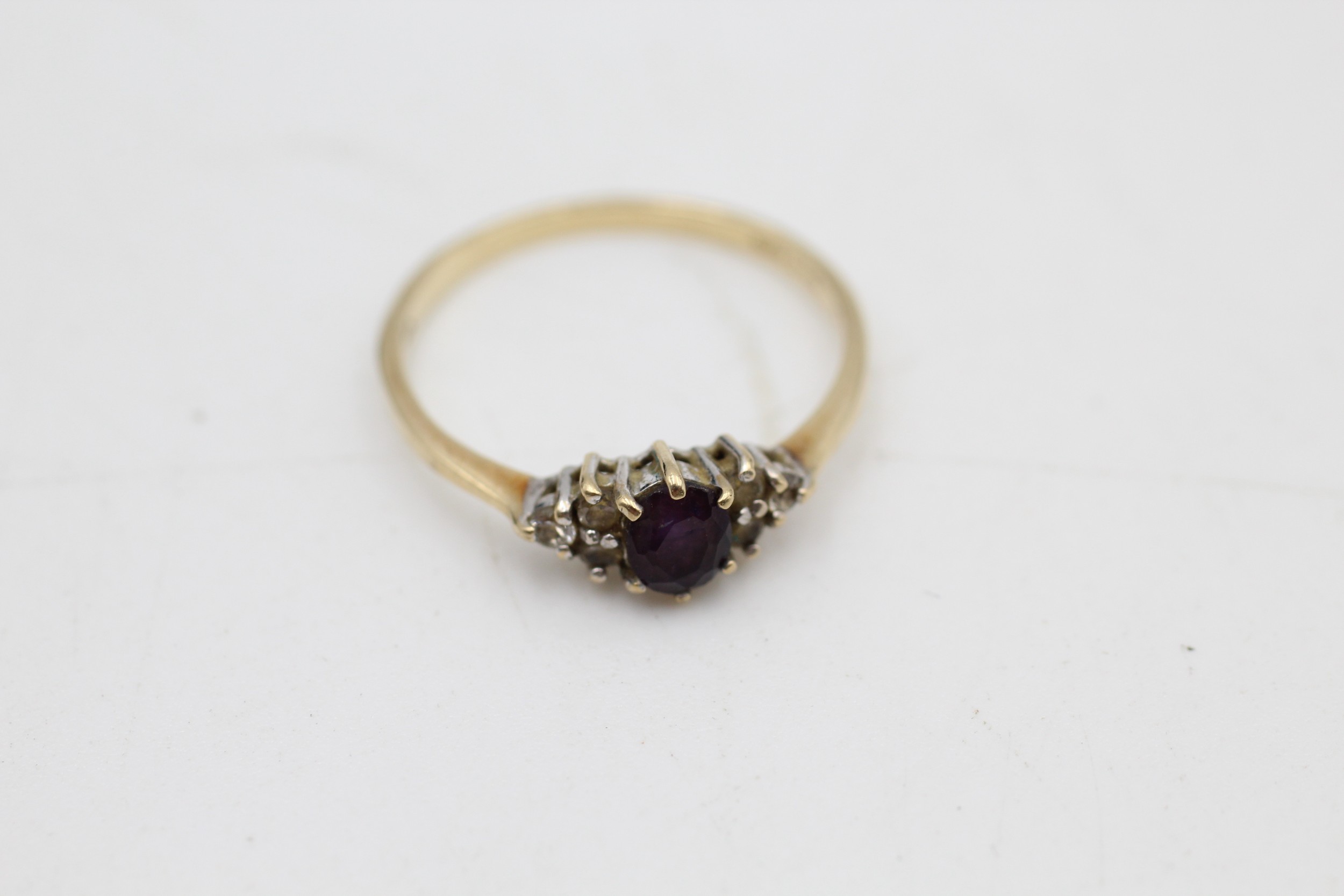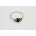 9ct gold garnet & clear gemstoe cluster ring (1.3g) SIZE O