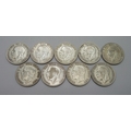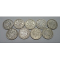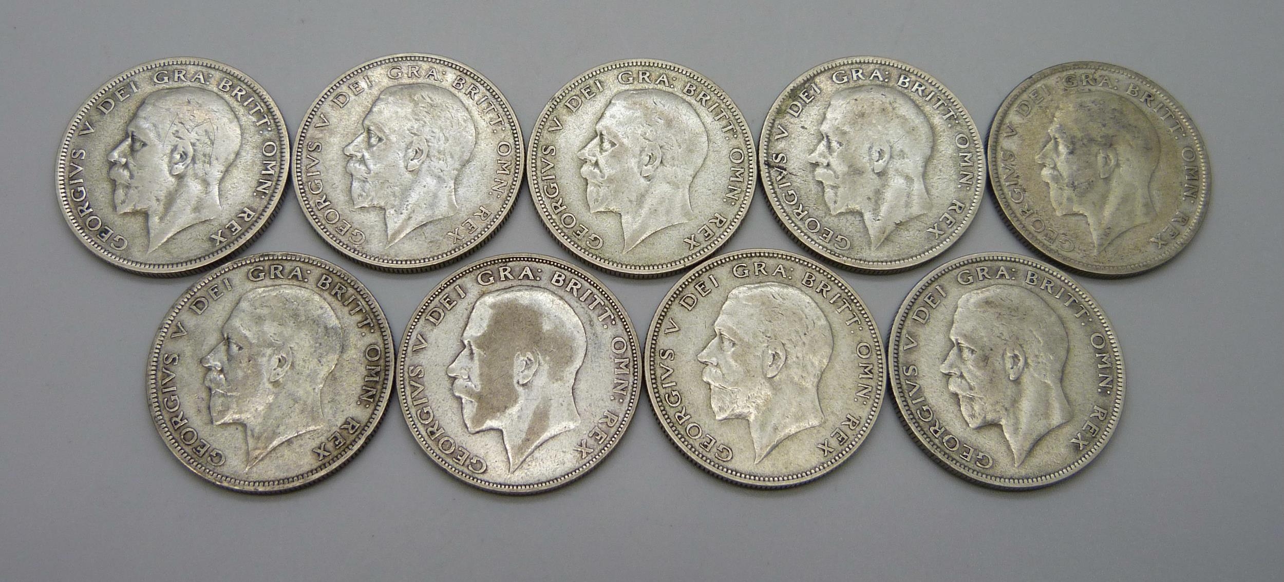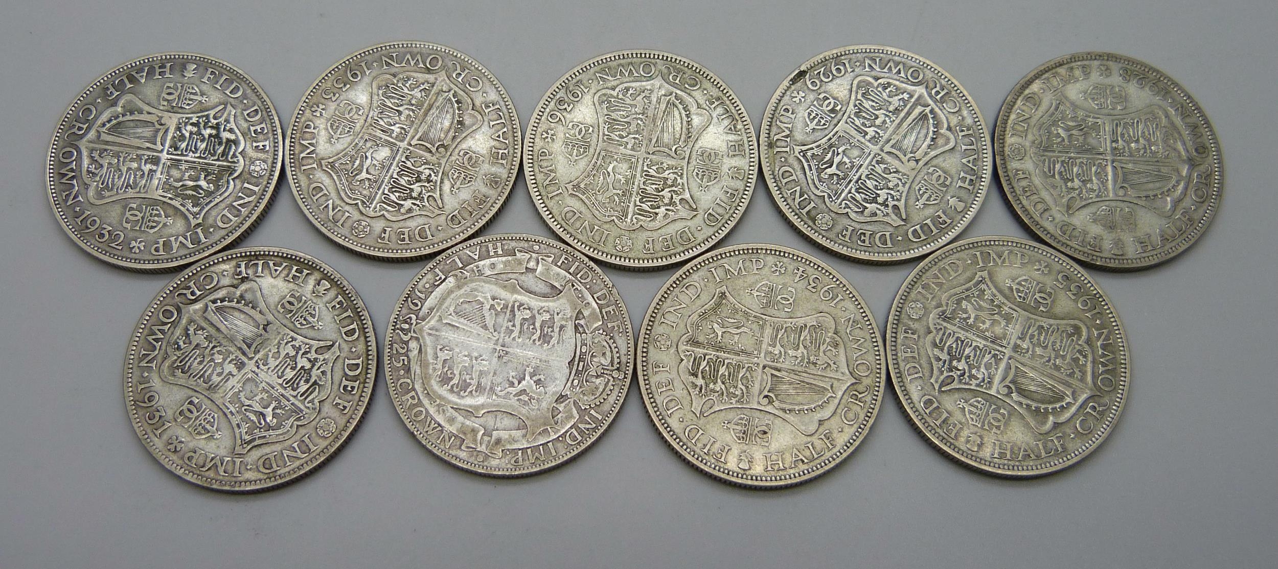Nine silver half-crowns including scarce 1925, 125.8g