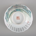 each bearing six character Daoguang seal marks to the base, decorated with pagodas in a mountainous landscape and bearing a long inscription, with shaped rims, 8cm high x 18cm diameter (2)