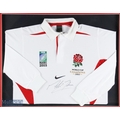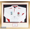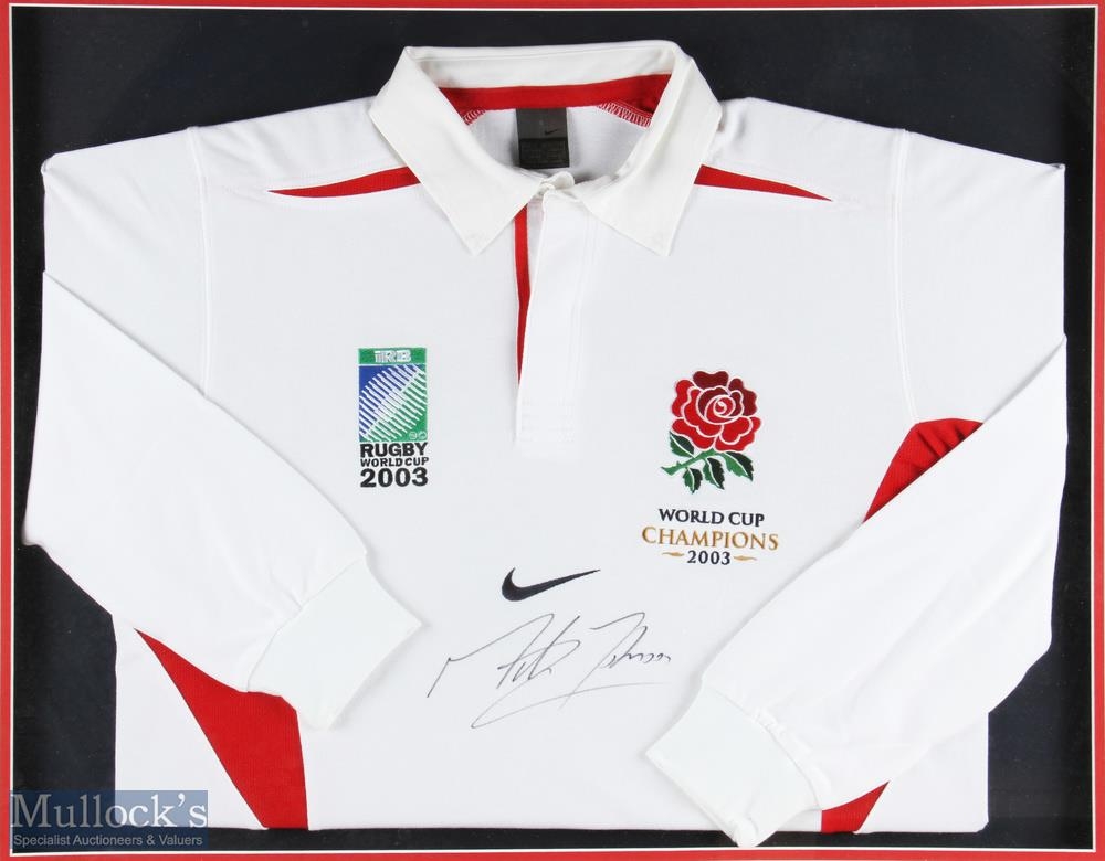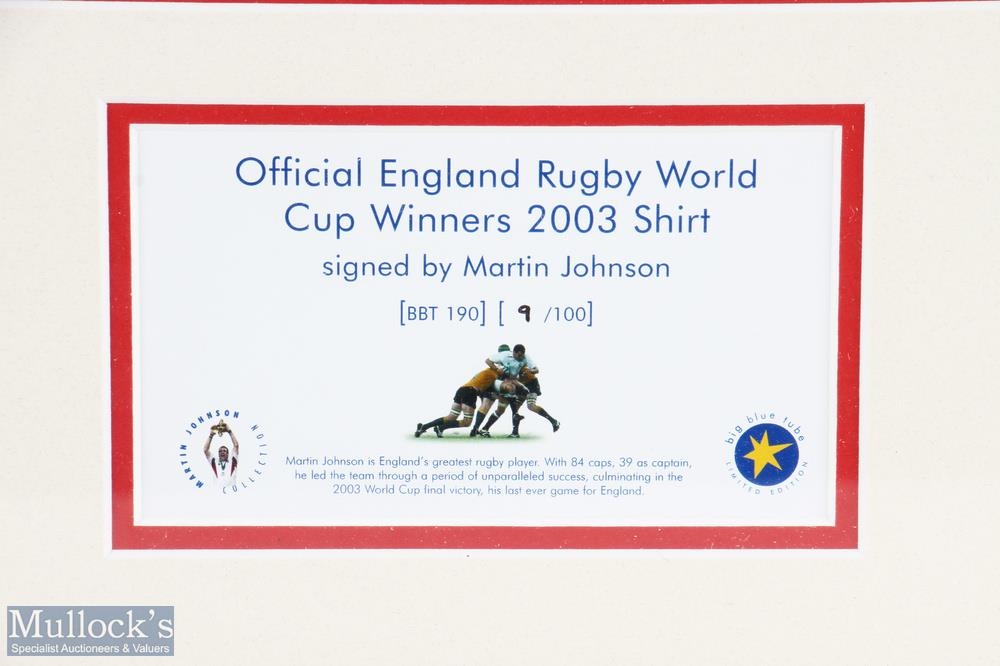 2003 England RWC Winners Official Signed Jersey: Martin Johnson Ltd Ed No. 9/100, framed and mounted under glass, in a quality frame size #89cm x 89cm