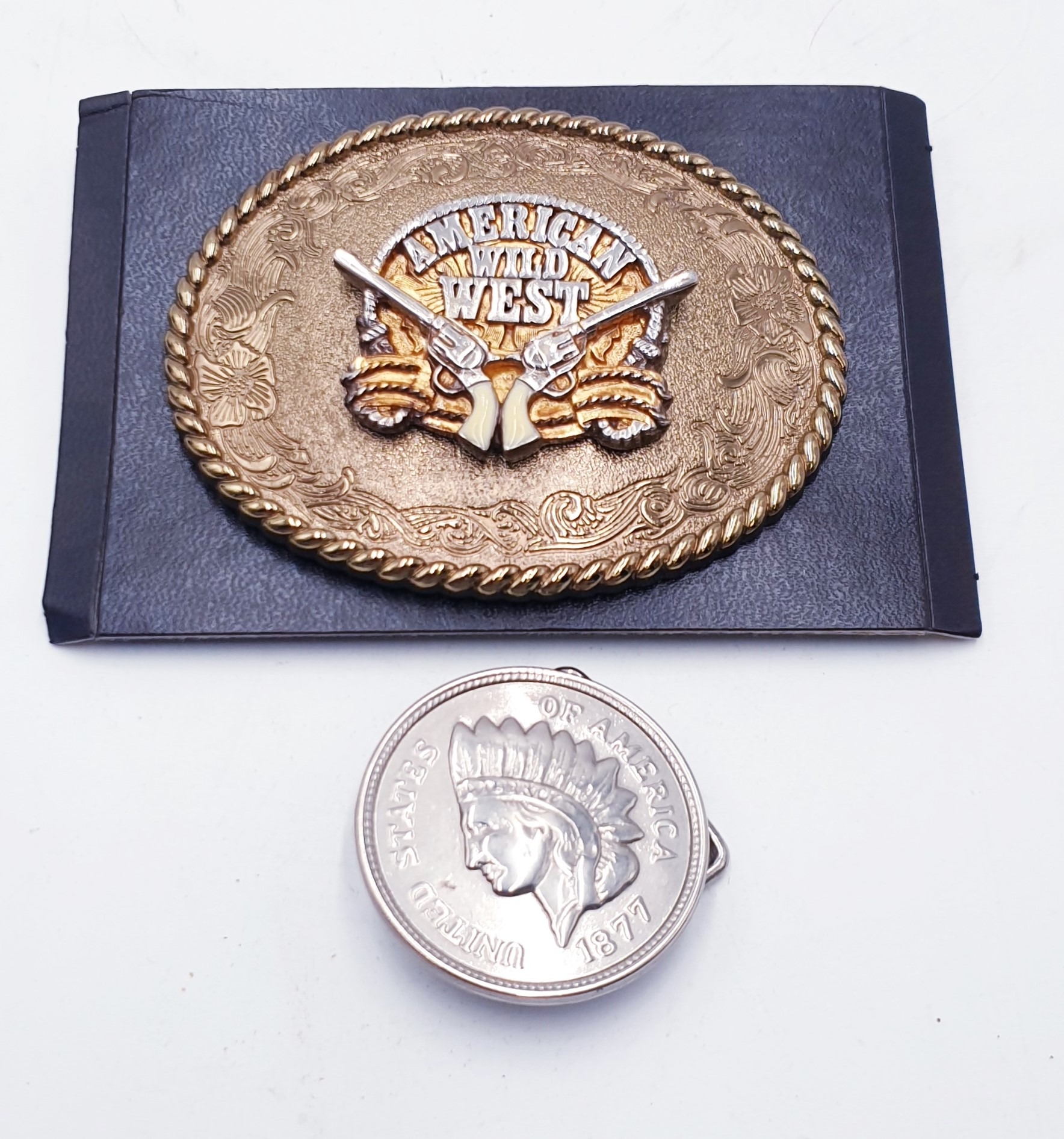 WILD WEST BELT BUCKLE By Raintree (1978) Plus U.S.A. 1877 INDIAN HEAD BELT BUCKLE