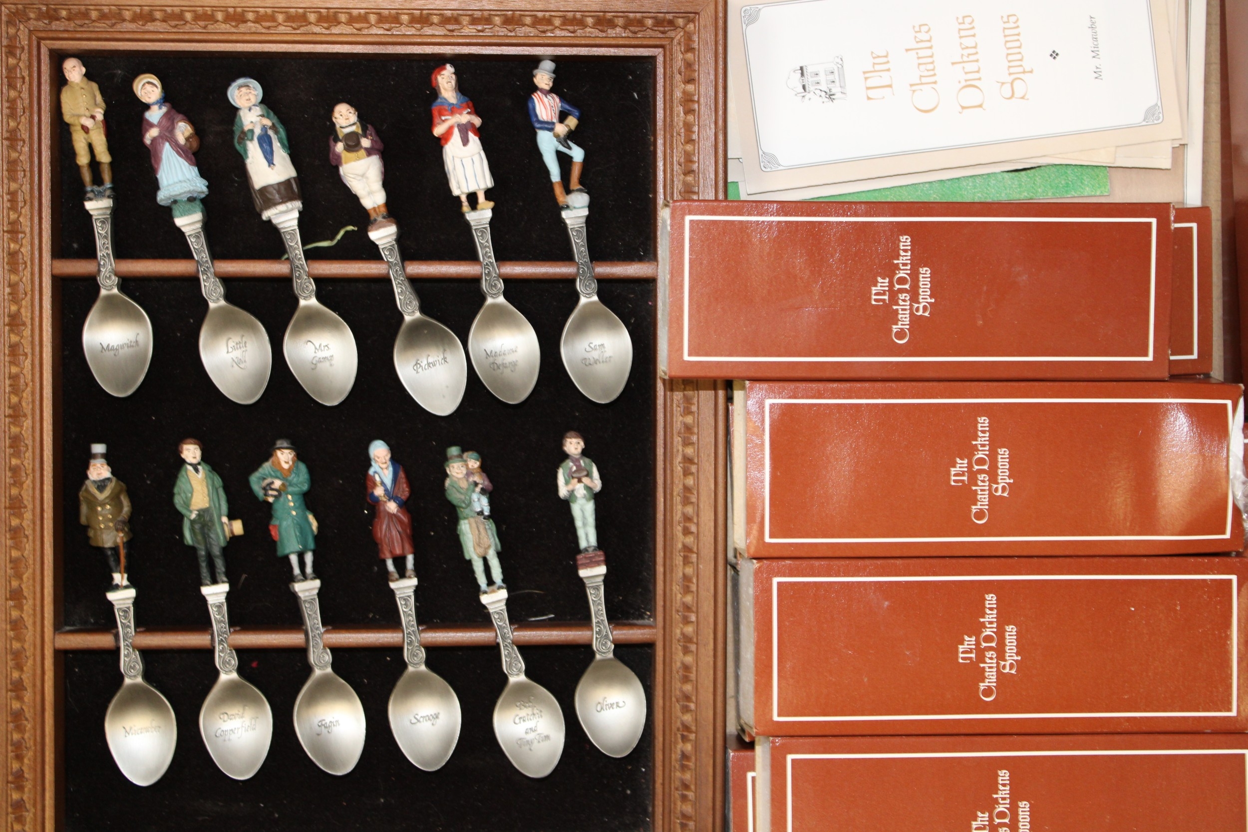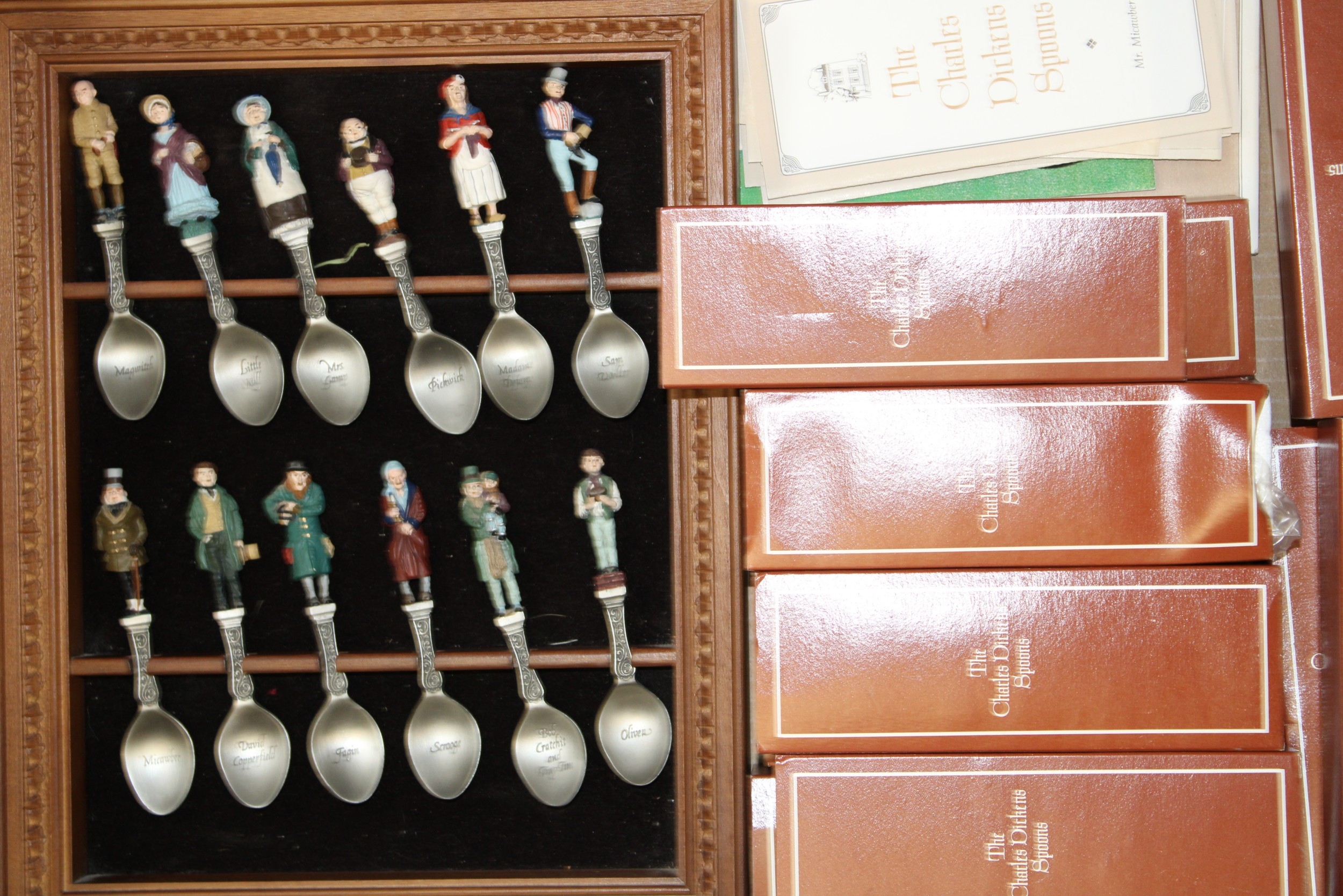 The Charles Dickens pewter spoons set by Franklin mint complete with display case.