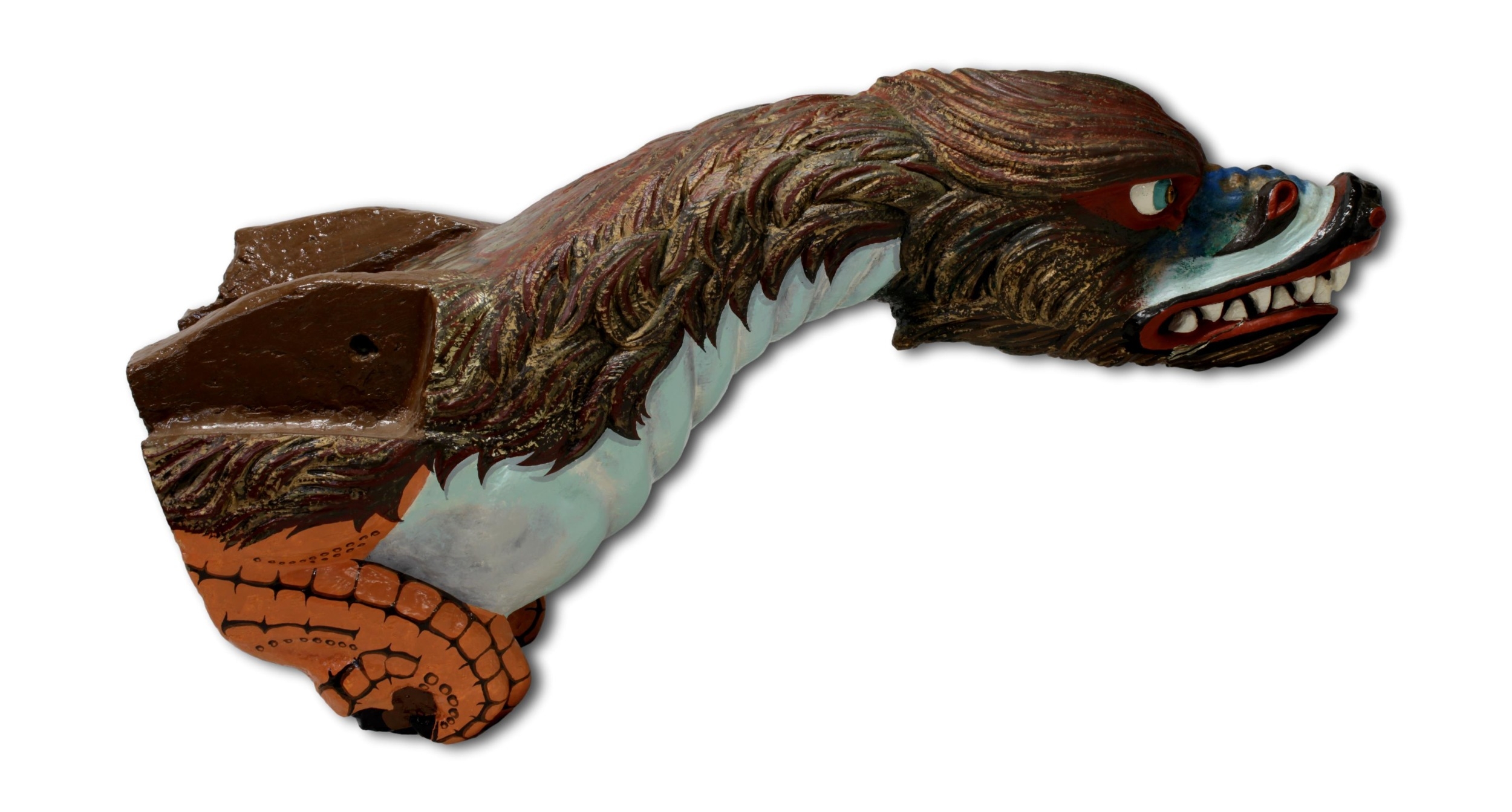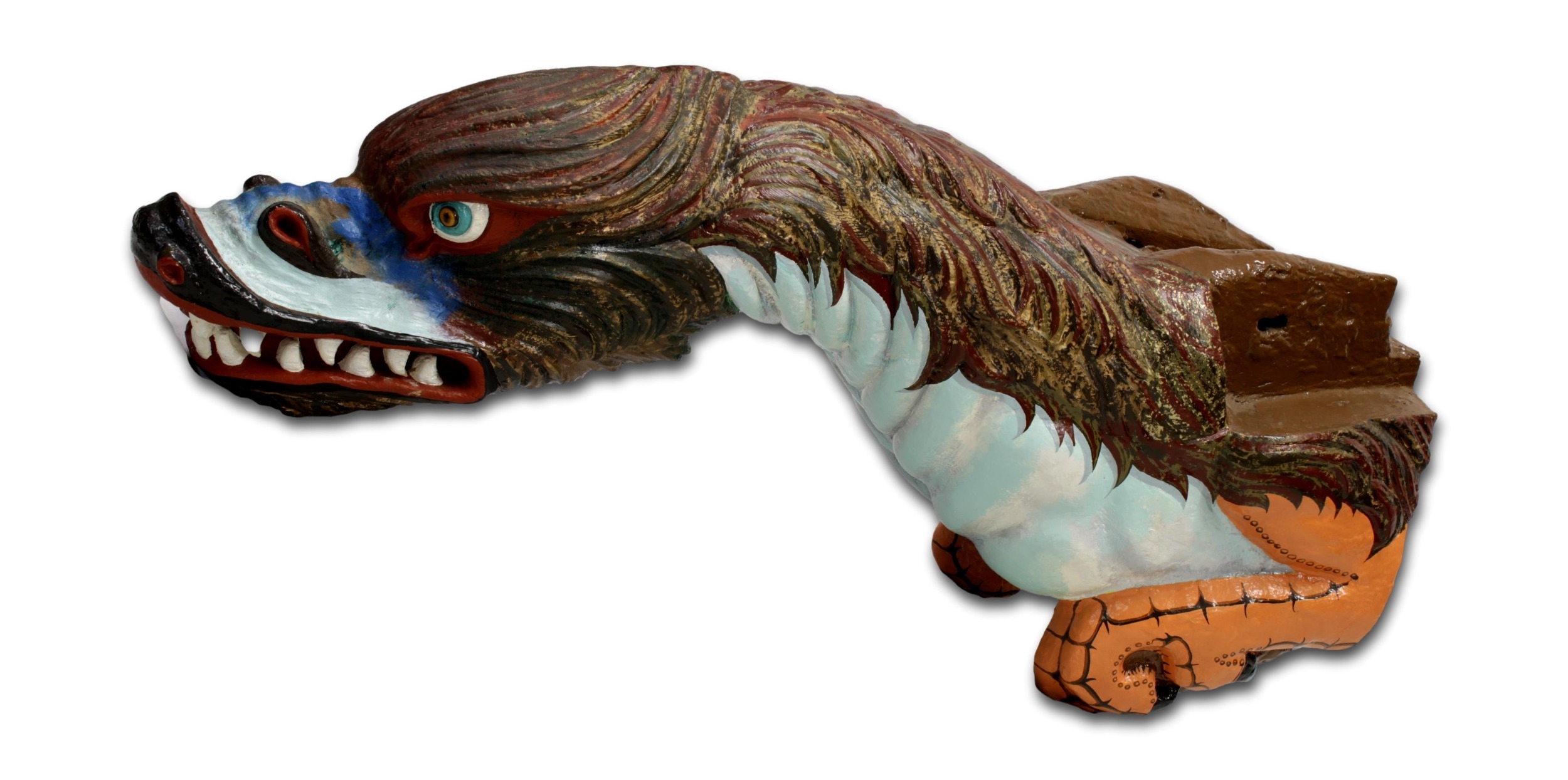 A carved and polychrome painted ship's figurehead, A suggestion has been made that this may be a figurehead from a Chinese Dragon boat