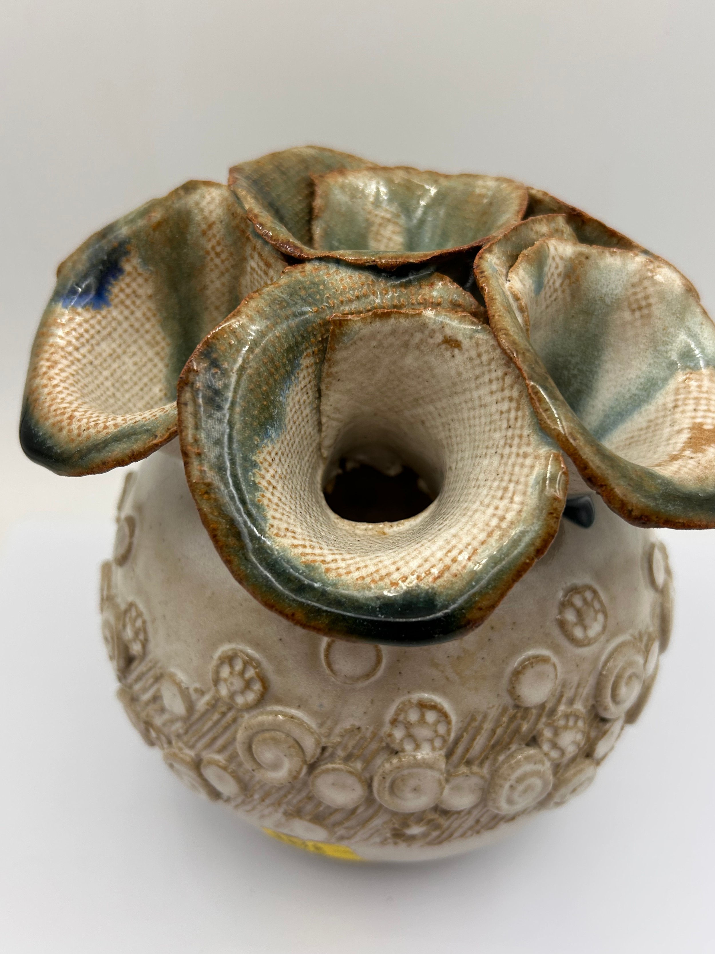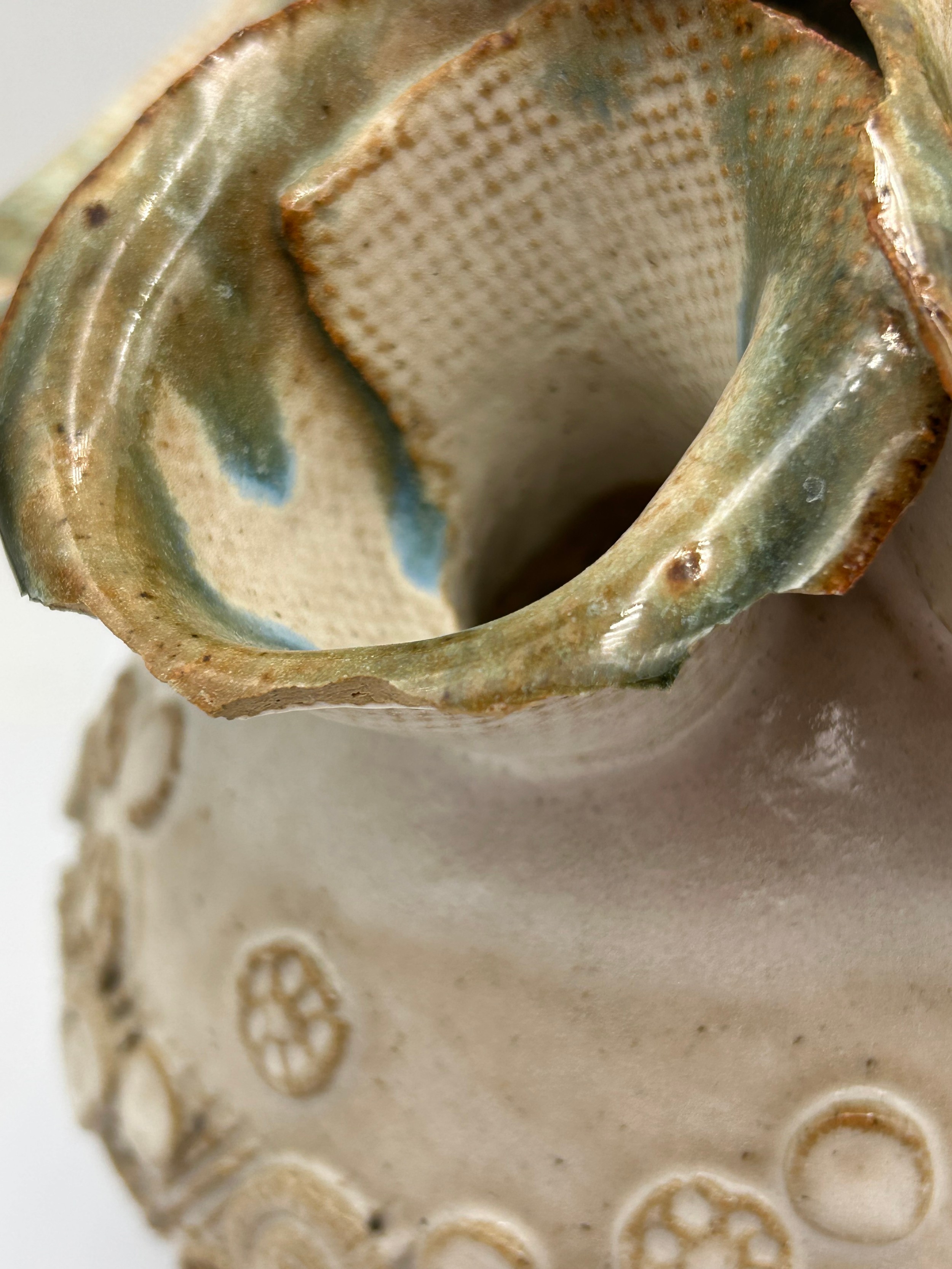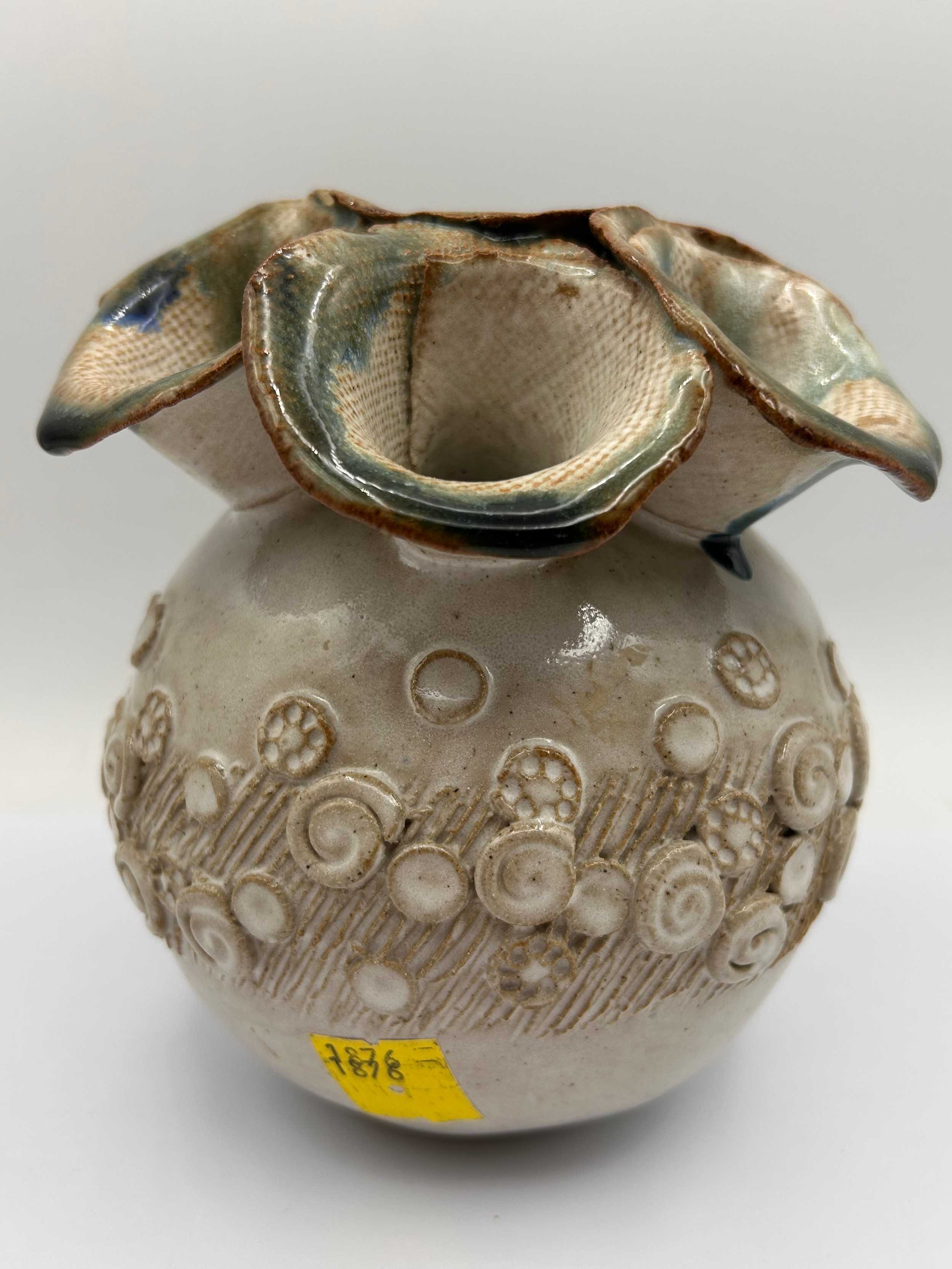 Interesting Studio Pottery Vase , Signed K To Base , Chips To One Opening. 6.5" High